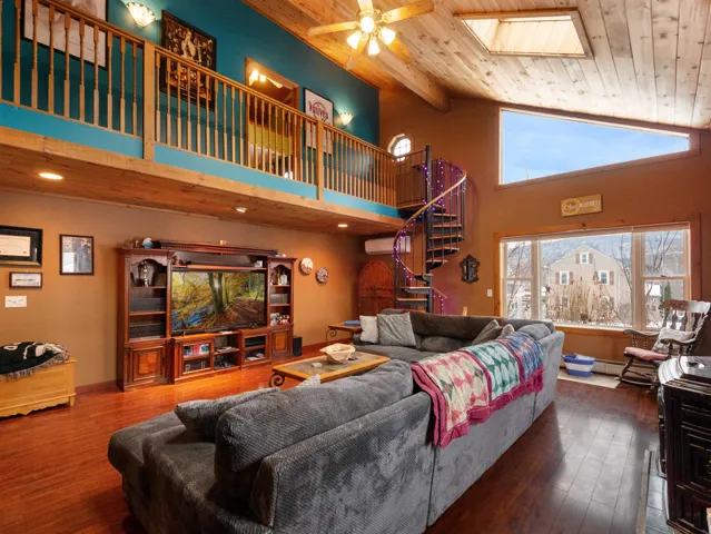 +"PublicRemarks": "This charming Gambrel style home has bright open living spaces, high ceilings, detailed woodwork, pretty open staircase, stain glass window and wood floors. The kitchen features painted shaker style cabinetry, new stainless steel appliances, and new flooring. Off the kitchen is the laundry, additional built-ins cabinets and half bath. The adjacent dining room flows seamlessly into comfortable living room with wood floors throughout. A flexible bonus room that can serve as a playroom, home office or mudroom rounds out the first floor. Upstairs includes three generously sized bedrooms, two bedrooms have double closets, and a full bath. Home improvements include: electrical and plumbing updates, new light fixtures, new ceiling fans, new vanity, interior paint, and refinished wood floors. The low maintenance exterior is vinyl sided and has vinyl windows. On the exterior you have the welcoming front porch, covered side porch and sunny south facing deck excellent for grilling and entertaining. Paved parking to the right and a second curb cut to the left of the house would accommodate additional parking. Small and easy to maintain, partially fenced, yard and shed like storage space under the house. Convenient location on quiet one-way street near city parks/playgrounds and downtown."