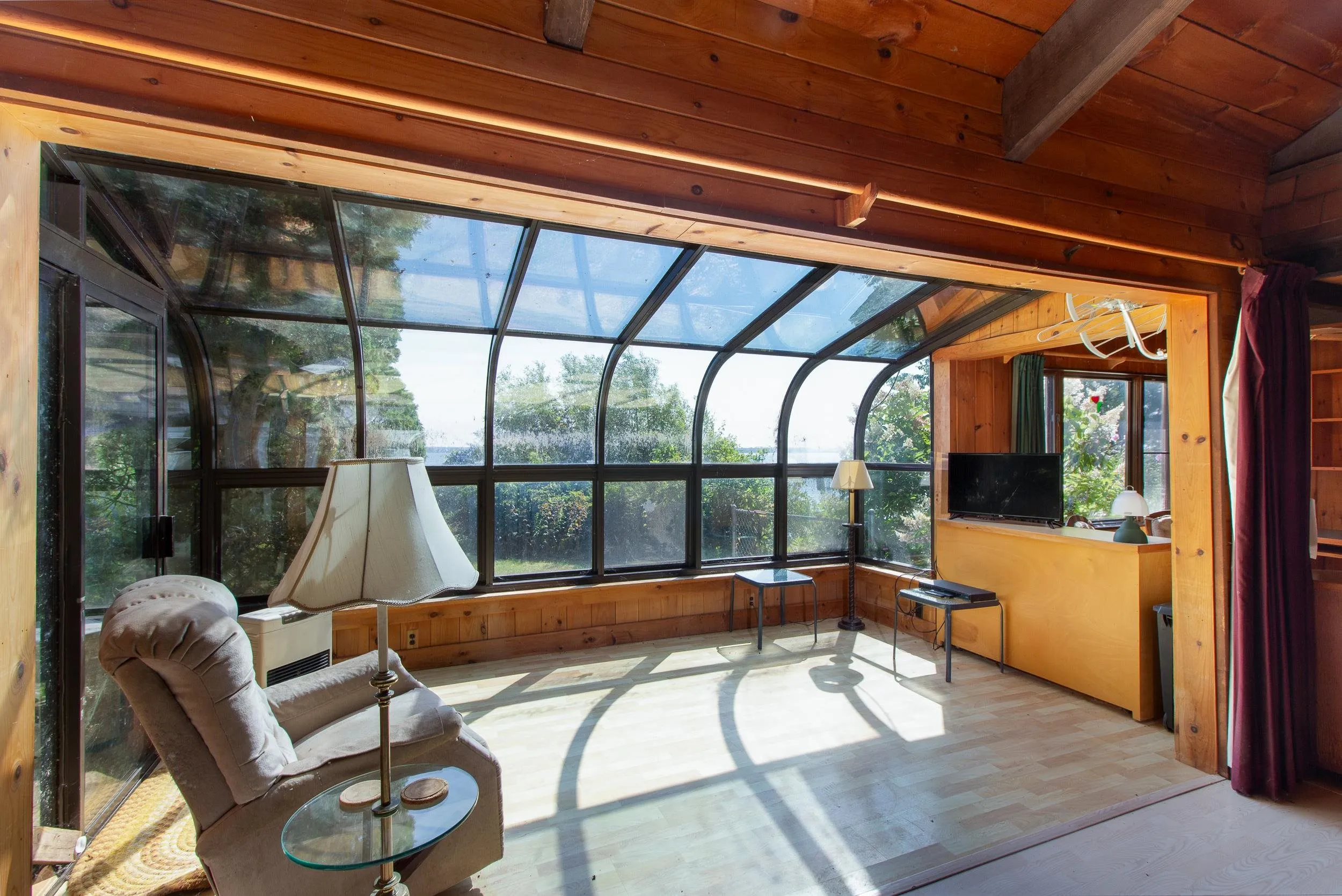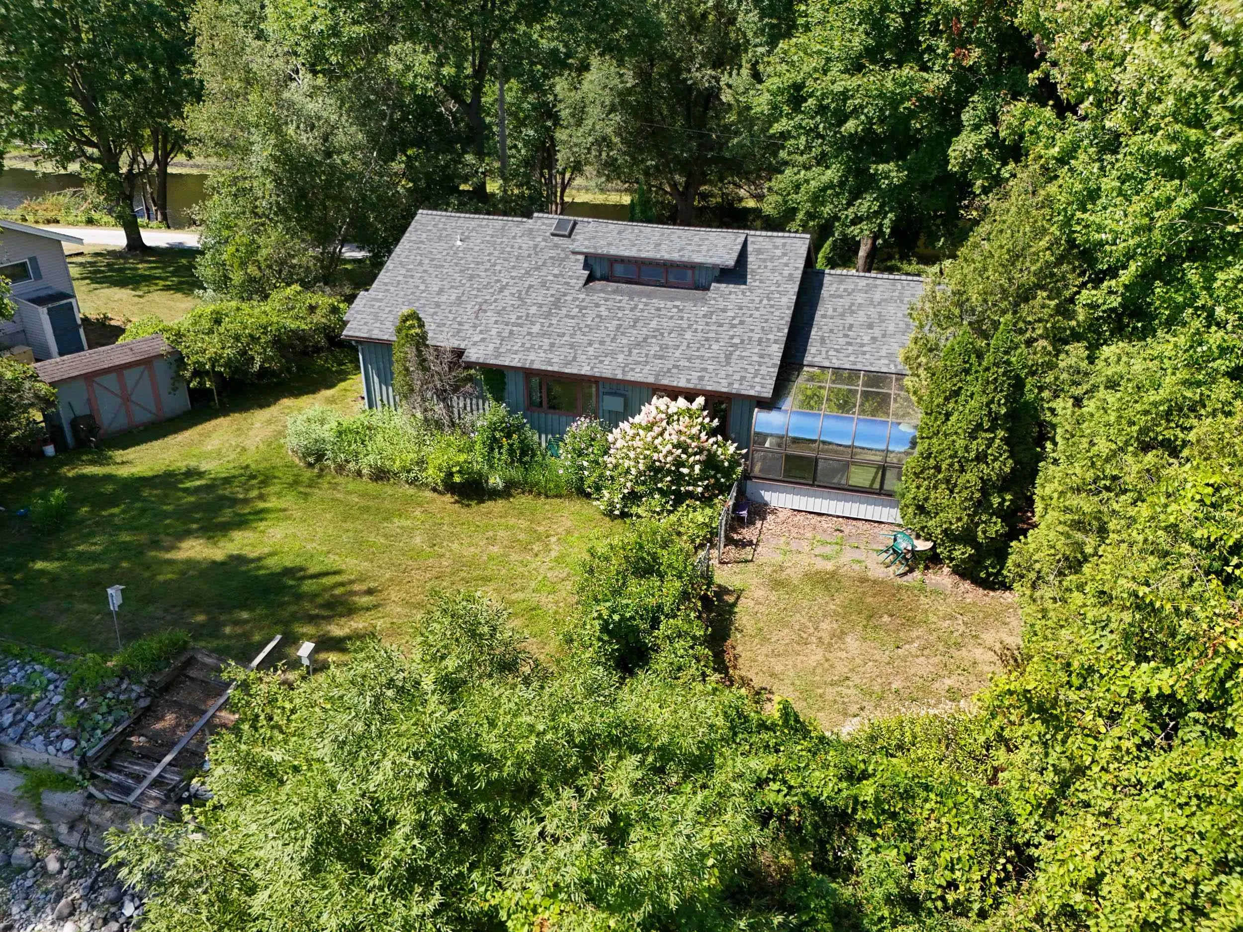 +"PublicRemarks": "Discover a rare waterfront opportunity on a peaceful peninsula in Alburgh, Vermont. This 0.28-acre property offers 200 feet of total water frontage with 100 feet directly on Lake Champlain to the east and 100 feet on a scenic canal, providing beautiful views of the water on two sides. Located on a quiet, dead-end private road, the setting feels secluded yet is only minutes from local amenities. The 1,738 square foot year-round home features 2 bedrooms, 2.5 bathrooms, a spacious living room with vaulted ceilings, a fireplace, and a sun-filled solarium with views of the lake. The interior features a rustic style with natural wood paneling, exposed beams, and woodwork throughout. Up the spiral staircase is a loft with a half bath that offers additional space. The attached one-car garage and shed provide convenient storage. This lakefront home offers the chance to create your dream lake retreat. Properties with this unique dual waterfront layout are rarely available, so bring your vision and make the most of this special location in the Lake Champlain Islands."