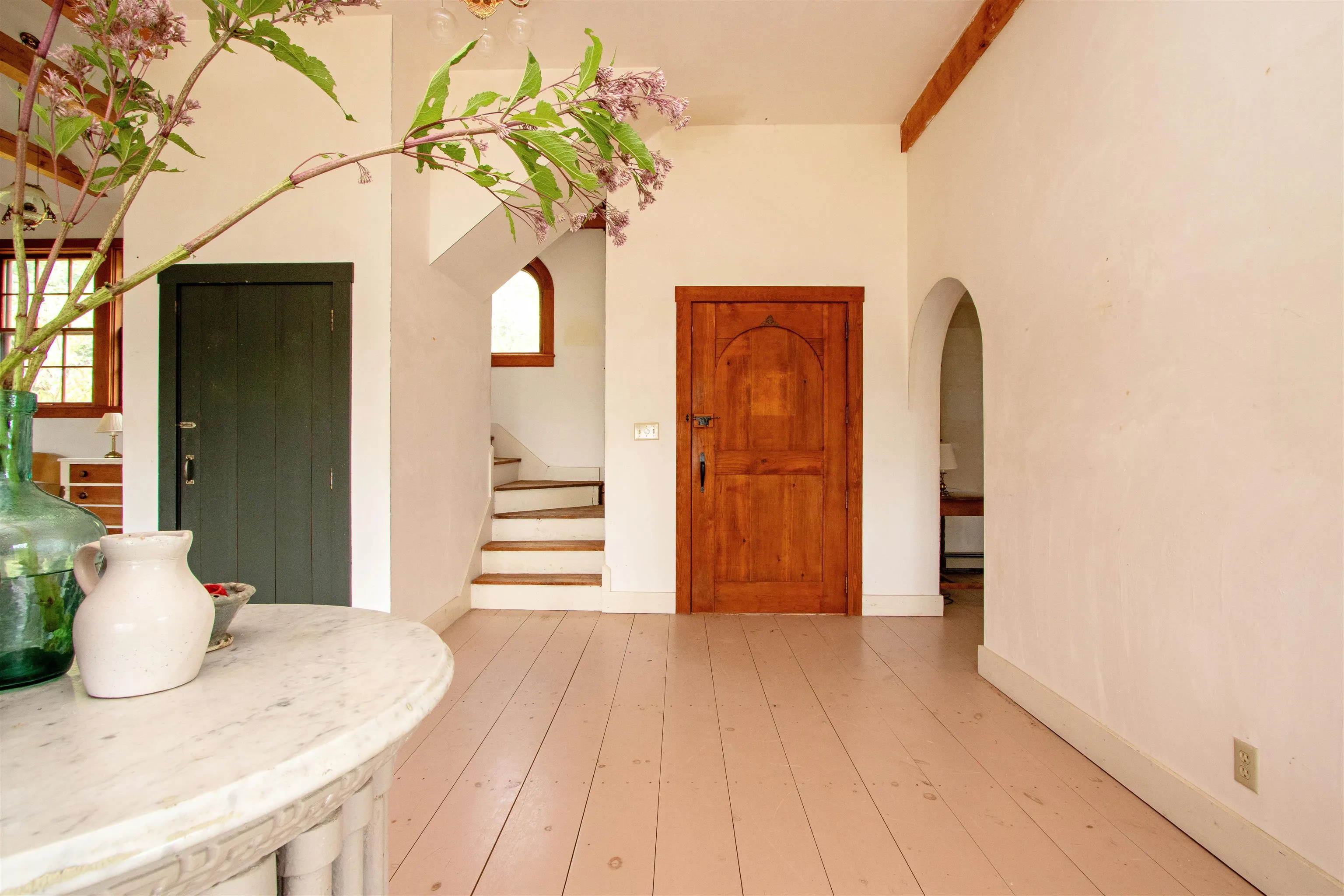 +"PublicRemarks": "Set on a hill with lovely views, this 58.35+/- acre Barnet property is equal parts private retreat and creative sanctuary. With a mix of open land and sprawling woods to roam, and a spring fed pond, it’s a place made for long walks, fresh air, and views that change with every season. Inside, the home’s open main living area is filled with natural light and artistic touches, vaulted ceilings, exposed beams, arched doorways, and doors that feel like they were chosen as much for beauty as for function. The kitchen’s long counter with double sinks faces the view, while a generous walk-in pantry keeps life tidy and organized. A window-lined dining nook makes every meal a moment to linger. Two main-level bedrooms and a full bath with clawfoot tub offer comfort and character, while upstairs you’ll find a third bedroom with a tall ceiling, views that invite daydreams, and a half bath. The attached garage works well for storage or as a workshop. All of this is just minutes from Harvey’s Lake, so you can spend summer days on the water and come home to your own private hilltop haven. The property is currently enrolled in Vermont’s Current Use Program, providing tax savings and supporting sustainable land management."