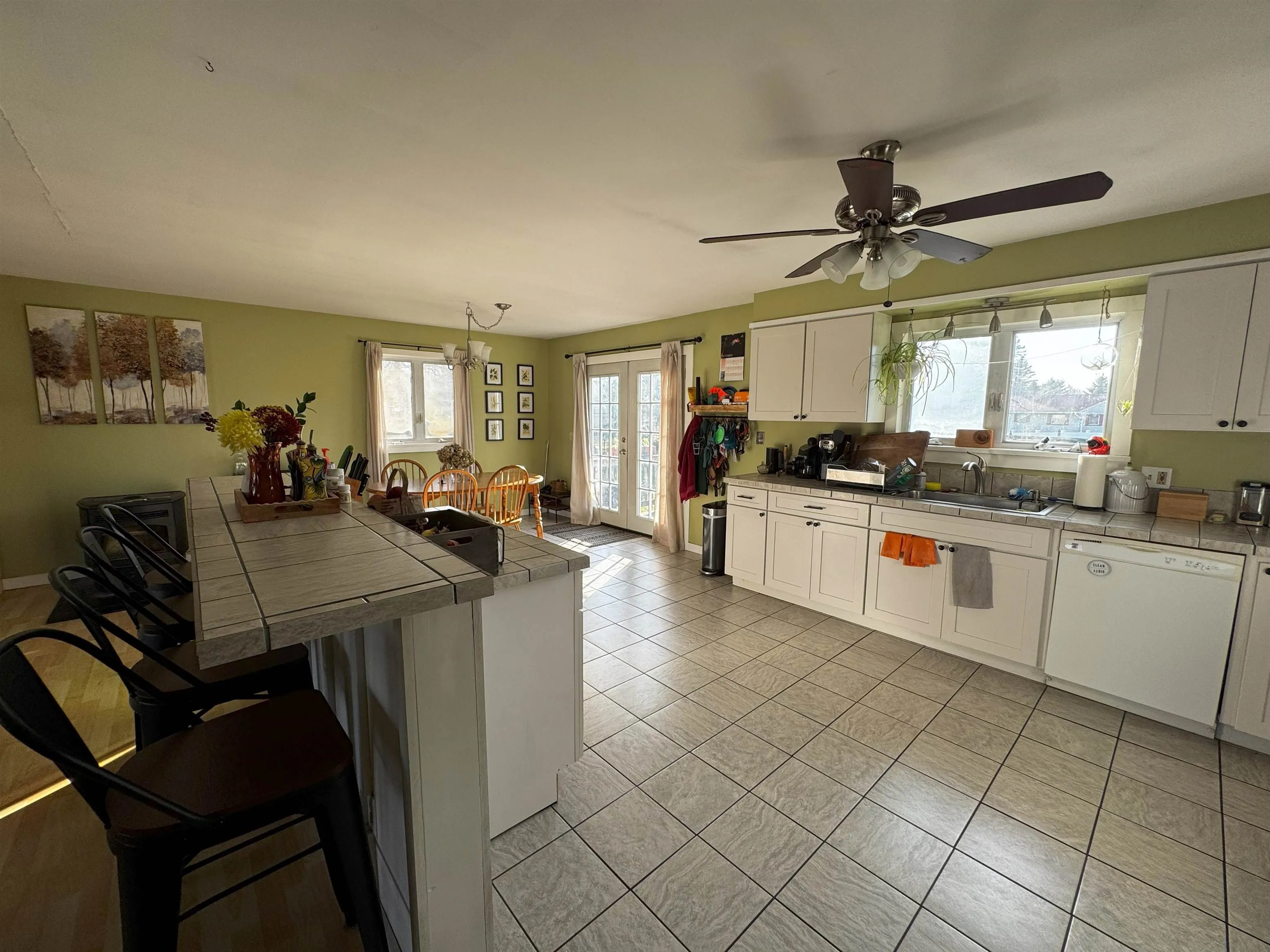 +"PublicRemarks": "This light, bright, beautiful house is ready for you to move right in and has so much going for it! Open living/dining/kitchen with an island, ample cabinets, a cozy pellet stove, and french doors leading to a good sized deck - perfect for sipping morning coffee, grilling, or enjoying a glass of wine at the end of the day. There are also 3 bedrooms upstairs, a full, recently remodeled bathroom, and plenty of closet space. Downstairs you'll find a wood stove, 1/2 bath, laundry, a "bonus" room that could be used as anything from extra storage to an office to a guest space (it's currently a home gym!), and direct access to your 2-car garage. The yard gets good sun, and there's lots of room to garden and play. The owners have taken great care of this home and have made important improvements such as a brand new roof in 2024. Come see this beauty for yourself."