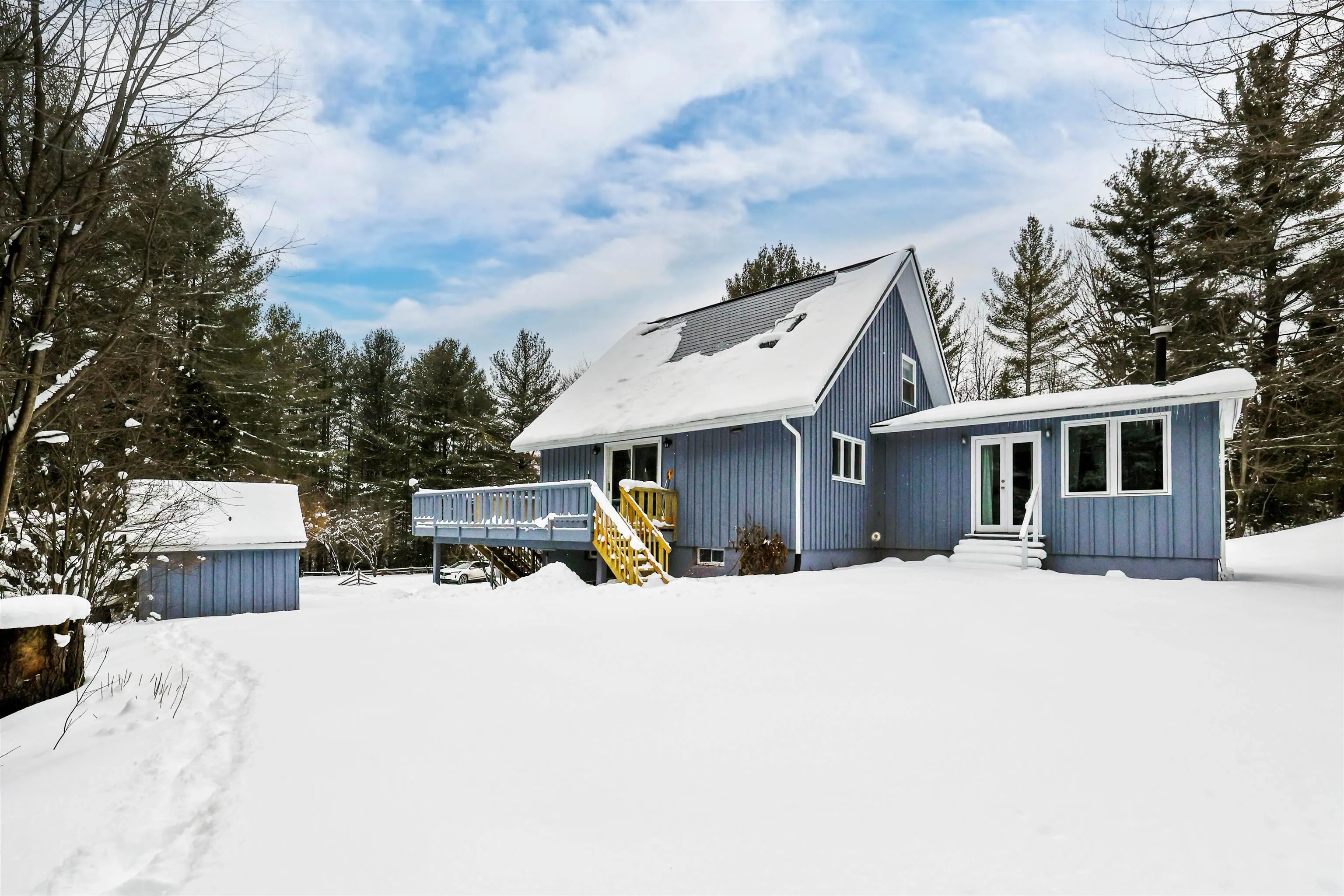 +"PublicRemarks": "The gorgeous Grey Chalet awaits you! This 3-level chalet style home is nestled in over 36 acres of pines with 2300 feet of Willoughby River frontage. Built in 1980 by Gordon Benoit, the house has had numerous updates, including metal shingle roofing with a lifetime guarantee and new rain gutters. The 1st story was converted into a charming Airbnb guest space, complete with a kitchenette, full bath, laundry, living space, cozy bedroom, and a private entrance. There's both electric and propane heating, as well as a pellet stove for the guest area. On the 2nd level of the house, you'll find an open-concept space with room for entertaining and dining--even a home office! The kitchen boasts a brand-new Samsung fridge, and a Kenmore glass cook top--not to mention the massive walk-in pantry! There's also a recently added primary suite on this level, luxurious with its cathedral ceilings and ensuite space with a 10x10 walk in closet with its own corner vanity. The 3rd level has 2 bedrooms, a full bath featuring a vintage claw foot tub, and a loft space, which could easily become an art/craft studio or a playroom. Outside, there's an orchard and groomed walking trails. The 23'x27' 2-car saltbox detached garage has extra storage space above. This property is conveniently located near I-91, Willoughby Lake, and Burke Ski Area. It has beautiful hardwood floors, natural lighting, even high-speed internet through Xfinity. What more could you ask for? Showings for Gray Chalet start 1/23/25"