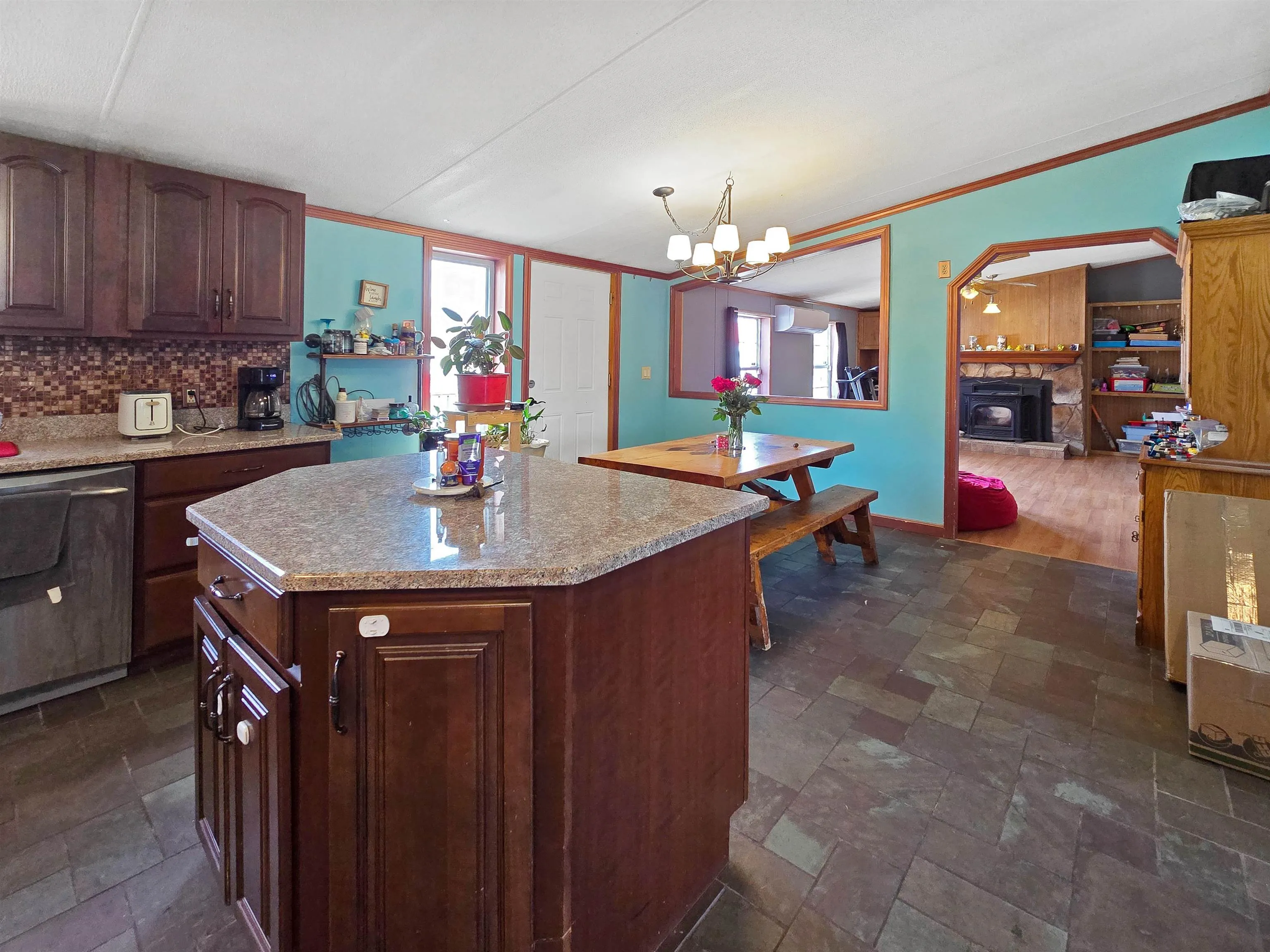 +"PublicRemarks": "Affordable, low-maintenance living in a great Benson location. This 3-bedroom, 2-bath 1999 mobile home sits on a concrete slab with tie-downs and offers a spacious, single-level layout that’s easy to live in and easy to maintain. The kitchen is a standout with stone countertops, stainless steel appliances, and durable slate flooring that continues into the laundry area. The open flow into the main living space makes it feel bright and functional, whether you’re home solo or hosting. The primary bedroom includes its own en suite bath, while two additional bedrooms (and another full bathroom) offer flexibility for guests, office space, or whatever you need. Heating is covered with propane heat along with mini splits for added efficiency and year-round comfort. Outside, the .31-acre lot is manageable but still gives you room to enjoy the setting, including a large back deck that’s perfect for relaxing or entertaining. A standing seam metal roof and vinyl siding keep maintenance simple, and the detached one-bay garage adds extra storage or workspace. Location is hard to beat. Set right next to Benson Village School, getting the kids to school is about as easy as it gets! You’re also just minutes from the Wheel Inn and Benson Village Store, all while taking in beautiful country views. Simple, practical, and move-in ready!"