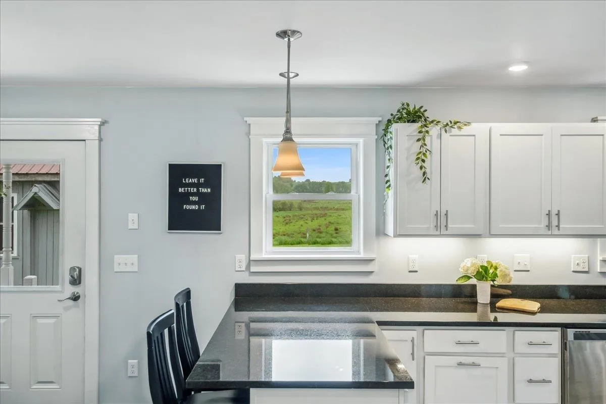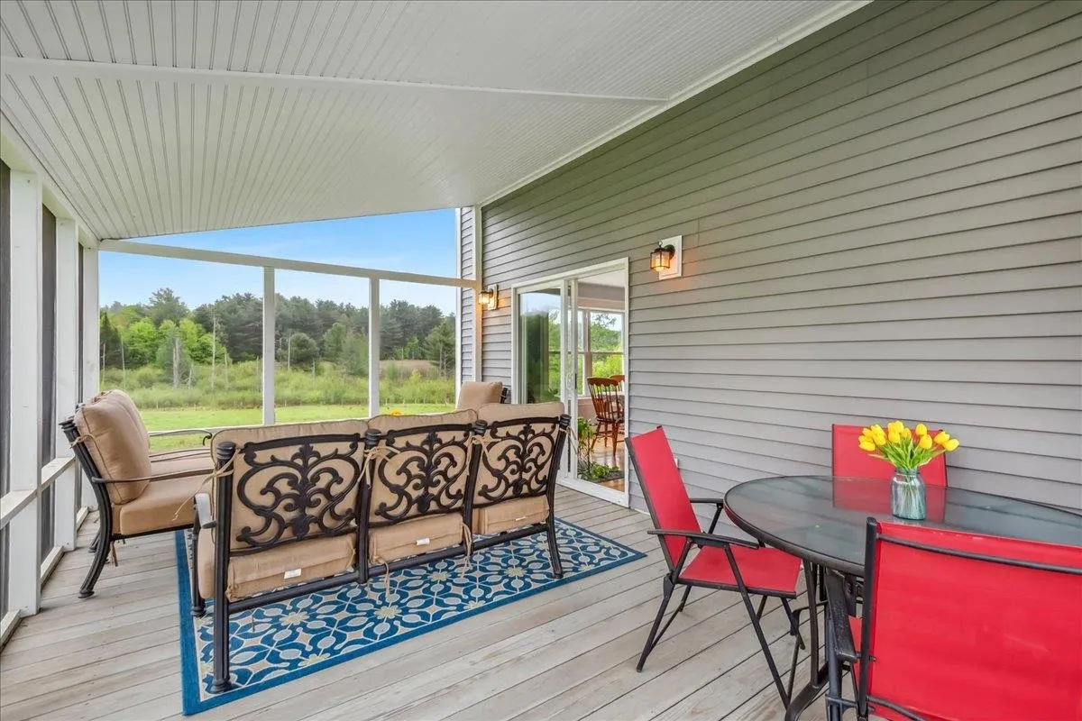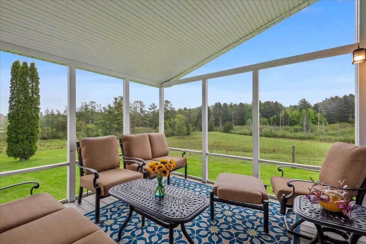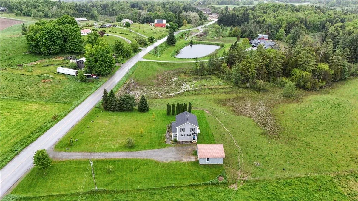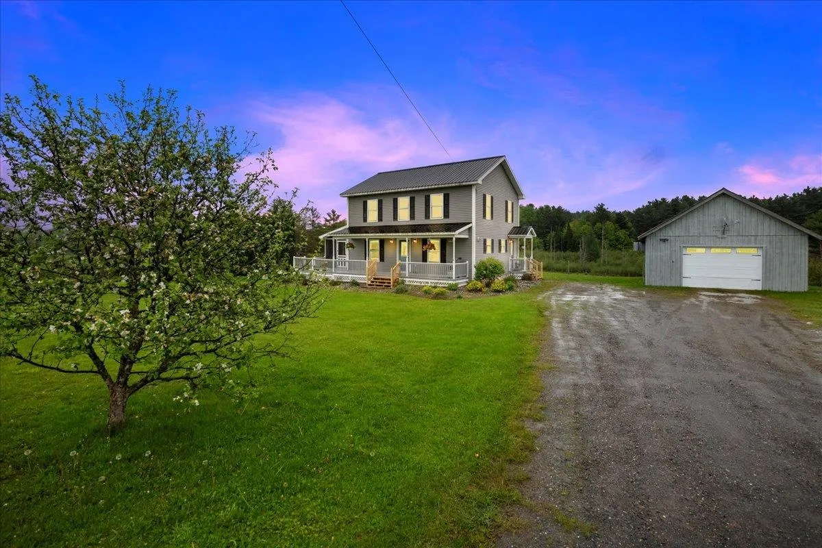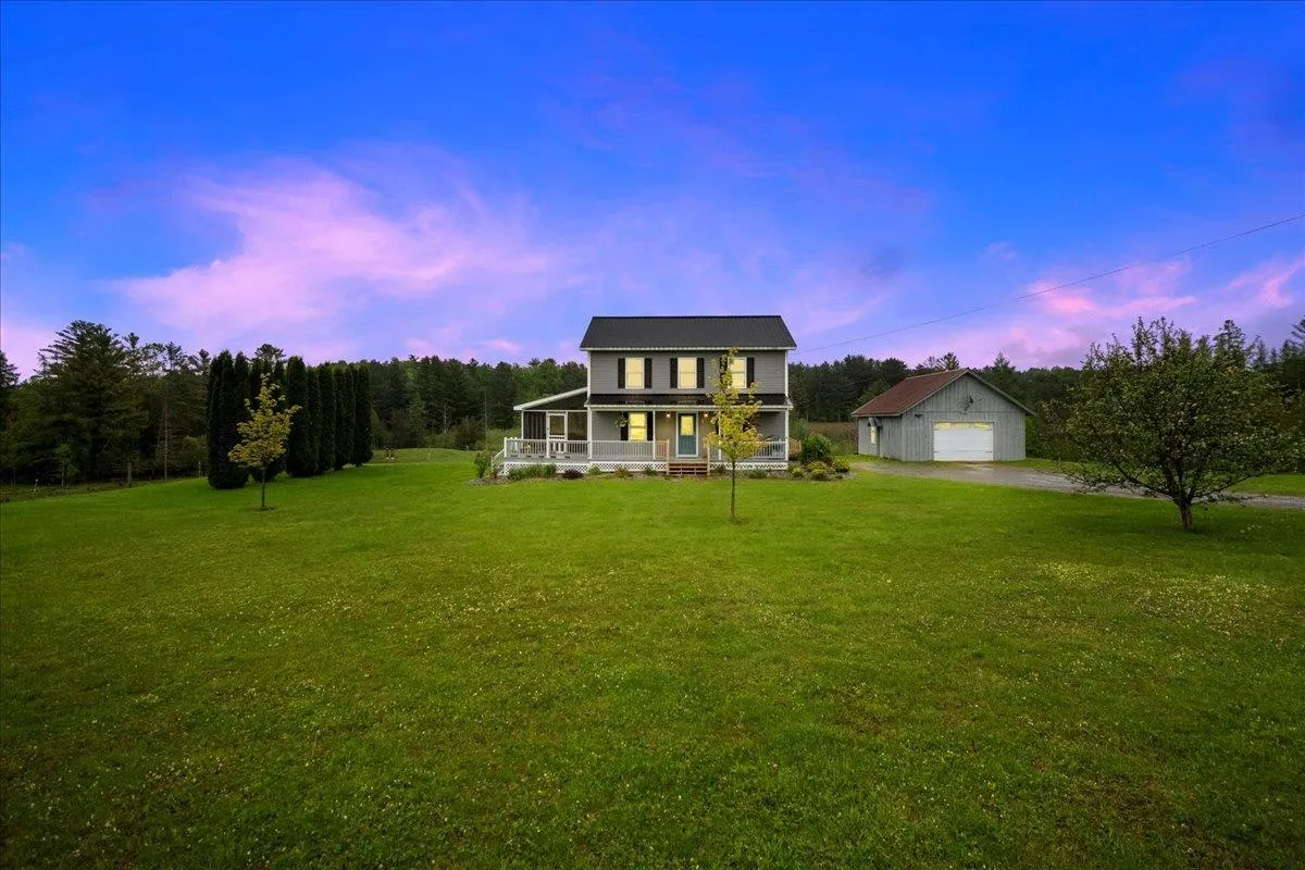 +"PublicRemarks": "Set on over 5 peaceful acres and surrounded by open farmland, this modern farmhouse offers the best of Vermont living—quiet, private, and just minutes from town. Located on a paved country road, the home features Natural Birch hardwood floors, abundant natural light, and sweeping views from nearly every window. Enter through the side door into a spacious mudroom with built-in cabinetry—ideal for everyday storage. The kitchen is finished with long granite countertops and overlooks the fields beyond. Just off the kitchen you have a 1/2 bath and an open living and dining area filled with light to offer a welcoming space to gather or unwind. Upstairs, you’ll find all three bedrooms and 2 full baths. The primary bedroom includes a generous ensuite bath and ample closet space. Thoughtful storage throughout makes everyday living easy. Outside, relax on the half-wraparound porch with a screened section perfect for warm summer evenings. A detached 2-car garage adds convenience and functionality. Located in a high school choice town, just minutes to Enosburg for daily essentials, close to Jay Peak for year-round recreation, and about an hour to Burlington—this home is a perfect mix of space, privacy, and accessibility."