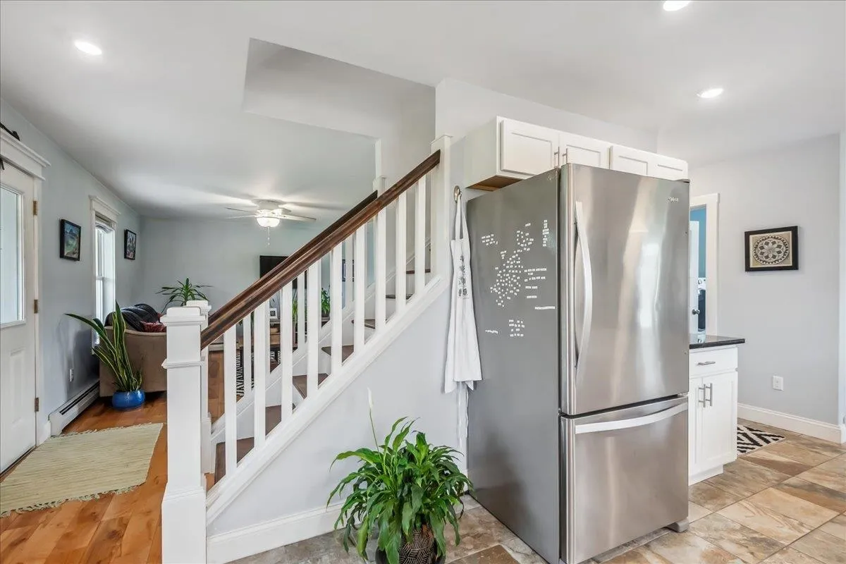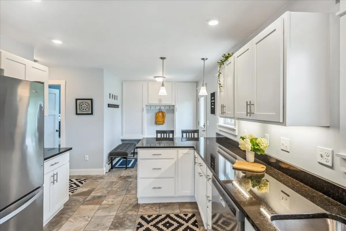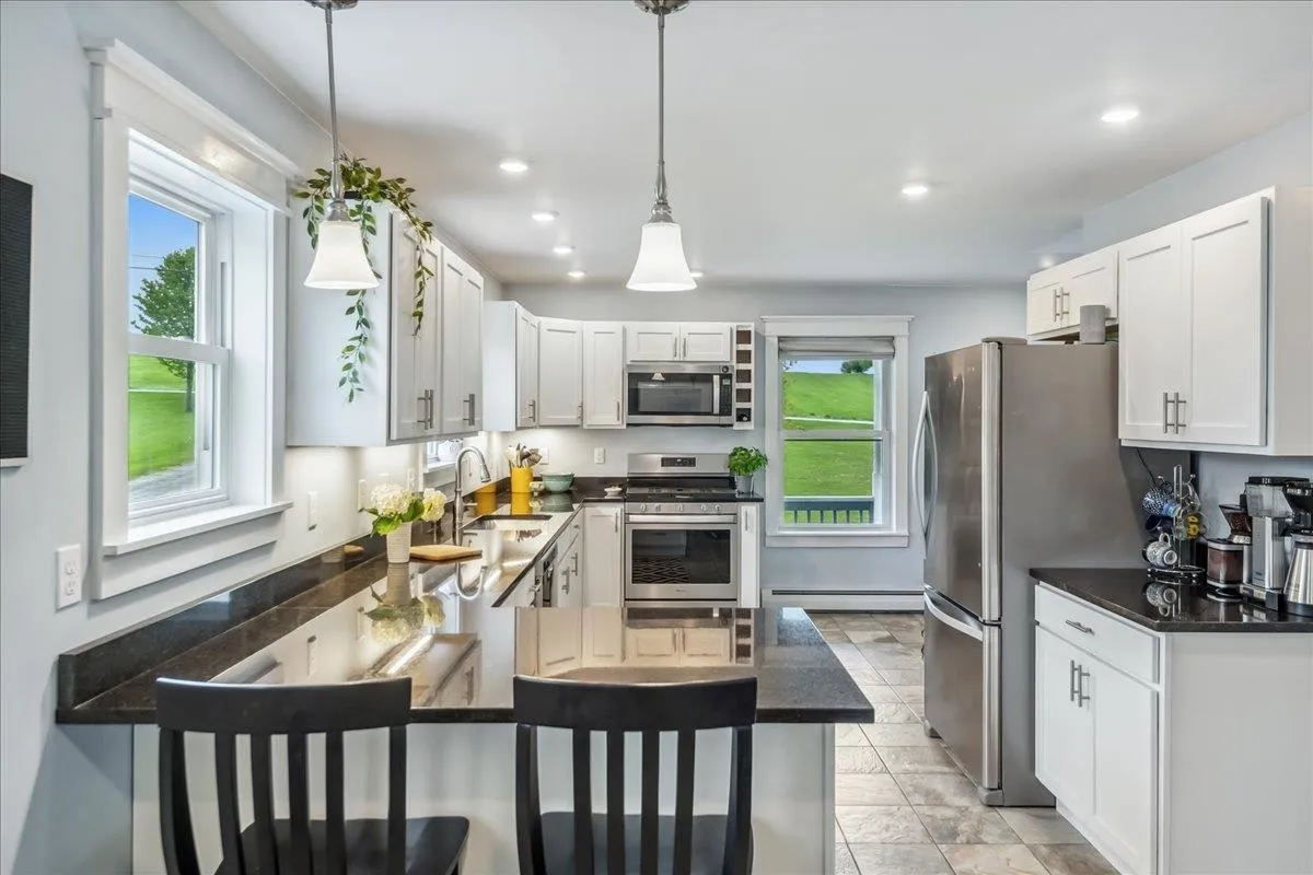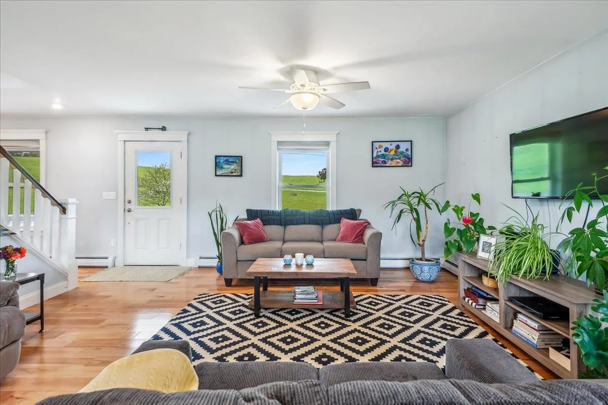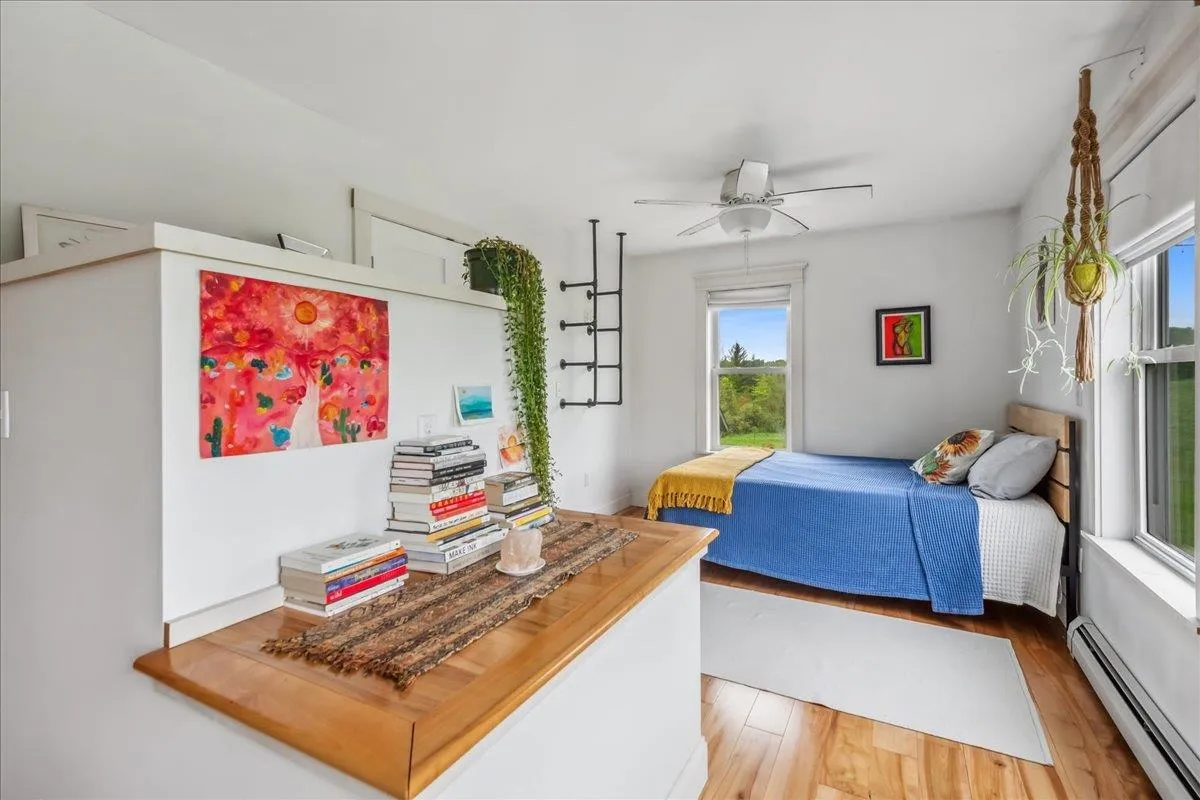 +"PublicRemarks": "Set on over 5 peaceful acres and surrounded by open farmland, this modern farmhouse offers the best of Vermont living—quiet, private, and just minutes from town. Located on a paved country road, the home features Natural Birch hardwood floors, abundant natural light, and sweeping views from nearly every window. Enter through the side door into a spacious mudroom with built-in cabinetry—ideal for everyday storage. The kitchen is finished with long granite countertops and overlooks the fields beyond. Just off the kitchen you have a 1/2 bath and an open living and dining area filled with light to offer a welcoming space to gather or unwind. Upstairs, you’ll find all three bedrooms and 2 full baths. The primary bedroom includes a generous ensuite bath and ample closet space. Thoughtful storage throughout makes everyday living easy. Outside, relax on the half-wraparound porch with a screened section perfect for warm summer evenings. A detached 2-car garage adds convenience and functionality. Located in a high school choice town, just minutes to Enosburg for daily essentials, close to Jay Peak for year-round recreation, and about an hour to Burlington—this home is a perfect mix of space, privacy, and accessibility."