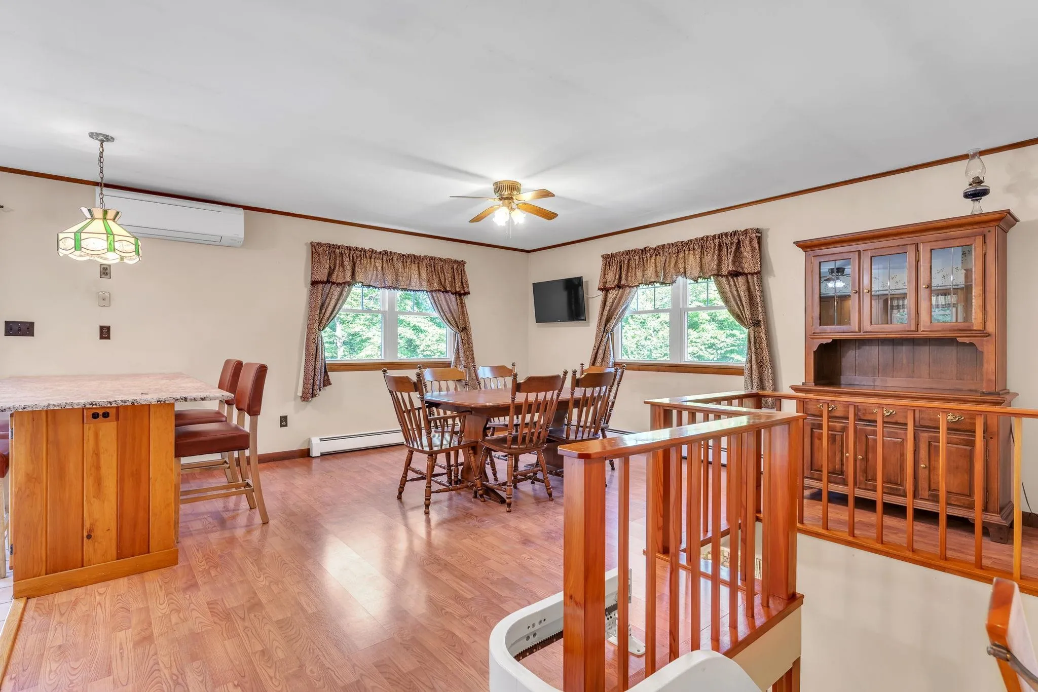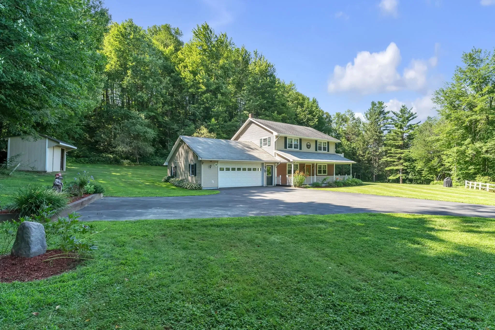 +"PublicRemarks": "Take a look at a very well-maintained, two-story home built in 1976 with almost 1,800 sq ft of living space and attached two car garage on 6.8 acres. Located at the end of a long driveway and set back from Route 12 traffic, you will adore the lovely covered front porch overlooking the surrounding lawn and landscaping. Fresh and clean with wood and tile flooring, newer windows, upgraded kitchen and dining area with private balcony. Get cozy in the living room with the pretty Harman pellet stove and stay cool in the summer with the two mini-split heat pumps. Easy-entry main level with bedroom, bathroom and laundry. Upstairs you find two more bedrooms and a full bathroom. This attractive property also includes a separate income-generating mobile home site with independent well and wastewater. One mile from Falls General Store, 3 miles to the heart of Northfield, 7 miles to Downtown Montpelier, 15 minutes to the nearby hospital in Berlin, 6 miles to Berlin Elementary, and 10 miles to U-32 Middle & High School. Don’t delay, there’s nothing like this on the market in Berlin or Northfield right now! Easy to show - schedule a tour today."