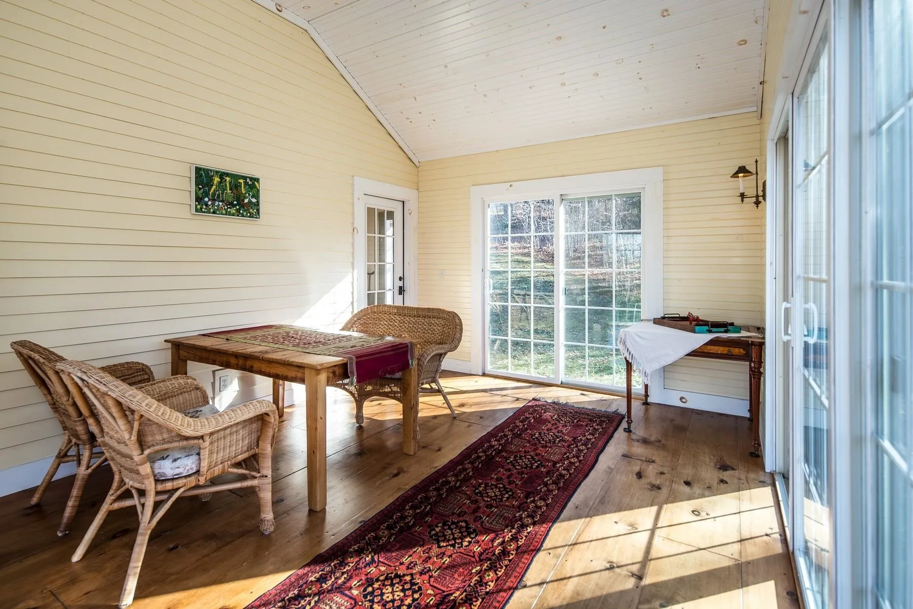 +"PublicRemarks": "This custom-built home, created by a renowned local firm, effortlessly blends timeless charm with modern functionality. Reclaimed beams from an antique barn infuse warmth and character, enhancing the home’s thoughtful design, which captures abundant natural light and frames the surrounding landscape beautifully. A breezeway connects the garage to the home, leading into a spacious mudroom and a convenient half bath. The farmhouse-style kitchen features a classic Aga stove and a sunny window with a view, perfect for casual meals. At the heart of the home is a striking fireplace, anchoring the open dining and living areas. French doors on either side open to a delightful three-season sunporch, an ideal spot for relaxing or entertaining. Upstairs, the home offers two comfortable bedrooms, including a primary suite with an office nook, and two spacious bathrooms. An unfinished attic provides additional storage potential. Wide pine floors throughout the living areas add to the home’s rustic charm. The partially finished lower level includes a versatile carpeted room, well-suited for a home gym, recreation space, or hobby room, making this home as practical as it is picturesque. Can be sold in conjunction with mls# 5024053"