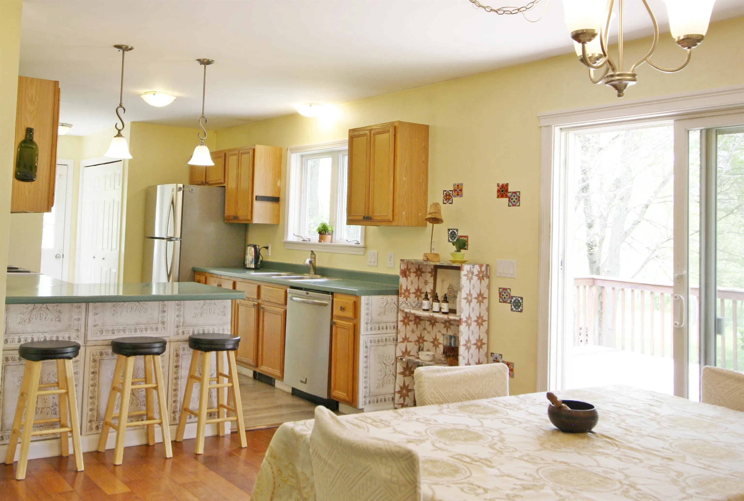 +"Remarks-Public": "Exquisite turn-of-the-century residence in coveted Montpelier location, tucked away at the edge of downtown with simply remarkable views of the State House Dome. Impeccably restored with utmost attention to detail. Enter through the stylish mudroom with slate flooring into the renovated kitchen, highlighted by Vermont marble counters, custom cabinets, Capital propane range, and a wood stove to gather round. Elegant dining and living rooms, showcasing original wood built-ins, pocket doors, window seating, and fireplace. Handsome front foyer. Convenient half bath and den with a second fireplace complete the first floor. The second floor boasts an en suite bedroom with a tiled shower and walk-in closet, a full bath with laundry, and two more bedrooms, one of which is grandly spacious, along with a small study/home office. Both levels feature gleaming hardwood & softwood floors. Walk-up attic provides excellent storage and solid potential for future expansion. Extensive upgrades include but not limited to full house electrical rewire, updated plumbing, metal roof with hand-cut copper work, copper gutters, rebuilt chimneys with custom copper caps, new insulation, and rebuilt and repointed period stonework on the cellar walls. The thoughtful renovations preserve the integrity and charm of this historic home and even the functional upgrades are works of art! Gracious front porch. Architecturally designed landscape with custom, local granite work, terraced yard, pathways, and plantings. Granite cobblestone driveway. Just a stone's throw from Hubbard Park trails, the Farmers Market, and the State House Lawn. Come see it to believe it."