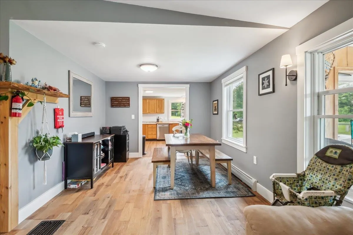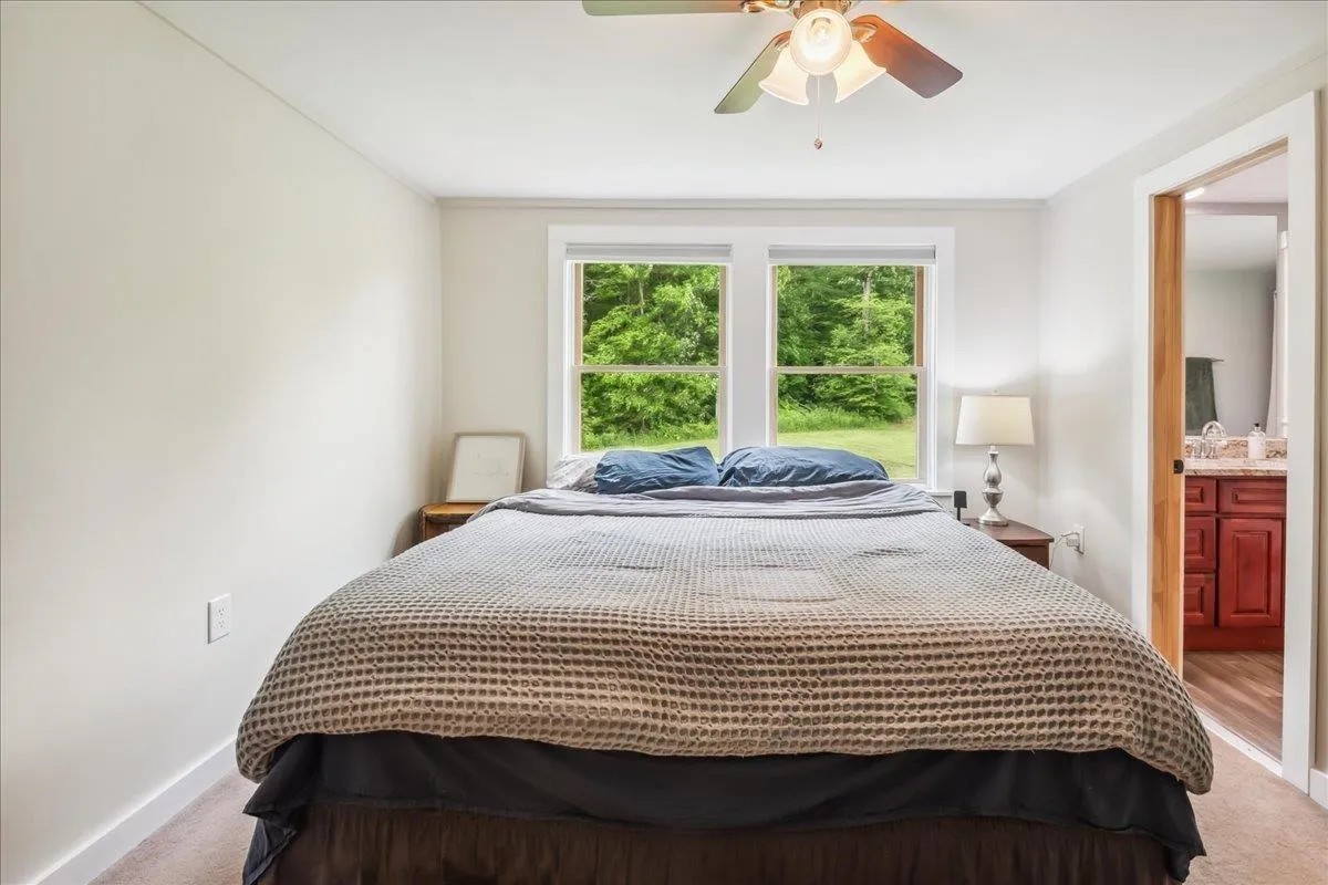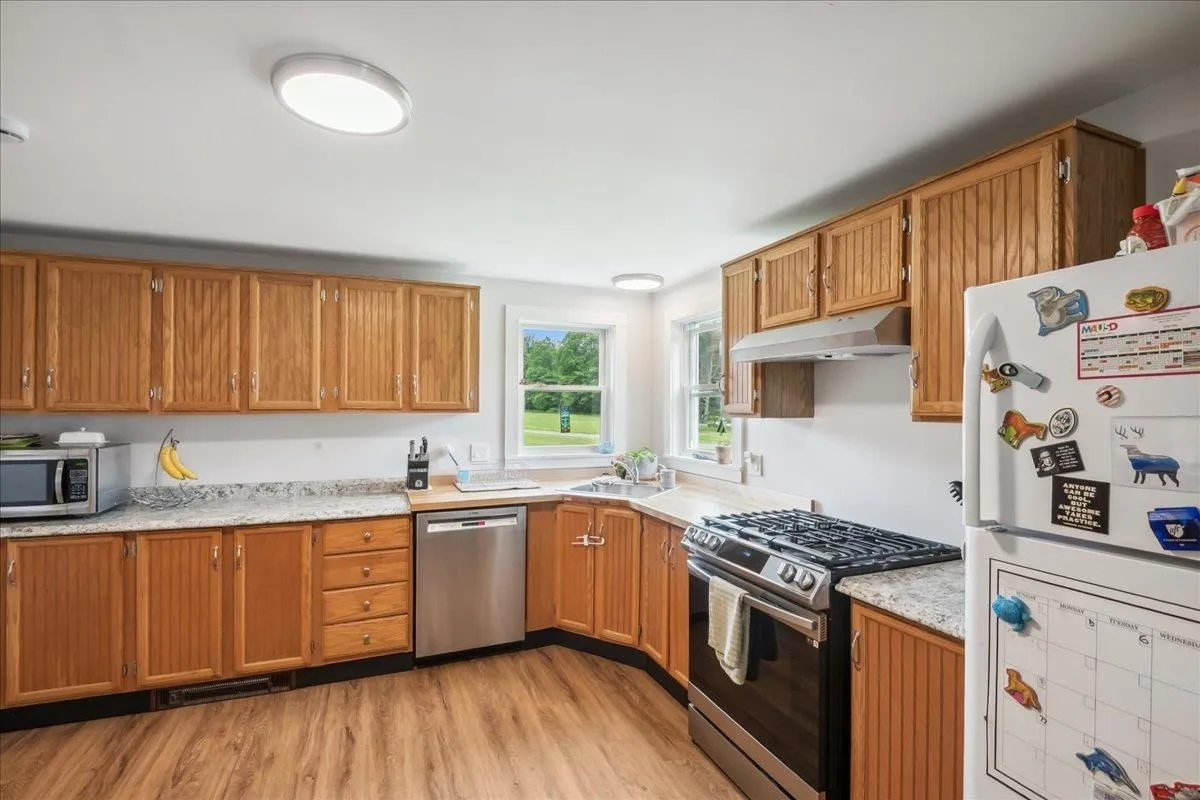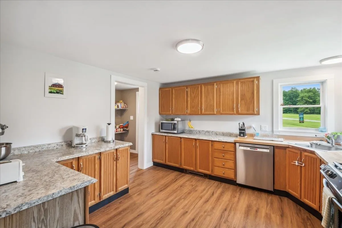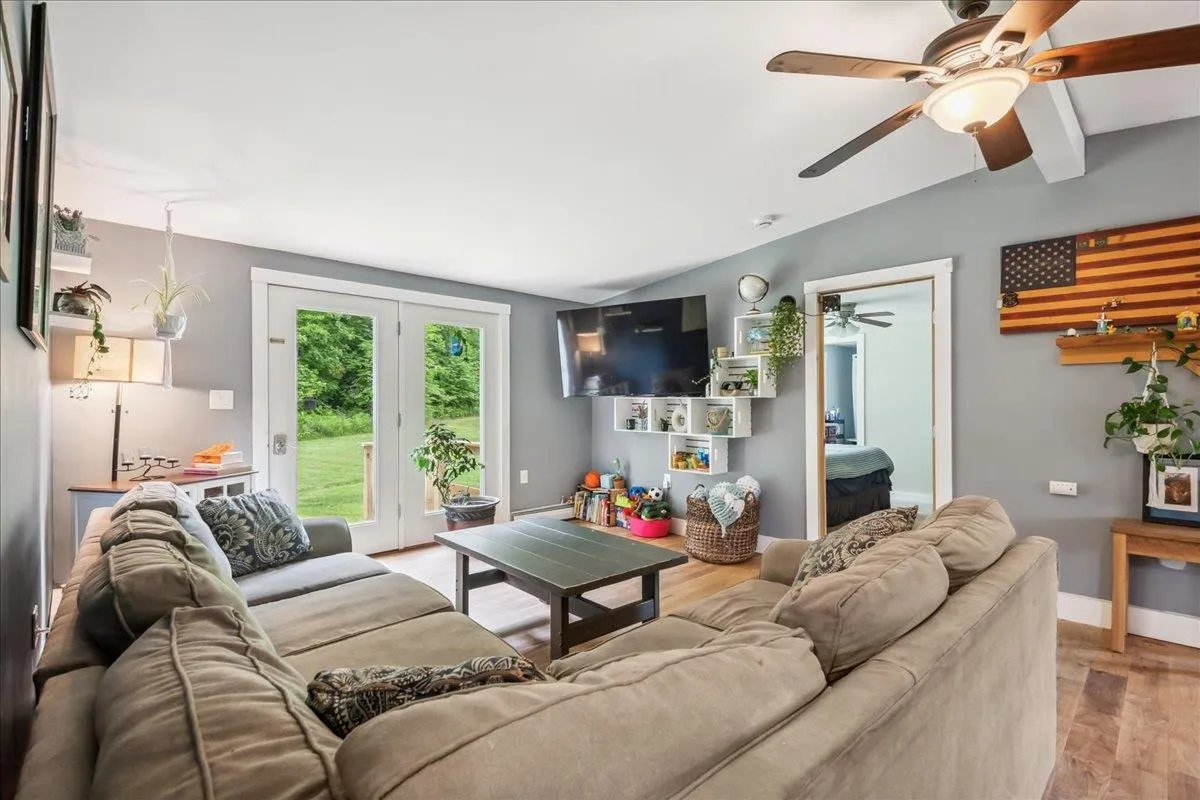 +"PublicRemarks": "Nestled at the foot of Hogsback Mountain, this charming 3-bedroom, 2-bath ranch sits on over 2 peaceful acres in the scenic town of Bristol. Located in a quiet, friendly neighborhood the home is just a 5-minute drive or a pleasant 30-minute walk into the village. Enjoy your mornings or evenings on the covered front porch, taking in the serene mountain views and surrounding greenery. The detached two-car garage offers plenty of space, while inside, hardwood hickory floors flow through the living and dining areas. The open-concept layout welcomes you into a bright living room with glass doors that lead to the backyard—ideal for gardening or relaxing outdoors. A cozy wood stove warms the space in cooler months. The kitchen is both functional and spacious, featuring ample counter and cabinet space along with a large walk-in pantry. All three bedrooms are generously sized, including a primary suite with two closets and a private bath. A second full bathroom completes the main level. The full walkout basement provides excellent storage space and includes a dedicated laundry area. With nearby hiking trails and a welcoming community, this home is a perfect blend of comfort and nature—schedule your showing today!"