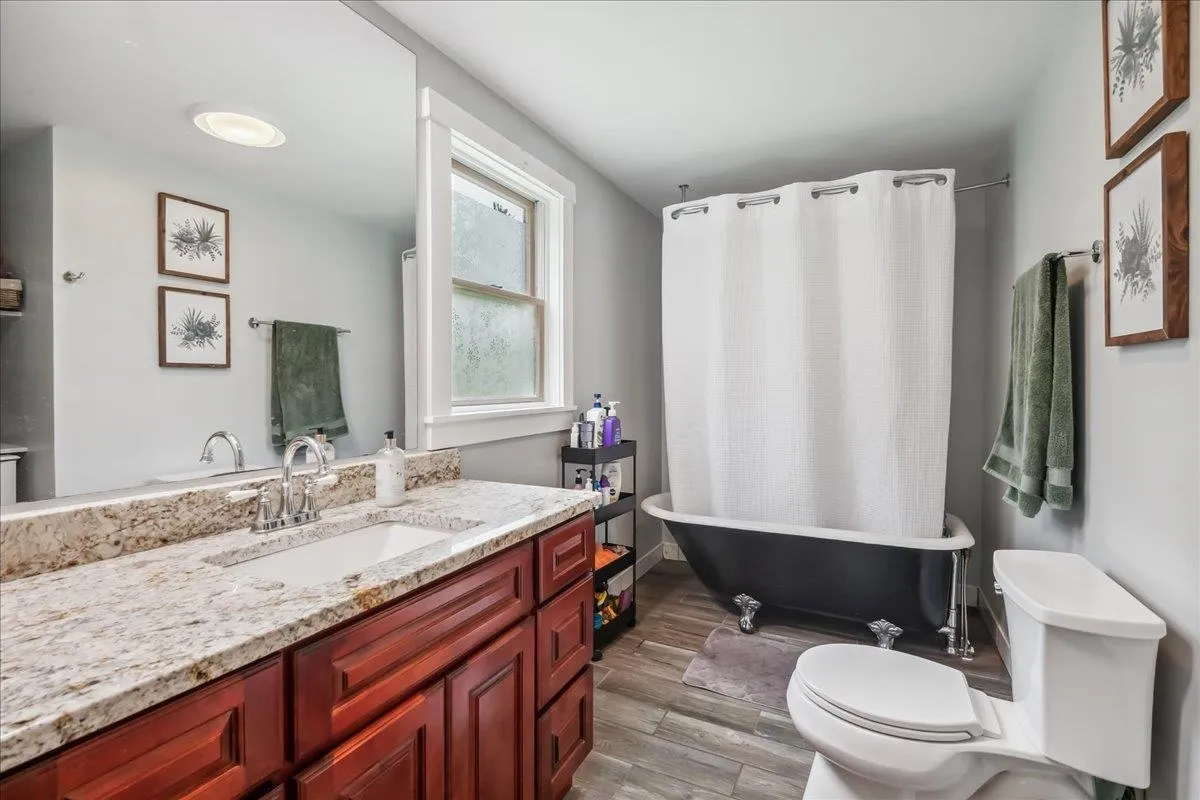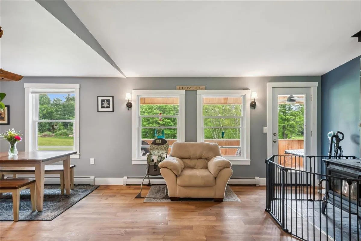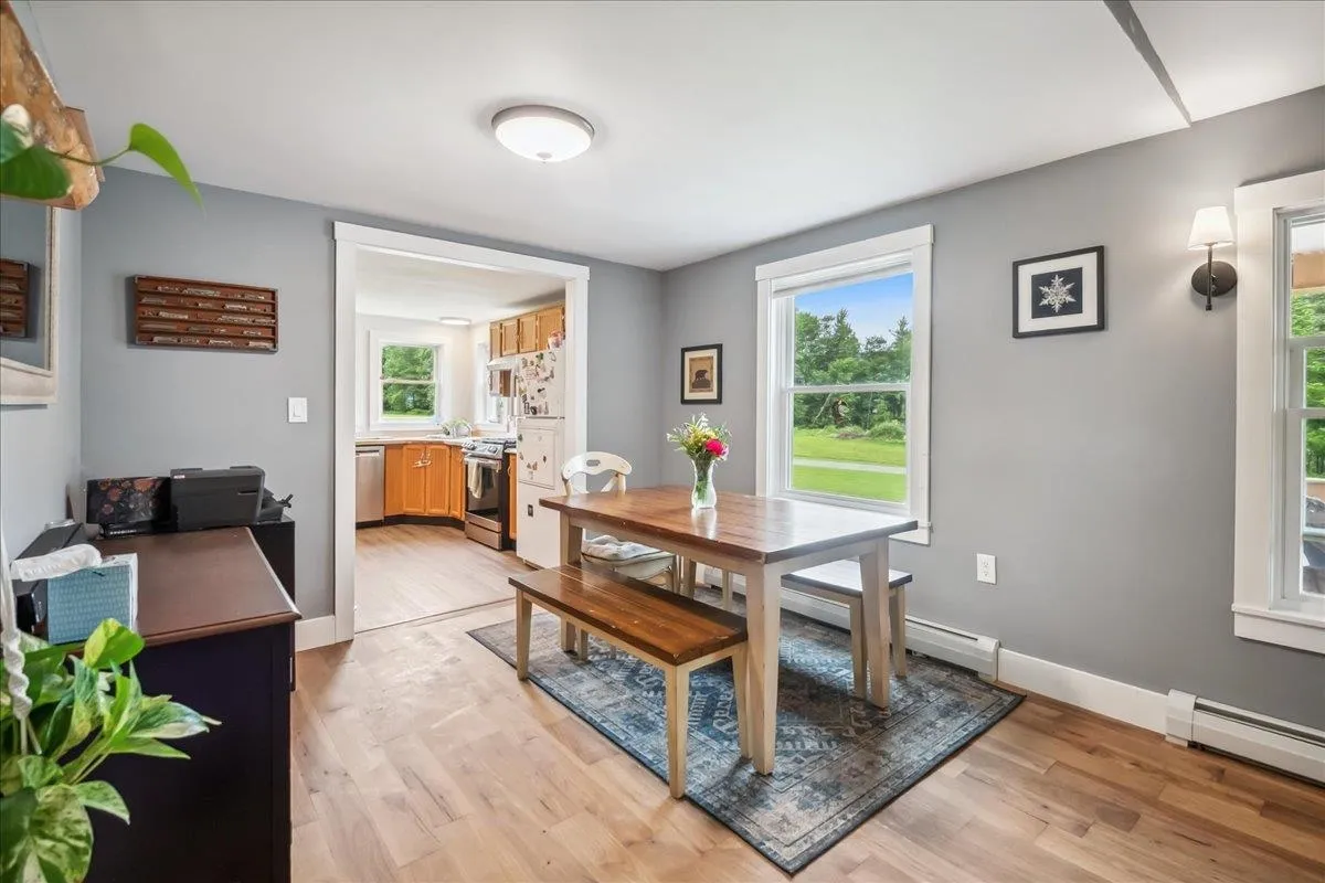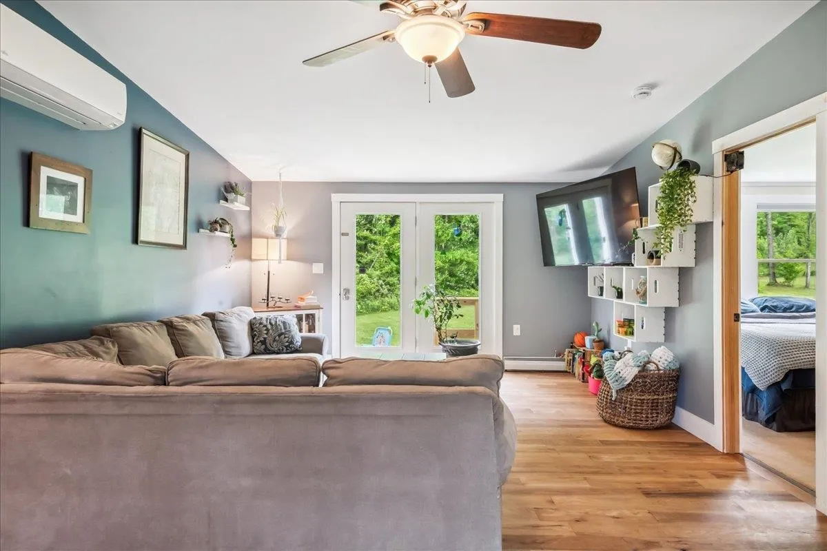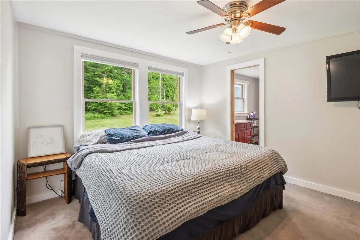 +"PublicRemarks": "Nestled at the foot of Hogsback Mountain, this charming 3-bedroom, 2-bath ranch sits on over 2 peaceful acres in the scenic town of Bristol. Located in a quiet, friendly neighborhood the home is just a 5-minute drive or a pleasant 30-minute walk into the village. Enjoy your mornings or evenings on the covered front porch, taking in the serene mountain views and surrounding greenery. The detached two-car garage offers plenty of space, while inside, hardwood hickory floors flow through the living and dining areas. The open-concept layout welcomes you into a bright living room with glass doors that lead to the backyard—ideal for gardening or relaxing outdoors. A cozy wood stove warms the space in cooler months. The kitchen is both functional and spacious, featuring ample counter and cabinet space along with a large walk-in pantry. All three bedrooms are generously sized, including a primary suite with two closets and a private bath. A second full bathroom completes the main level. The full walkout basement provides excellent storage space and includes a dedicated laundry area. With nearby hiking trails and a welcoming community, this home is a perfect blend of comfort and nature—schedule your showing today!"