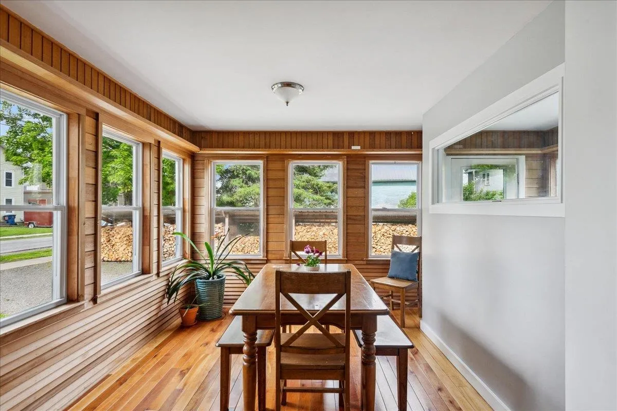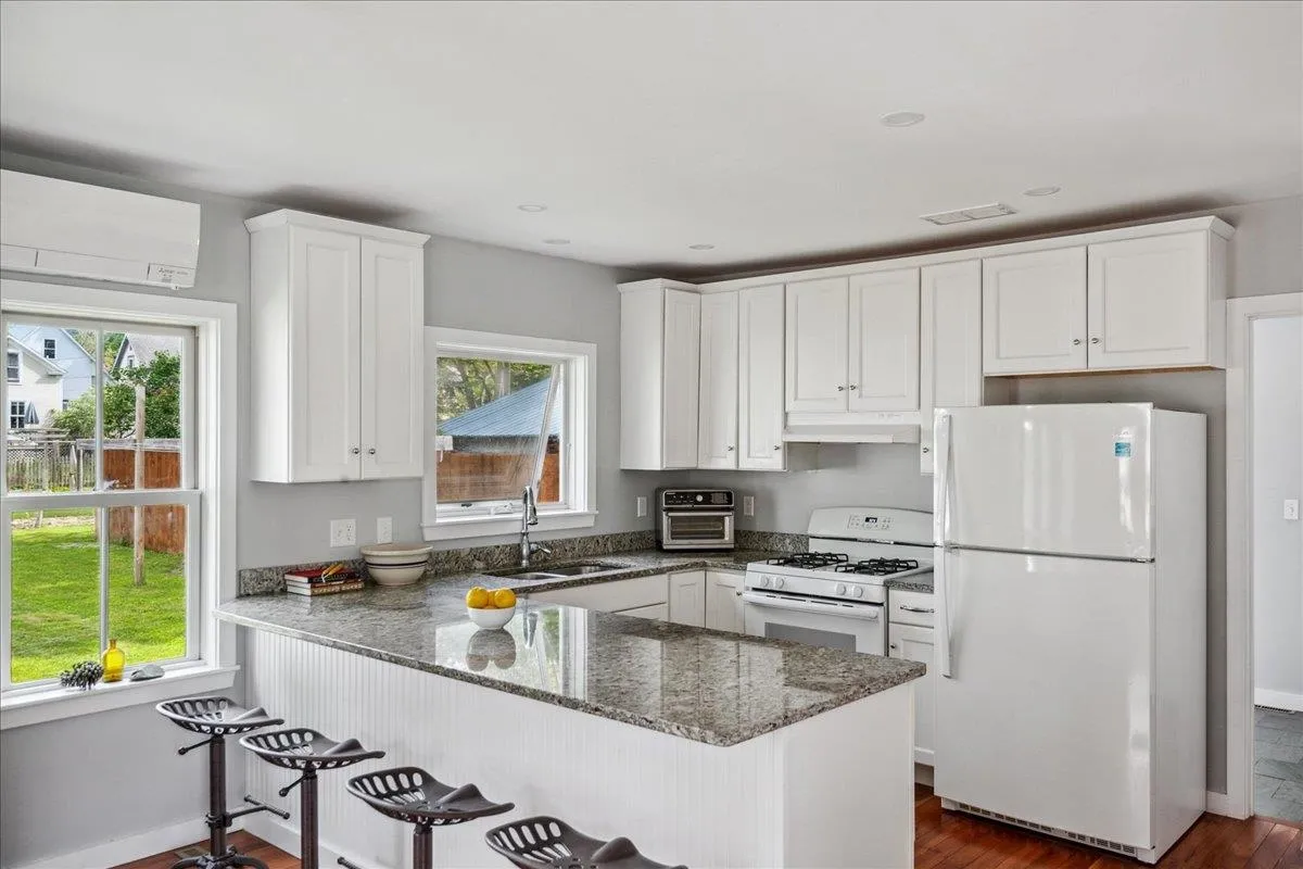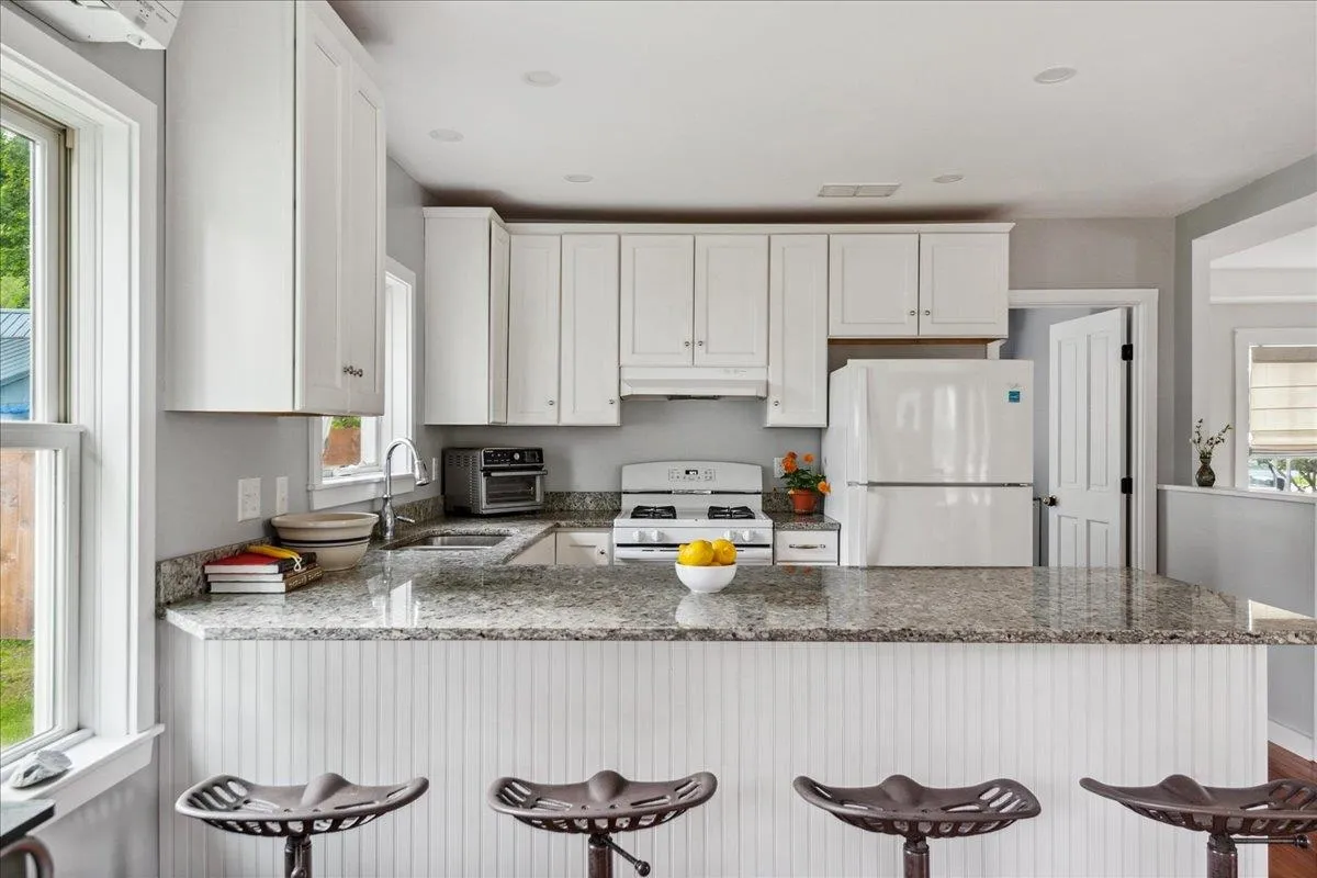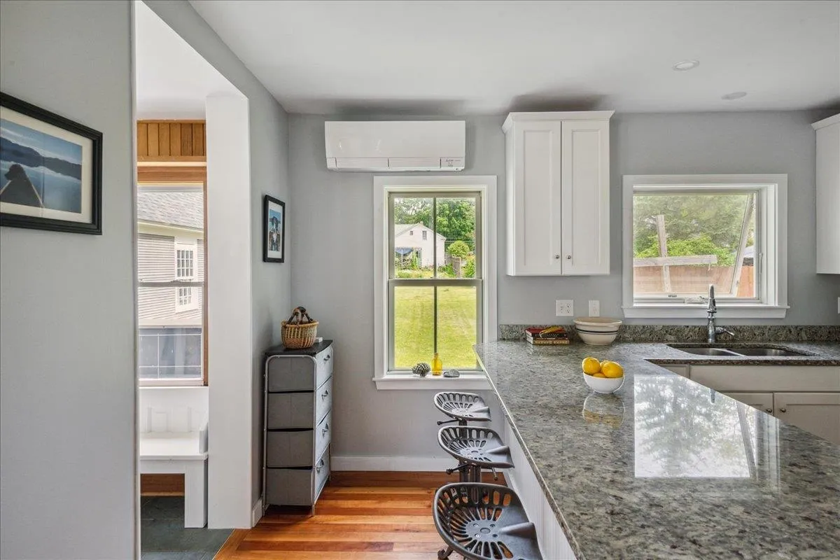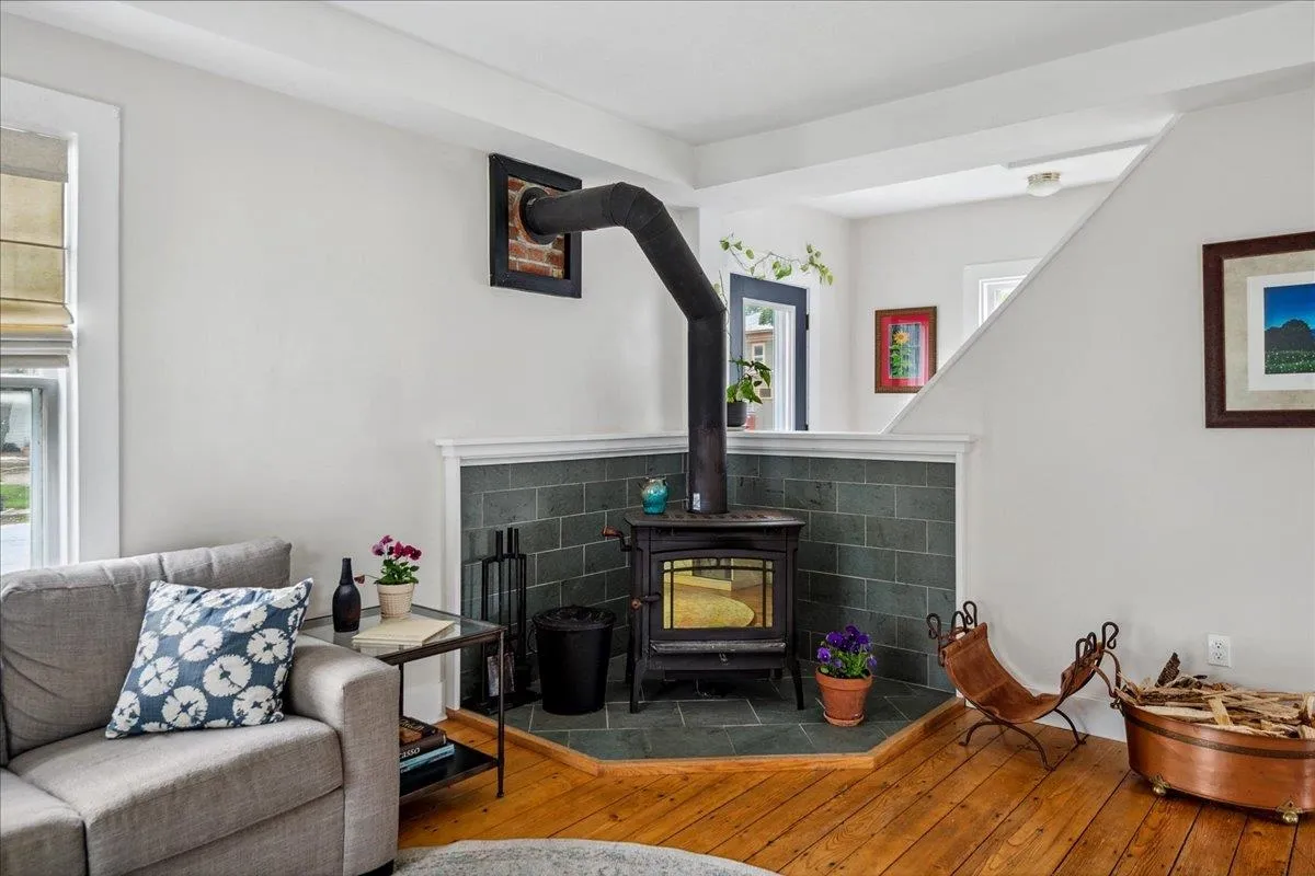 +"PublicRemarks": "Beautifully updated home in Bristol Village! This 1910 farmhouse has had renovations galore over the past 10 years including new roof, furnace, wood stove, heat pumps, insulation, 200 amp electrical panel, and a heat pump water heater. A major interior remodel in 2017 also included a new kitchen, mudroom, dining room, first floor laundry, a few new windows and a new bathroom on the second floor - all thoughtfully designed by a local architect. Special design touches like the slate surround for the wood stove and wood paneling in the dining room really make this interior stand out! The bright white kitchen is open to the other adjacent rooms and has ample granite counter space for prep. Upstairs you'll find a reading nook and custom bureaus in two of the bedrooms with gleaming wood flooring throughout! The third and largest of the bedrooms has a deep closet and south facing windows to let that sunlight in! The expansive rear yard has an asparagas patch, blueberry and raspberry bushes, and plenty of space to relax, garden and entertain. The detached barn has enough room to park a vehicle in the front, plus a large storage area in the back with a new barn door. This Bristol Village home has been lovingly cared for and is ready for its new owners this summer!"