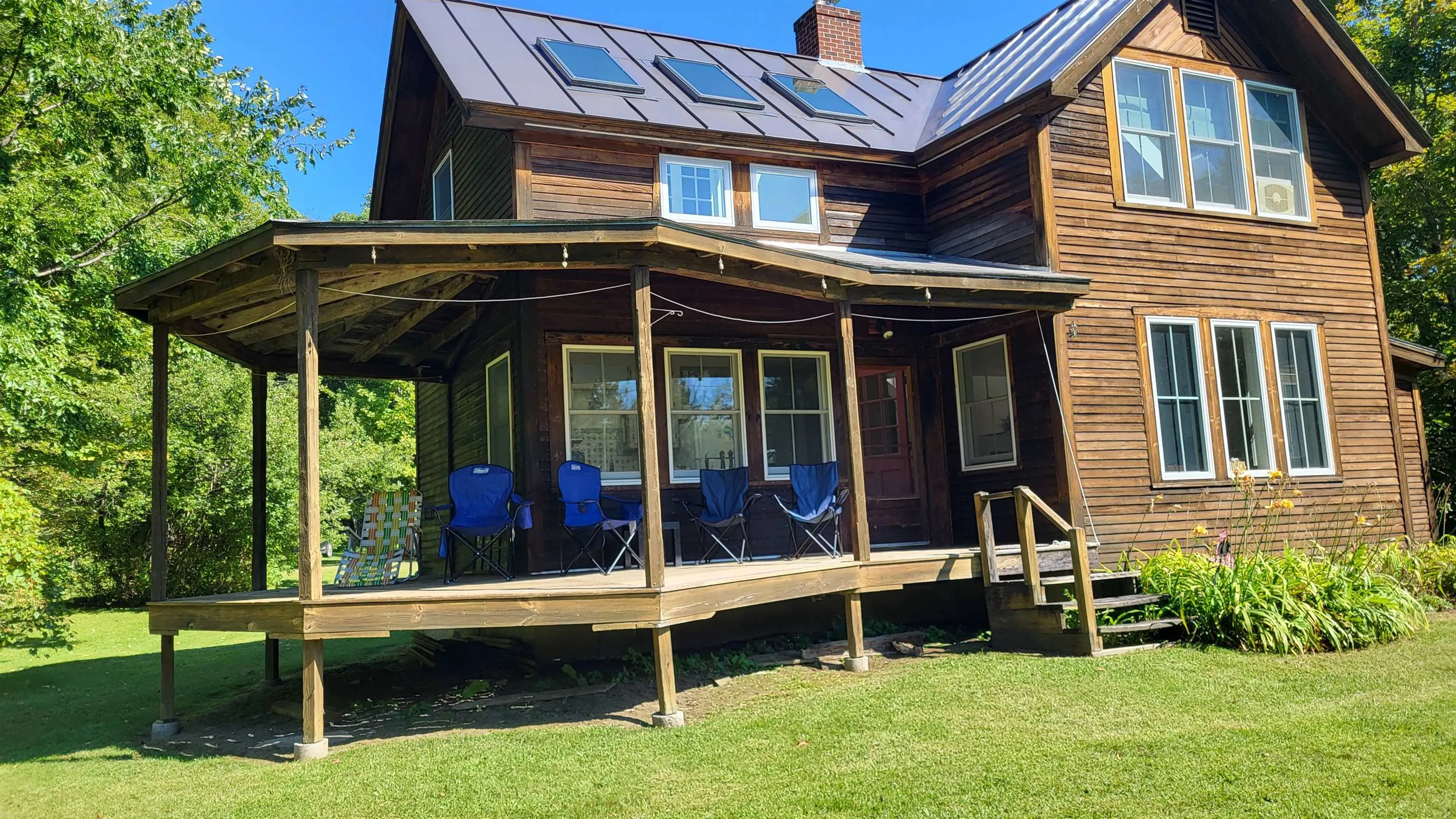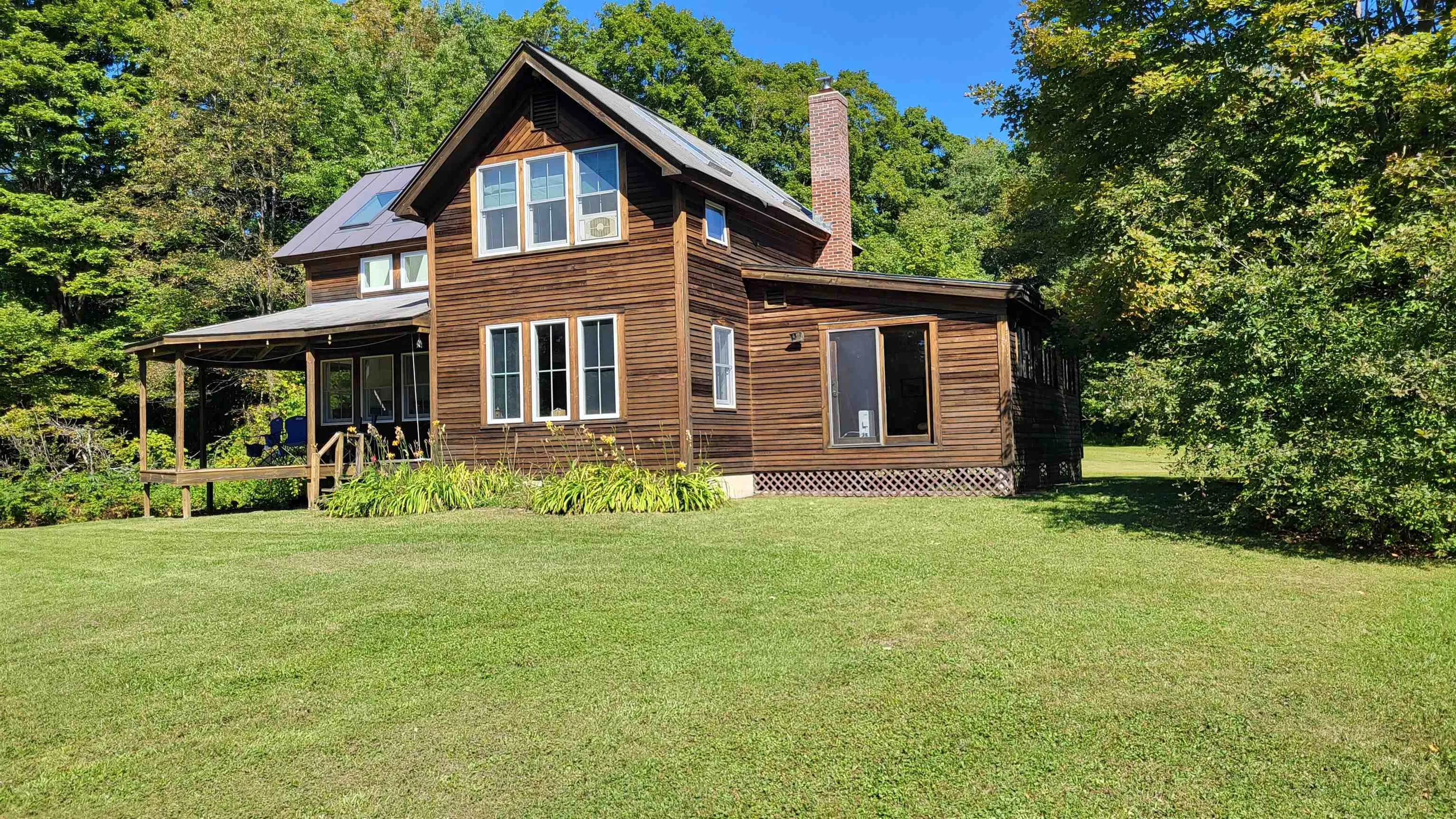 +"Remarks - Public": "Looking for a quiet home with beautiful surroundings? This could be what you are looking for. This 2-bedroom home would be perfect for a Vermont getaway or year round living. Enjoy the outdoors from a large covered porch or cozy up next to the wood stove on a winter day.\u{A0} Several skylights and large south facing windows create a bright, cheery\u{A0}living space. The house is situated on 10.1 acres of land with a well cared for lawn."
