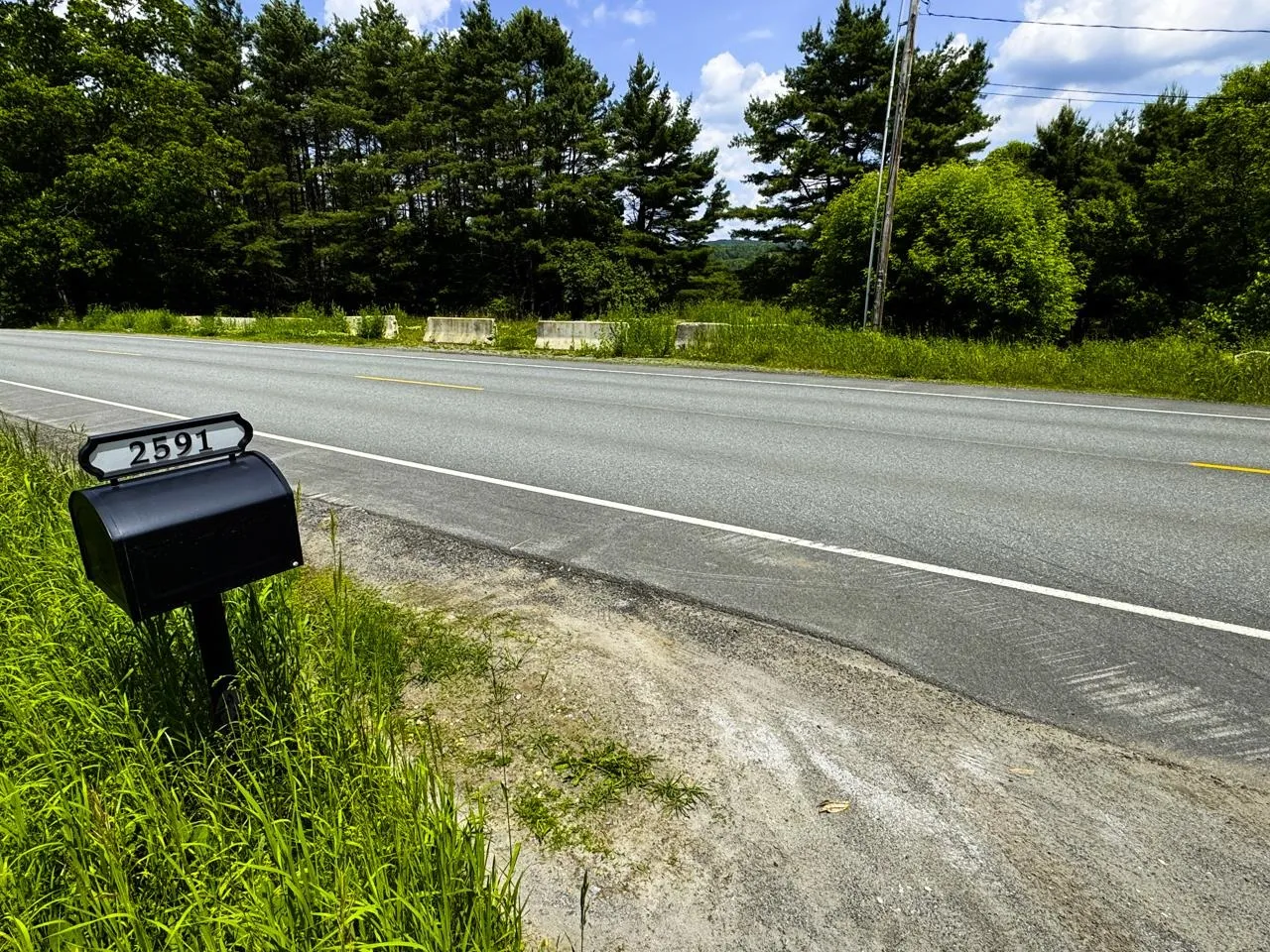 +"Directions": "From Exit 23 on 91N, turn R on Route 5 1.3 miles, L onto Depot Street .1 mile, then R on Route 5 aka N Main Street 2.5 miles. Turn L onto driveway just before black mailbox labeled 2591. At driveway fork stay straight. At 2nd driveway fork, stay straight to lot 1 on L and 2 above on R."