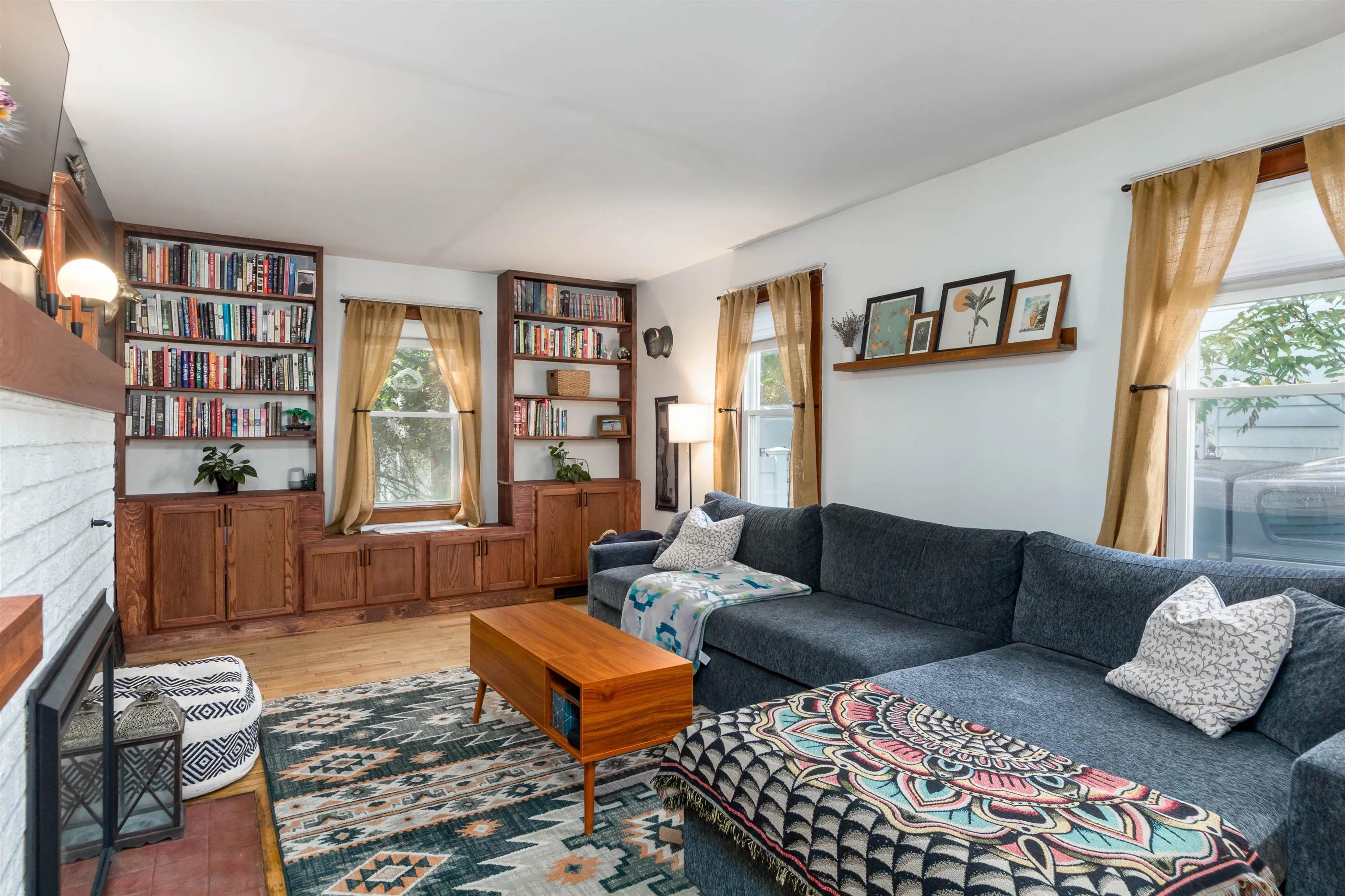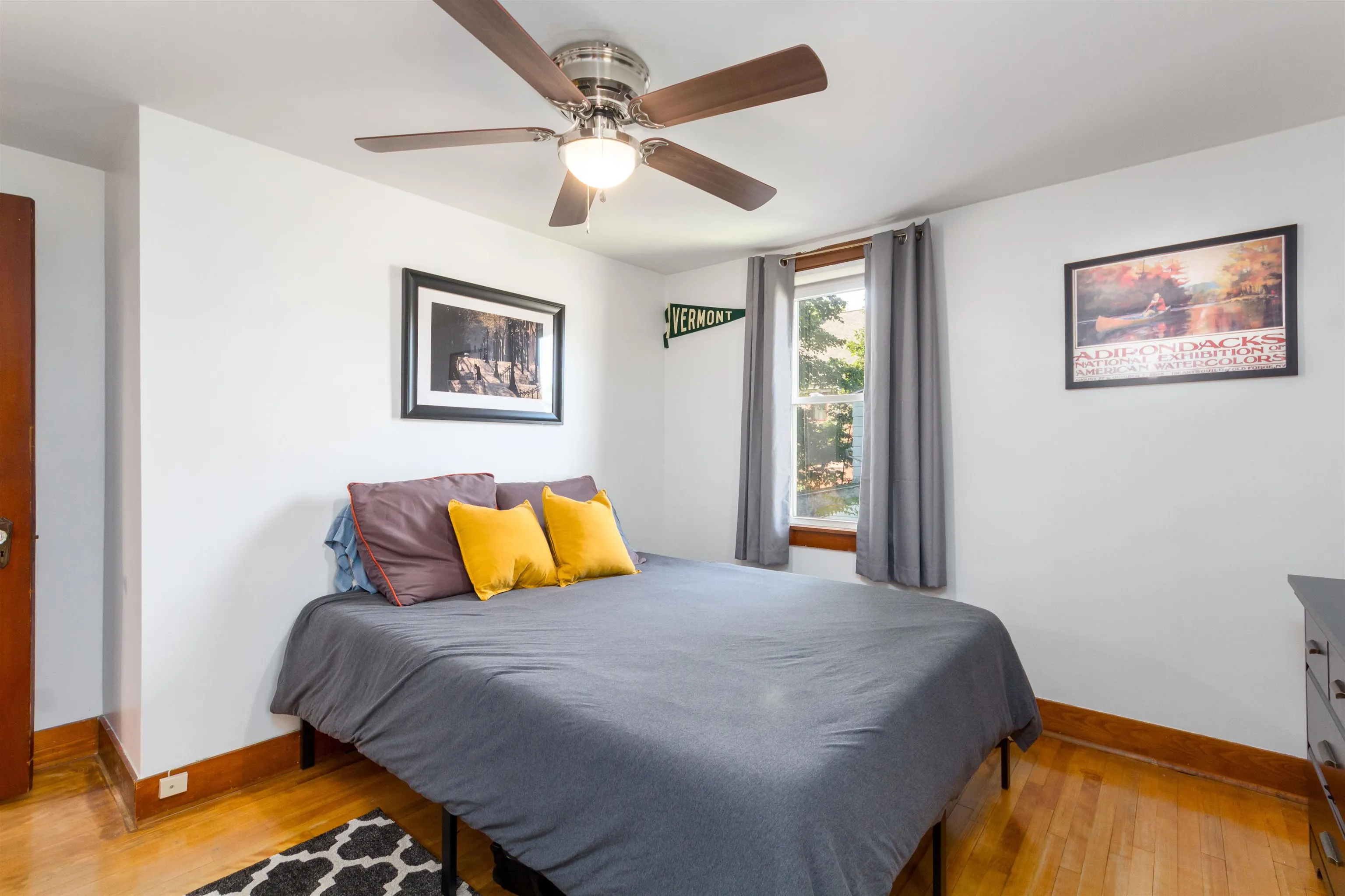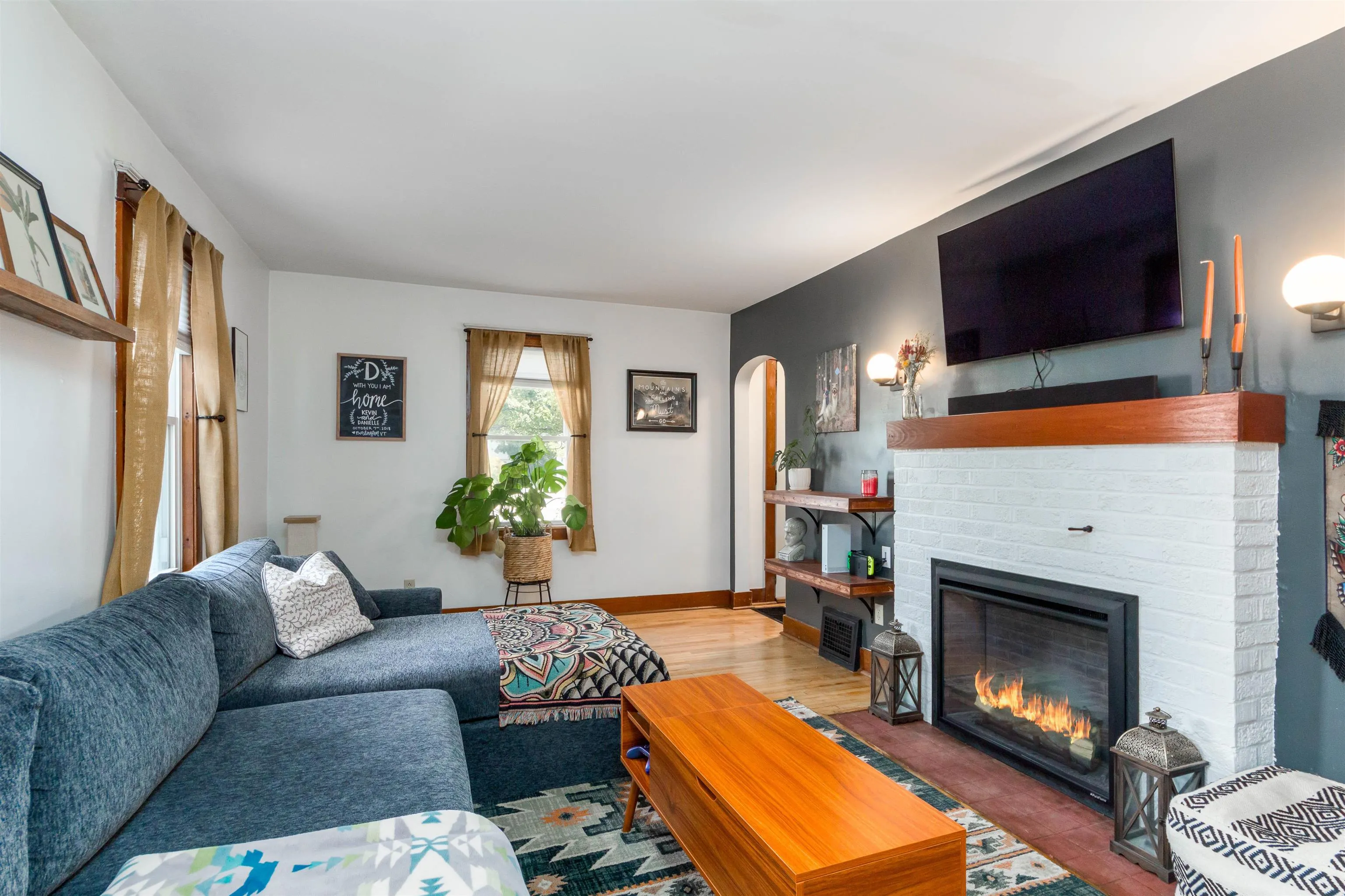 +"PublicRemarks": "Welcome home to this sophisticated and beautifully updated mid century colonial in Burlington’s New North End. Modern upgrades and historical charm come together in a home that truly shows its pride in ownership. Entering from the central foyer, you will find a generously sized living room with a gorgeous white brick and wood fireplace and built in cabinets. The other side of the foyer leads to a stylish dining room and through to a tastefully updated kitchen with butcher block countertops. Behind the kitchen lies a three season sunroom with wrap around windows. Upstairs, you’ll find 3 bedrooms with hardwood floors, built-ins, and a renovated full bathroom. A large unfinished basement with laundry allows for plenty of storage. Enjoy the central AC in the hot summer heat, and the newer (2022) efficient gas furnace in the cold Vermont winters. Outside, there is a detached 2 car garage and fully fenced in backyard- perfect for gardening in the established beds or relaxation by the fire pit. Walking distance to the shopping center and bike path, this location exudes convenience! Come see this one of a kind home today!"