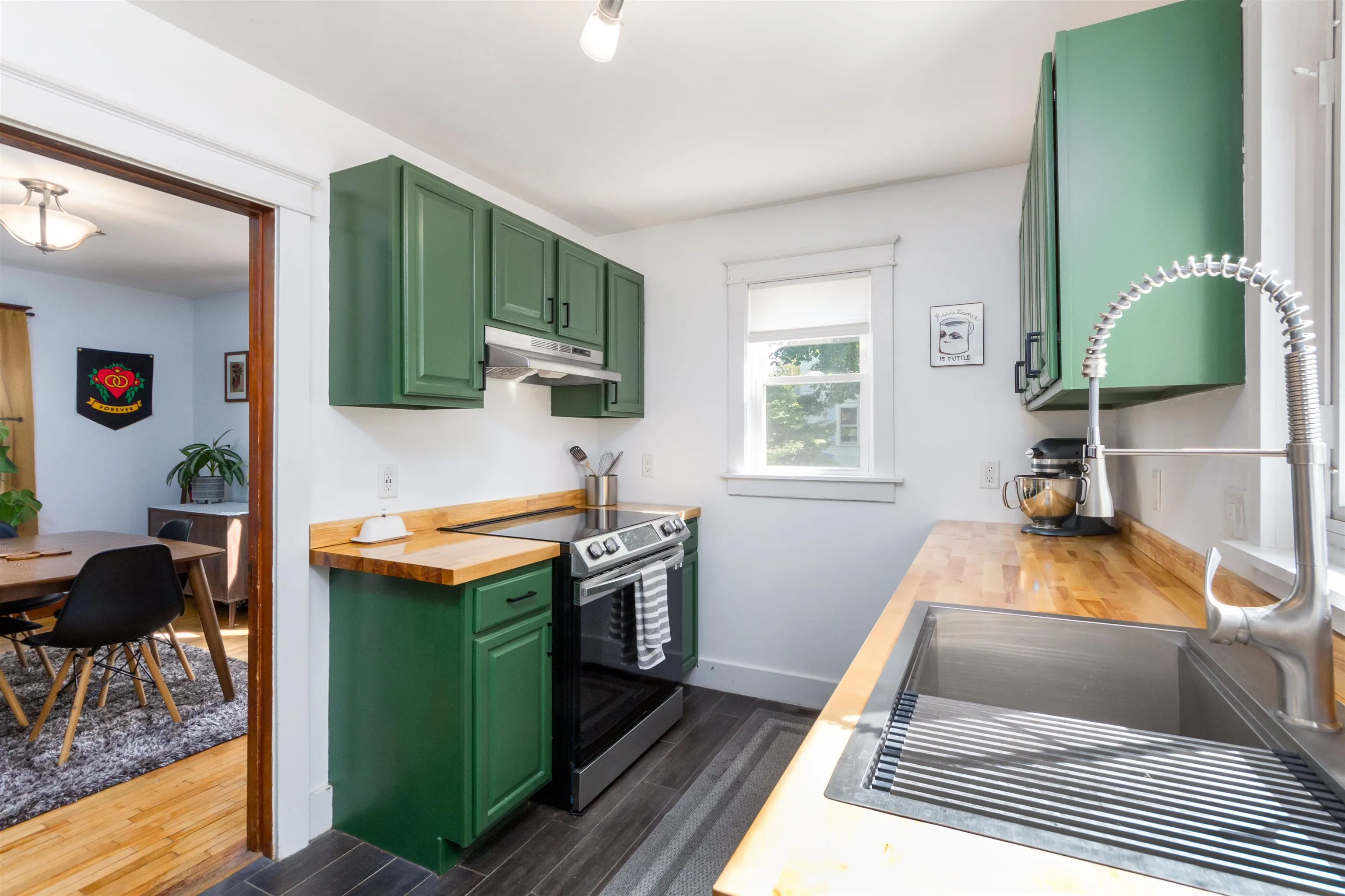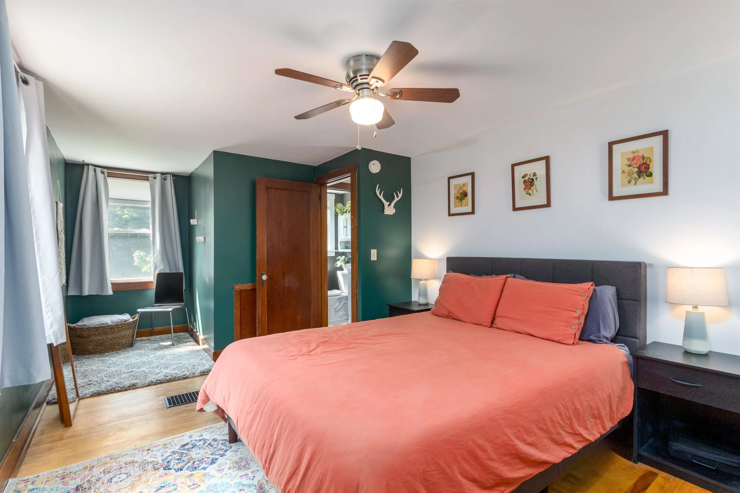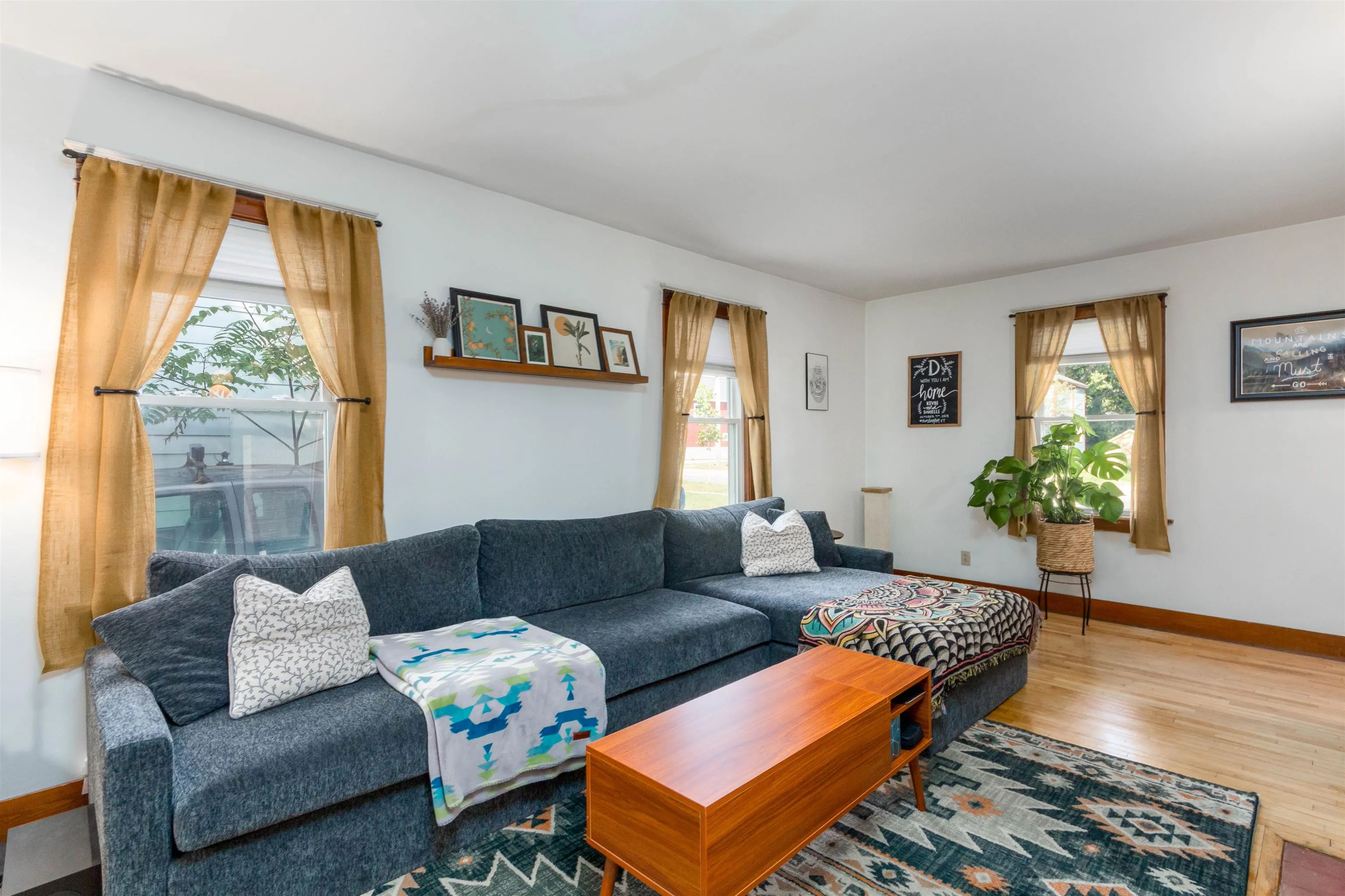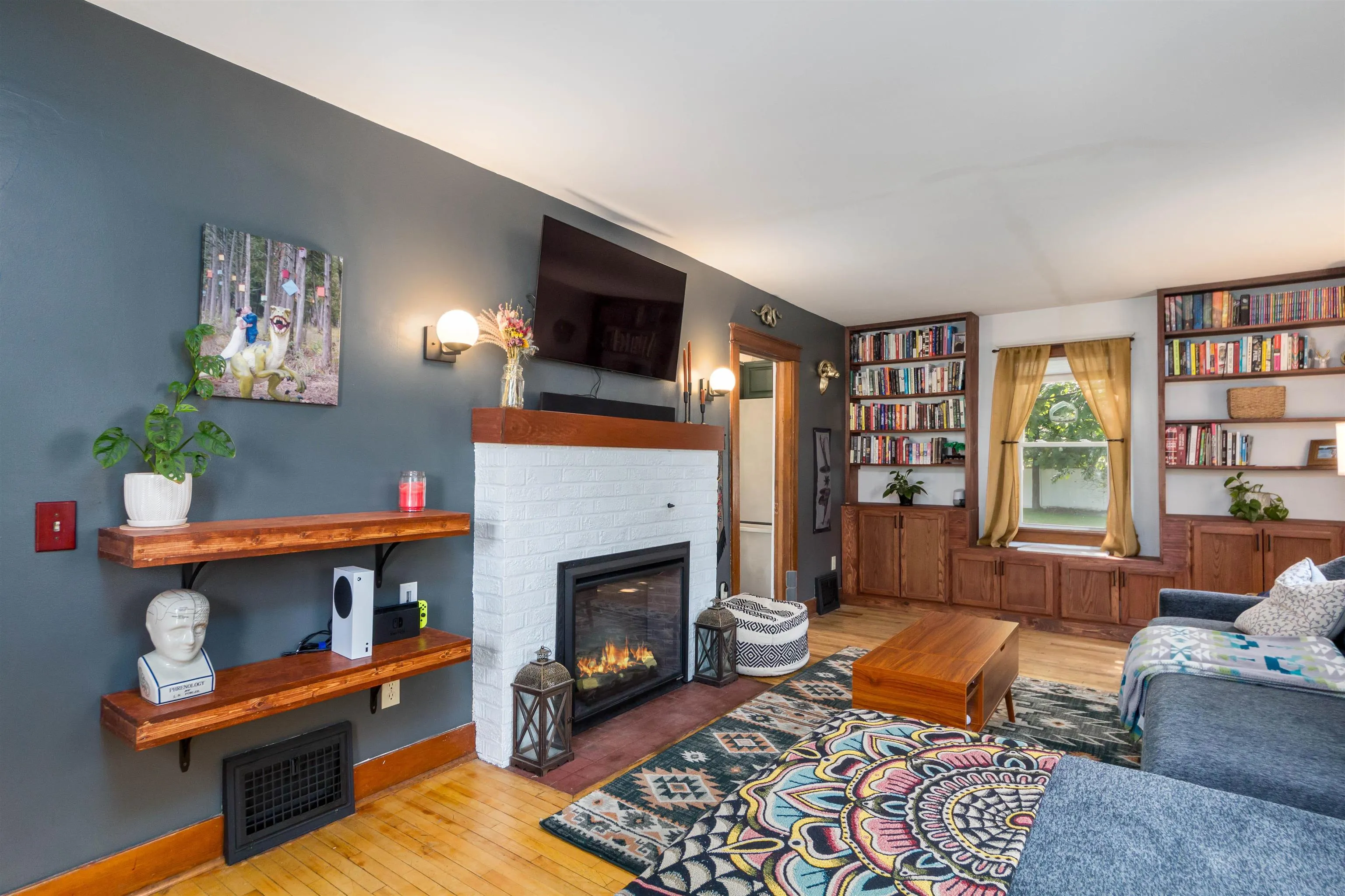 +"PublicRemarks": "Welcome home to this sophisticated and beautifully updated mid century colonial in Burlington’s New North End. Modern upgrades and historical charm come together in a home that truly shows its pride in ownership. Entering from the central foyer, you will find a generously sized living room with a gorgeous white brick and wood fireplace and built in cabinets. The other side of the foyer leads to a stylish dining room and through to a tastefully updated kitchen with butcher block countertops. Behind the kitchen lies a three season sunroom with wrap around windows. Upstairs, you’ll find 3 bedrooms with hardwood floors, built-ins, and a renovated full bathroom. A large unfinished basement with laundry allows for plenty of storage. Enjoy the central AC in the hot summer heat, and the newer (2022) efficient gas furnace in the cold Vermont winters. Outside, there is a detached 2 car garage and fully fenced in backyard- perfect for gardening in the established beds or relaxation by the fire pit. Walking distance to the shopping center and bike path, this location exudes convenience! Come see this one of a kind home today!"