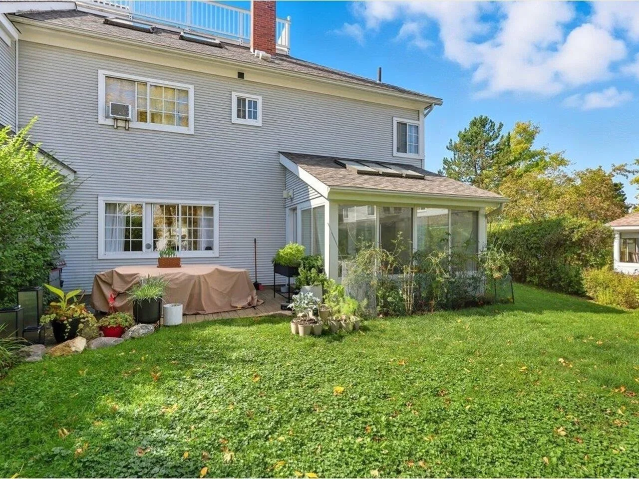 +"PublicRemarks": "Spacious 3-bed, 2.5-bath end-unit townhome at Southwind, a highly desirable neighborhood located in the South End of Burlington, nearby Lake Champlain, Oakledge Park, many coveted South End restaurants & breweries, and the Burlington Bike Path. Step inside and you will appreciate the versatile floor plan and the numerous windows. The well-laid-out kitchen opens to the spacious dining room with fireplace and convenient access to the lovely sunroom, perfect for enjoying morning coffee. A comfortable living room, ½ bath, convenient laundry, and office space round out this first floor. On the second floor are 3 generously sized bedrooms with the primary bedroom featuring an oversized walk-in closet and en suite bath. Access the rooftop deck where you can witness spectacular sunsets from the third floor. This floor is another versatile space ideal for an exercise room, office, or guest space. The outdoor patio space is sunny enough for those with a green thumb. Attached 2-car garage and an oversized driveway offer parking for 6 vehicles. Southwind is one of the South End's most sought-after communities with amenities that include tennis and pool, and easy access to Interstate 89."