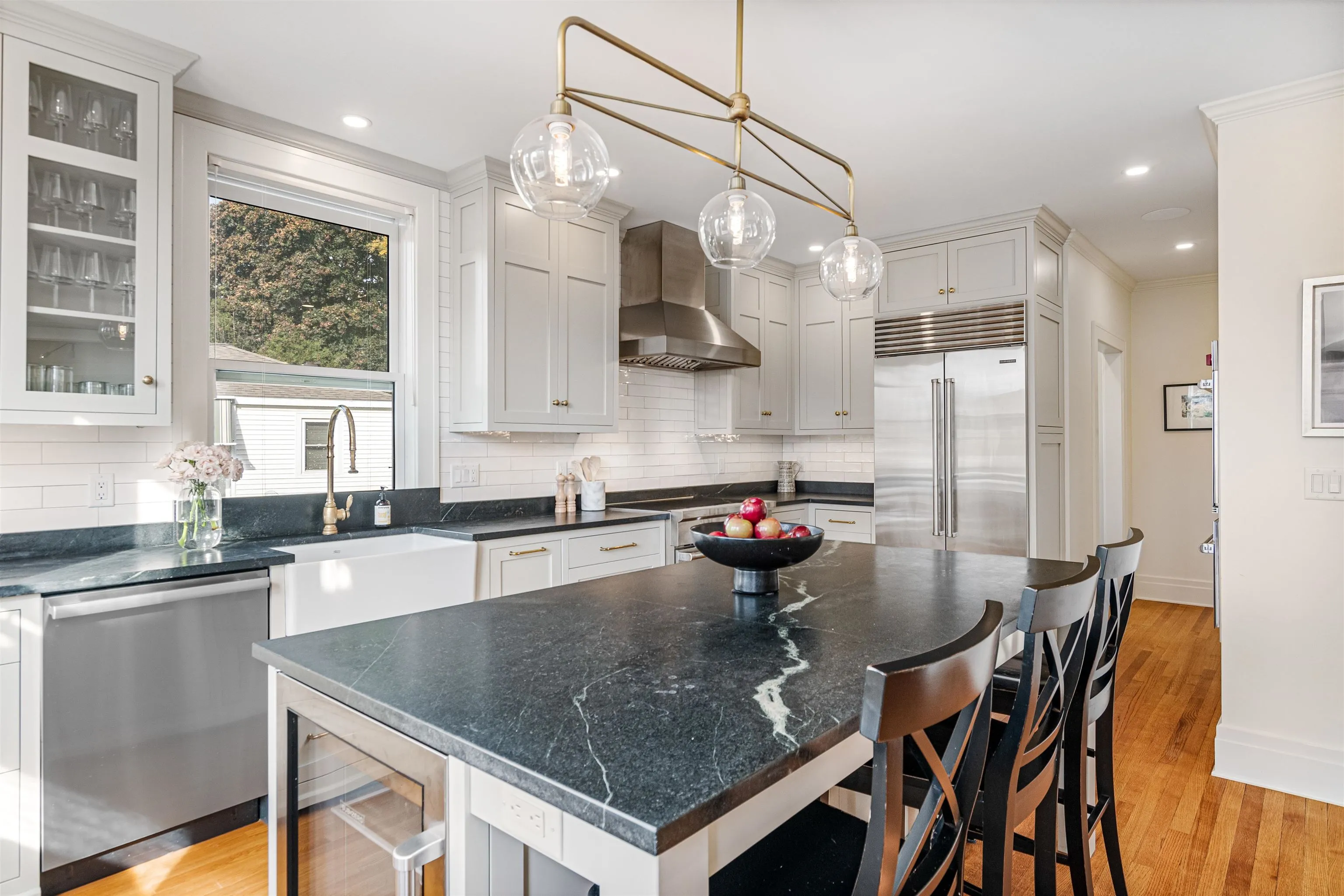 +"PublicRemarks": "Welcome to 480 South Willard Street! Nestled in the Hill Section of Burlington, it’s walkable to Church Street, the University of Vermont and the waterfront where you can enjoy all the beauty of Lake Champlain. This home features tons of charming details like the stately brick exterior, hardwood floors throughout, original door and window moldings as well as the original doors and door hardware. These lovely details are perfectly blended with the host of improvements that have been tastefully done over the years, creating a beautiful, functional and welcoming home! The kitchen is stunning, renovated in 2020 to include custom inset cabinetry, soapstone countertops and Wolf, Subzero and Miele appliances. The butler’s pantry offers additional counter space and storage and a filtered water bottle filler for added convenience. The living area is cozy with a wood stove and built in shelving and the dining area has large windows overlooking the front yard. Upstairs, the primary suite features a walk-in closet and ensuite with a charming clawfoot tub and tiled shower. Two additional bedrooms, an office and a large full bathroom complete this level. On the third floor, you’ll find the secondary primary suite offering a beautiful view with peeks of the lake and Adirondack mountains. The attached bathroom is spacious with a clawfoot tub and walk-in tiled shower. Outside, enjoy the deck off the back of the house, the nice, level yard with garden space and the two car detached garage."