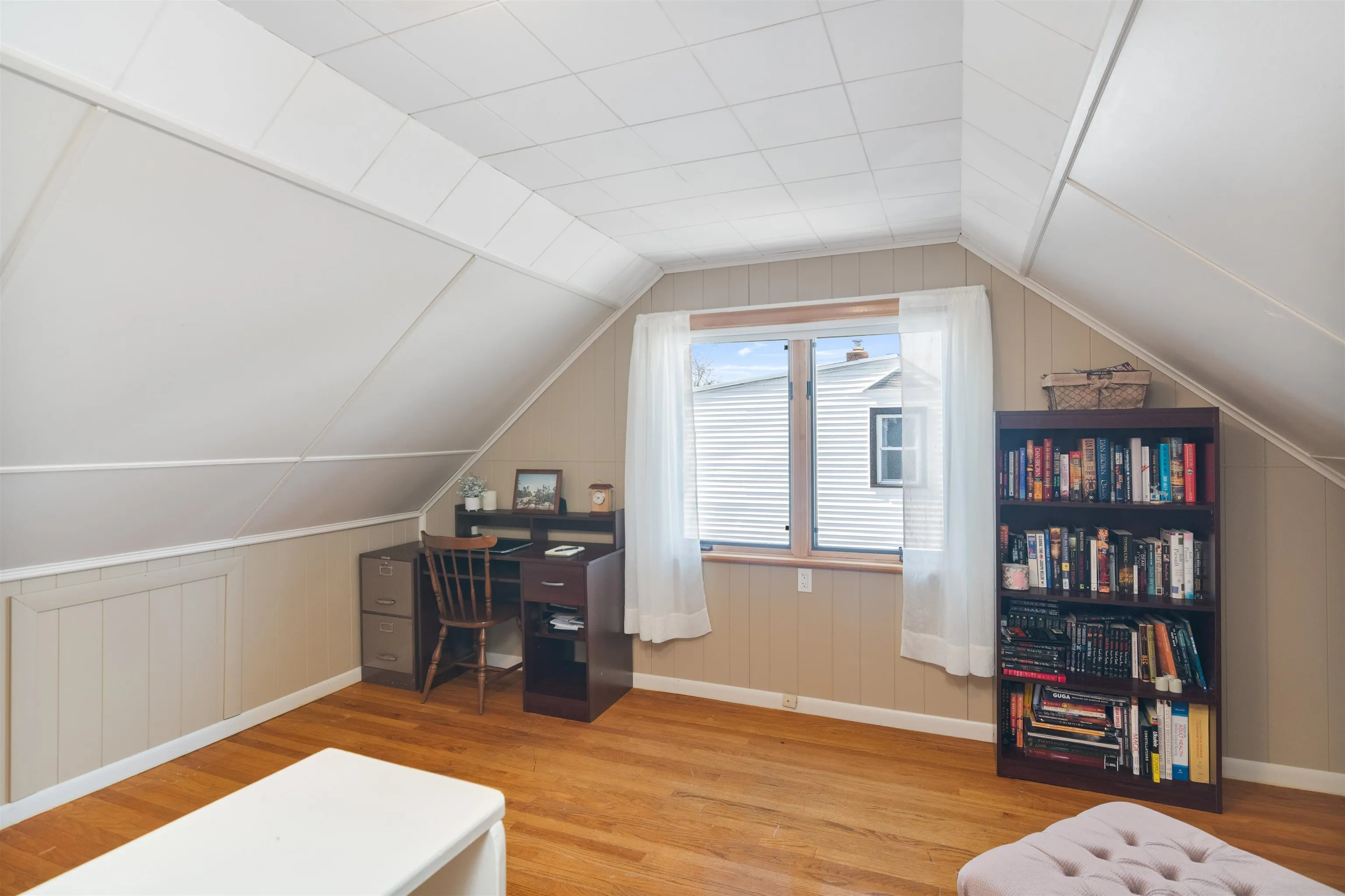 +"PublicRemarks": "Welcome to 49 Morgan St in Burlington’s desirable New North End! This sun-filled 3-bedroom, 1.5-bath Cape offers 1,641 sq ft of beautifully maintained living space. Hardwood floors flow throughout the home. The first floor features a bright living room, eat-in kitchen with granite countertops and stainless steel appliances, two bedrooms, a full bath, and a stunning 4-season sunroom with a cozy gas stove. Upstairs, you’ll find a spacious third bedroom, half bath, and a bonus space—perfect as a home office or guest space. Enjoy central air, central vacuum, and thoughtful updates throughout. The fully fenced .22-acre yard is ideal for pets or gardening, while the detached one-car garage features loft storage and a unique covered porch—great for outdoor relaxation or hobbies. Located in a walkable neighborhood close to parks, schools, and Lake Champlain, this home offers comfort, location, and convenience."