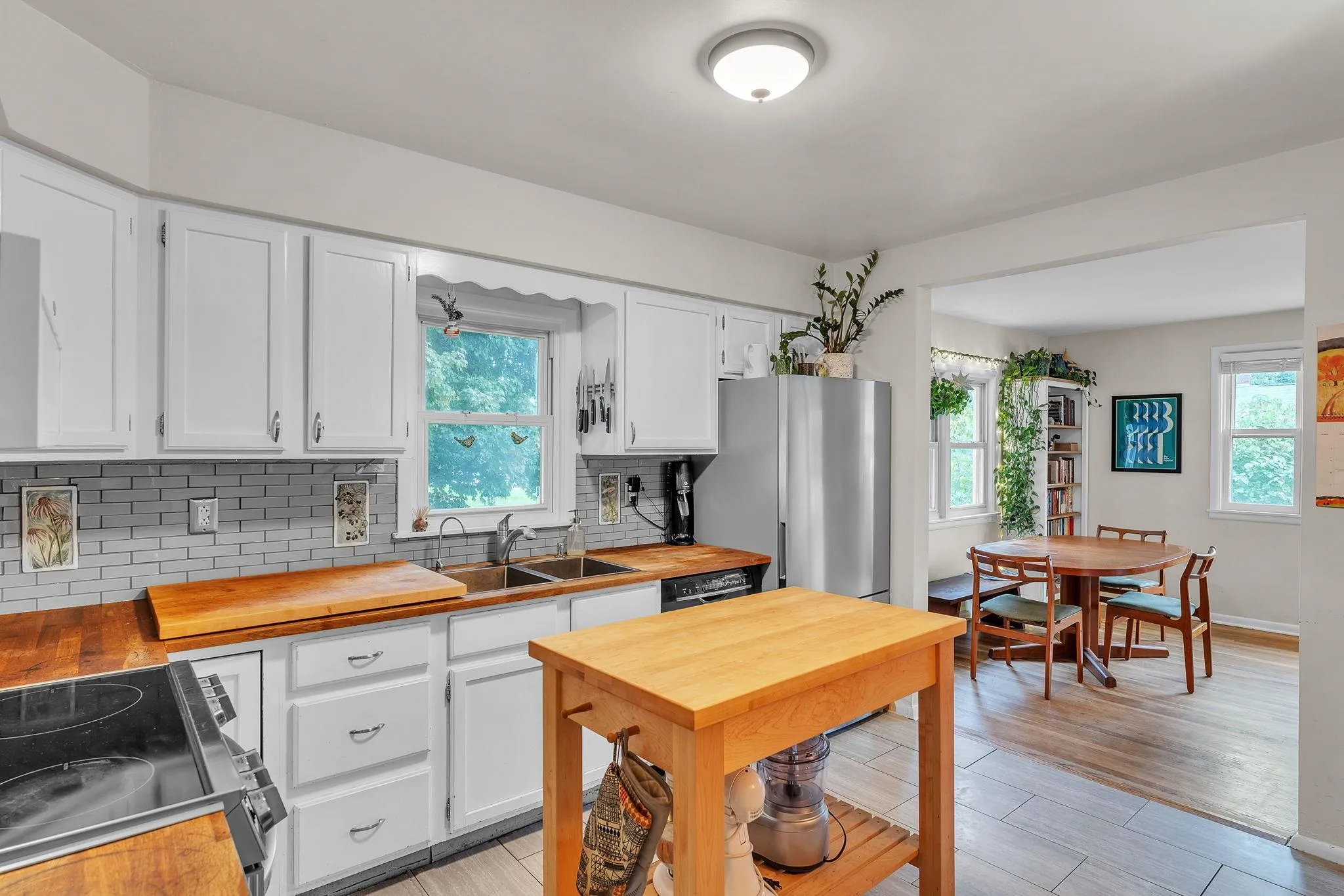 +"PublicRemarks": "Welcome to this delightful 3-bedroom, 1-bath ranch home, nestled in the New North End of Burlington. With a blend of modern updates and timeless charm, this home is move-in ready! Key features include a new furnace in 2018, central air conditioning, and refinished hardwood floors that add warmth and elegance throughout. The fully insulated and weatherized home (through the Vermont Gas program) also boasts an updated electrical panel, solid wood doors, many new energy-efficient windows, an on-demand hot water system and has undergone a full lead abatement with the Burlington lead program.The beautifully remodeled kitchen shines with mostly new appliances, ceramic tile flooring, and a unique backsplash featuring hand-crafted tiles by local artist Janice Walrafen—bringing a touch of local charm into your cooking space. Additional highlights include a dry basement with washer/dryer, bonus space full of potential, and ample storage. Outside, the one-car detached garage and fully fenced backyard provide convenience and privacy. The yard is a gardener’s dream with established gardens, fruit bushes, and even a chicken coop. Located just a block from Lake Champlain and the bike path, this home offers easy access to Burlington’s best outdoor amenities. Commuters will love the quick access to the beltline, nearby shopping, and bus lines. This is a must-see home in an unbeatable location—don’t miss out on making it yours!"