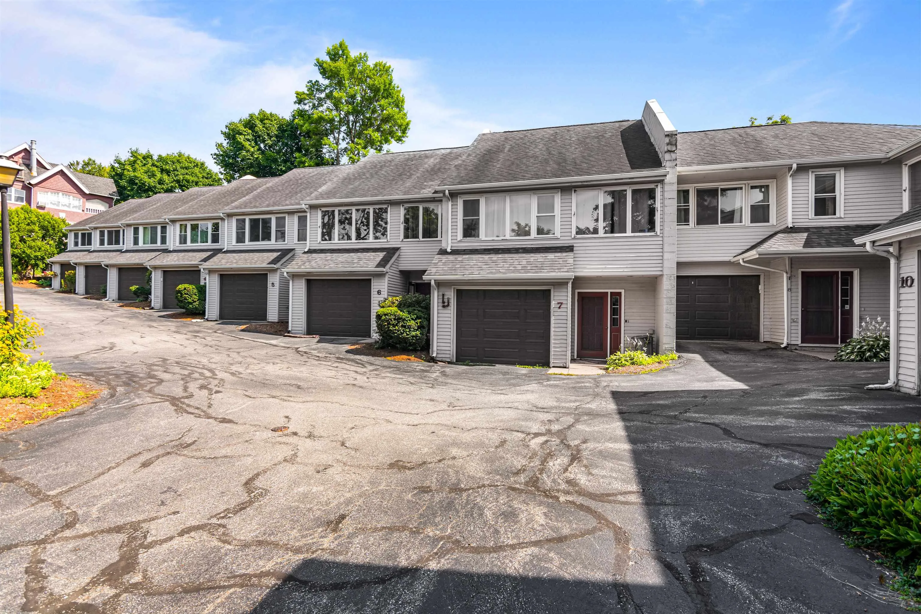 +"PublicRemarks": "Incredible location and cool space for a walkable lifestyle from this spacious 3-level corner unit townhome in Burlington’s Hill Section, across the street from the UVM campus and a short stroll to Downtown Burlington, UVM Medical Center, and Champlain College. The tiled entry area includes a large closet and ½ bath. A few steps up lead to an open main level with vaulted ceilings, wide plank wood floors, large windows surrounding dining/living space. French doors lead from the living area to a huge, private back deck with an awning for seasonal use. The tastefully appointed kitchen features stainless appliances, solid surface counters, and attractive glass backsplash. Stairs up lead to a skylit loft area overlooking the living area, great for a home office, den or bonus living space. The enormous primary suite on this level has newer carpet and room for a separate sitting area or desk, and includes a full bath and large closet. A second large bedroom can be found on the lowest level with laminate flooring and glass doors out to a patio area. A laundry with newer washer and dryer and a second full bath complete this level. Home includes an attached one-car garage and a second assigned parking spot. This unique unit has one more full bath than others in the complex as well as the largest deck. Pets allowed. Garage door code is 3104."