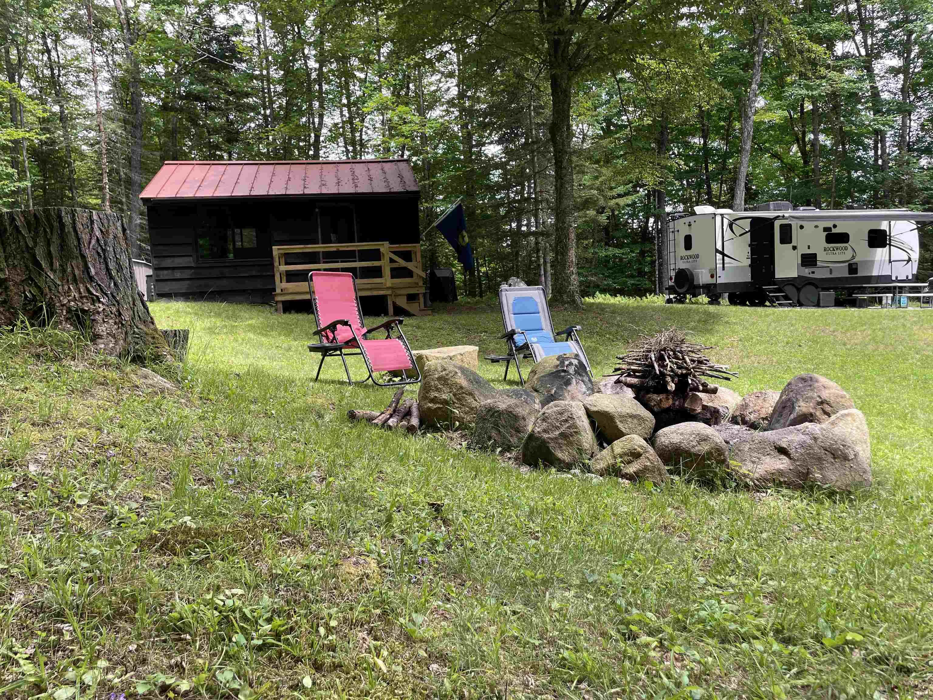 +"PublicRemarks": "Escape to the countryside with this serene 22+/- acre retreat, featuring a thoughtfully restored 320sqft cabin and a 2020 Rockwood Ultralite 2026WS camper—perfect for hosting guests or enjoying extended stays. The off-grid cabin features include natural wood finishes, a propane cooktop, refrigerator, water heater, lighting, and an incinerator toilet. A new standing seam metal roof, updated windows, and a spacious deck bring the cabin comfortably into the present day. Enjoy practical upgrades for self-sufficiency: a remote controlled 4,500-watt generator, solar panels providing 840 watts, (4) 100 amp-hour lithium batteries, and a backup generator. Water is provided by a filtered, gravity-fed spring system to the cabin and camper. Surrounding the home, mature hardwoods and winding walking trails offer peaceful immersion in nature. A nearby babbling brook adds a soothing backdrop to your outdoor experience. Located nearby to Groton State Forest, the Lamoille Valley Rail Trail, and a variety of lakes and ponds waiting for you to enjoy!"