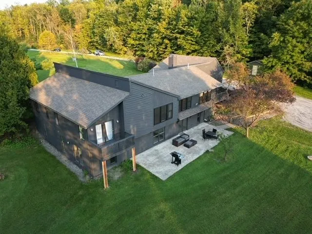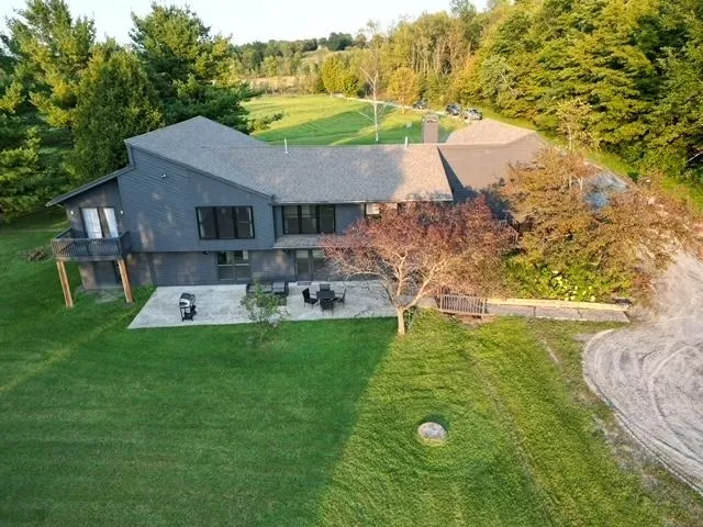 +"PublicRemarks": "A truly special home and a rare find. This 4 bedroom home also has an in-law walkout apartment on the lower level with an additional bedroom (for a total of 5), living room and kitchen making it great for multigenerational needs, live-in childcare or even income generating to offset the costs of ownership. The home sits on an amazing 40 acres of land with walking trails through the hayfields which also provides tremendous views and sunsets from the back deck and patio. Inside you will find many recent updates including new windows, flooring, kitchen cabinets and counters, appliances, vanities and more. The main living level features an open floor plan which allows light to pour in from all directions. The living room has a wall of windows providing great views of the entire back part of the property including the meadow as well as great sunsets. The main level also features the primary en-suite with double vanity, tiled shower, walk-in closet and two additional closets and a balcony for morning coffee. Great for anyone needing single level living. There are three additional bedrooms and two guest baths on the main level. In addition to the amenities out back, the home's covered front porch and stone patio overlook the home expansive front yard. There is just so much to love about this home it must been seen in person to be truly appreciated for its charm and value."