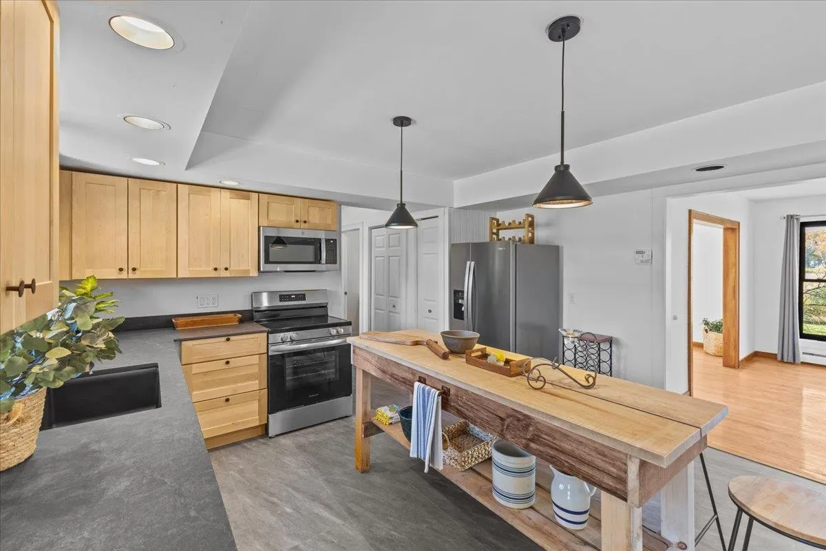 +"Remarks - Public": "A truly special home and a rare find. This 4 bedroom home also has an in-law walkout apartment on the lower level with an additional bedroom (for a total of 5), living room and kitchen making it great for multigenerational needs, live-in childcare or even income generating to offset the costs of ownership. The home sits on an amazing 40 acres of land with walking trails through the hayfields which also provides tremendous views and sunsets from the back deck and patio. Inside you will find many recent updates including new windows, flooring, kitchen cabinets and counters, appliances, vanities and more. The main living level features an open floor plan which allows light to pour in from all directions. The living room has a wall of windows providing great views of the entire back part of the property including the meadow as well as great sunsets. The main level also features the primary en-suite with double vanity, tiled shower, walk-in closet and two additional closets and a balcony for morning coffee. Great for anyone needing single level living. There are three additional bedrooms and two guest baths on the main level. In addition to the amenities out back, the home's covered front porch and stone patio overlook the home expansive front yard. There is just so much to love about this home it must been seen in person to be truly appreciated for its charm and value."