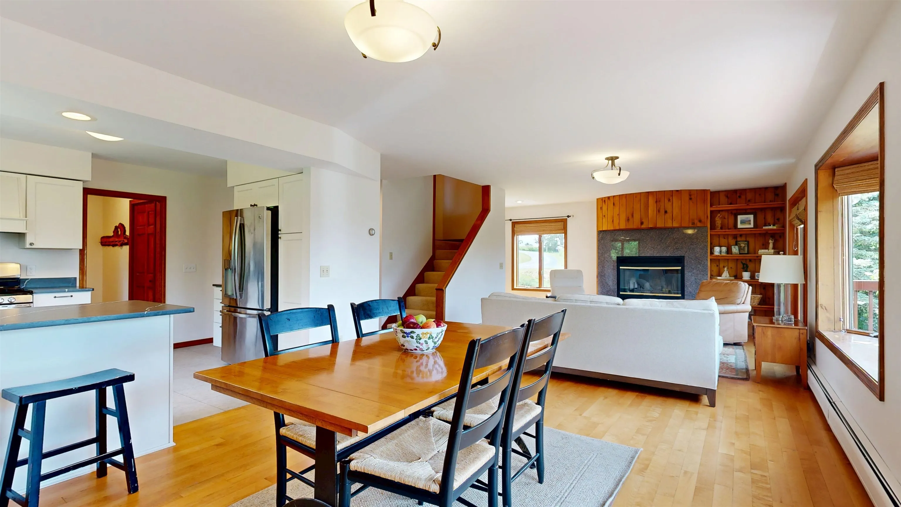 +"PublicRemarks": "Experience serene country living on 4.6 acres with beautiful western views & unforgettable sunsets. This stylish updated contemporary home offers the perfect blend of comfort & nature. The light-filled great room features a granite-surround wood-burning fireplace, while the remodeled kitchen shines with quartz counters, custom cabinetry & new SS appliances. The sunny first-floor office is ideal for remote work, a music room or library. Upstairs, the sunlit primary suite is a private retreat with vaulted ceiling, its own balcony overlooking the property, a walk-in closet, dressing space & updated bath with new quartz counters. Two additional bedrooms include walk-in-style closets & share a beautifully renovated full bath. The lower walkout includes a cozy den, meditation room with sauna & access to the backyard with a relaxing hot tub. Mini splits provide efficient cooling & a new standing seam metal roof (2022) adds durability & style to this special home. Enjoy summer evenings on the two-story deck or explore your own private cut walking trails, mature trees, & manicured lawn—perfect spot for nature lovers & sunset chasers. Truly special spot in a wonderful Charlotte location, just minutes from Mt Philo State Park, town beach & other wonderful amenities in nearby Shelburne & Vergennes. All this, plus an easy commute to Burlington, Middlebury, BTV airport, UVM & the Medical Center. Discover all that the Champlain Valley has to offer from your own beautiful corner of Vermont."