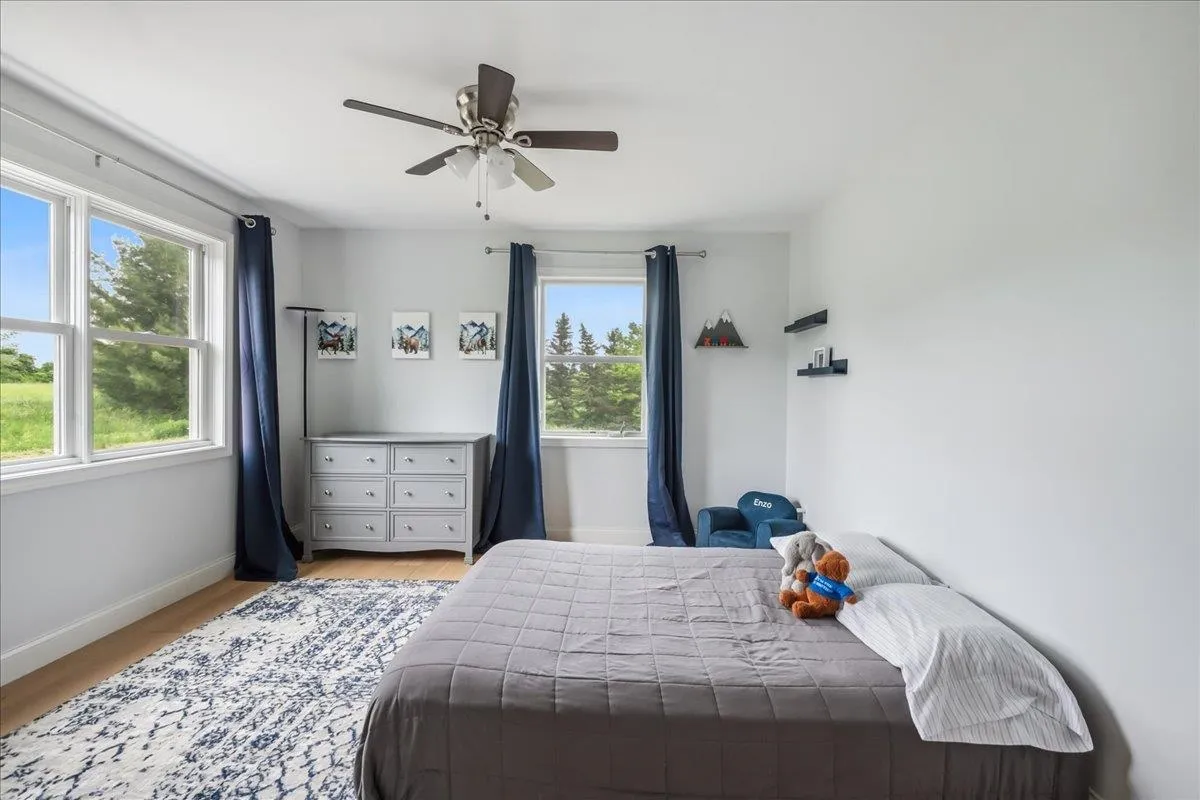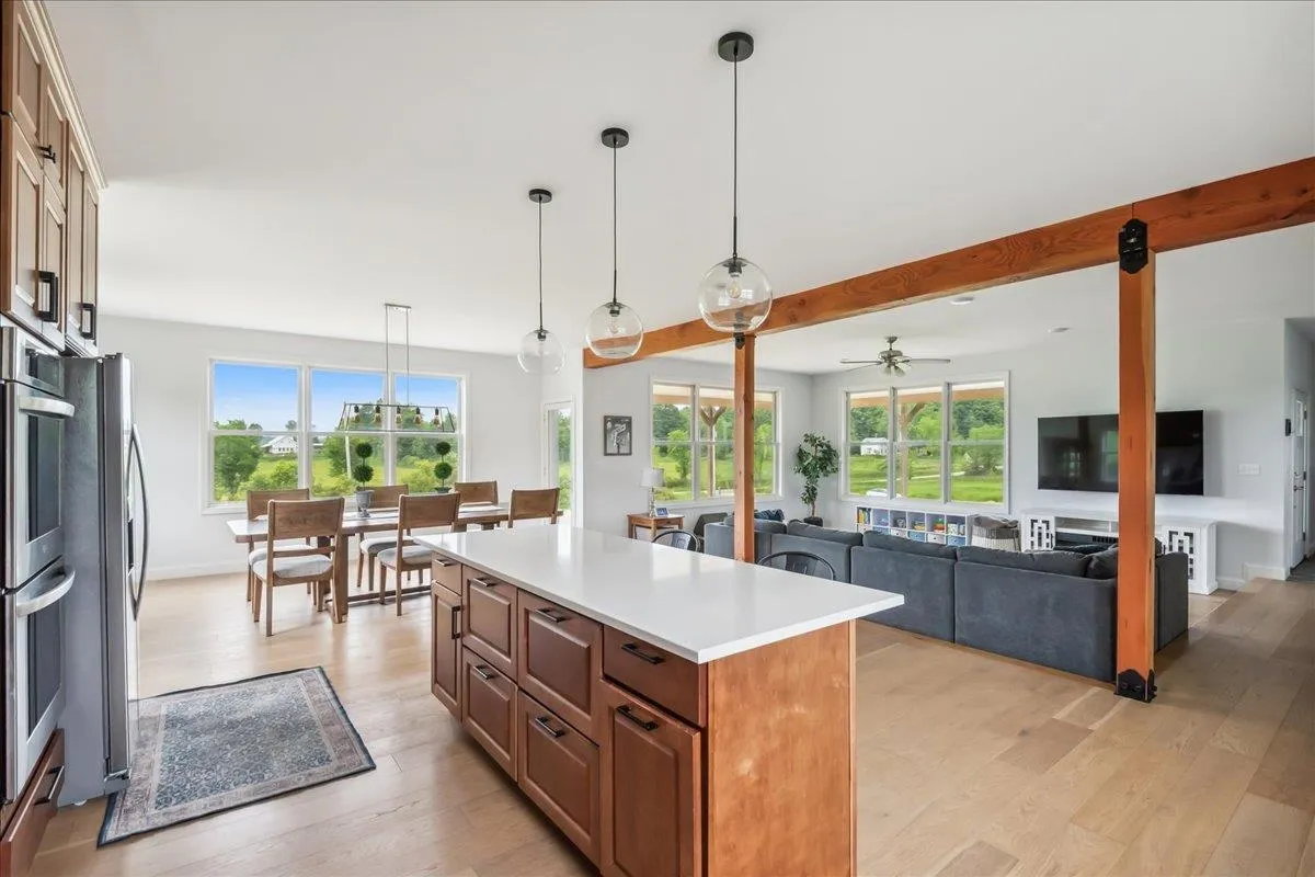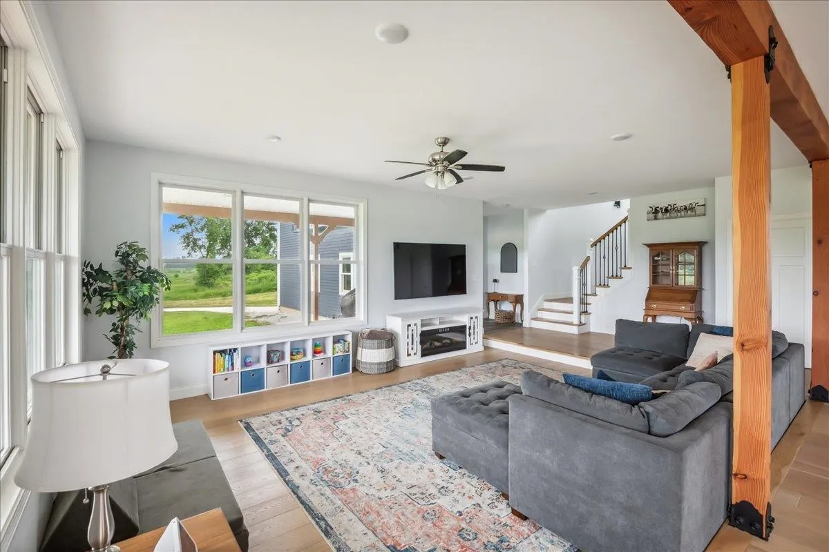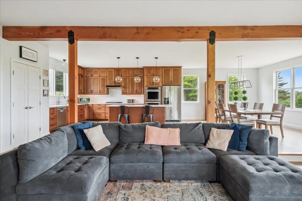+"Remarks-Public": "Set on 11.1 picturesque acres, this inviting 3-bedroom, 2-bath home offers the perfect blend of space, comfort, and Vermont charm. This property boasts mature fruit trees, fruit bushes, and endless perennials throughout the property. Along with the endless gardens you will also find a custom built chicken coop and a flock of layers that lay 1-2 dozens fresh eggs a day! Inside, the home features a warm and functional layout designed for both daily life and gathering. The kitchen is well-appointed with ample cabinetry, quality finishes, and a layout that flows seamlessly into the dining and living areas. A gas stove creates a cozy focal point, adding both character and efficiency during the colder months. The dining area is filled with natural light and overlooks the surrounding landscape, creating a welcoming setting for meals and entertaining. A standout feature is the vaulted living space with exposed wood beams, offering a bright, airy feel and a connection to the natural surroundings. Upstairs and throughout, the bedrooms are comfortably sized with good natural light, while two full baths offer convenience and functionality. The oversized attached, and heated, three and a half car garage is a major bonus, offering exceptional space for vehicles, storage, equipment, or workshop use—ideal for those needing room for hobbies, tools, or recreational gear. The property itself is equally compelling. A screened-in porch provides the perfect spot to enjoy warm evenings, while the expansive acreage offers endless opportunities for gardening, recreation, or simply enjoying the quiet setting. With open yard space, mature trees, and room to grow, this is a property that truly embraces the Vermont lifestyle. With many updates in throughout in the last five years including, but not limited to, a brand new roof/ owned solar panel system, brand new vinyl exterior siding, brand new energy efficiency windows and a brand new septic tank (2025)."