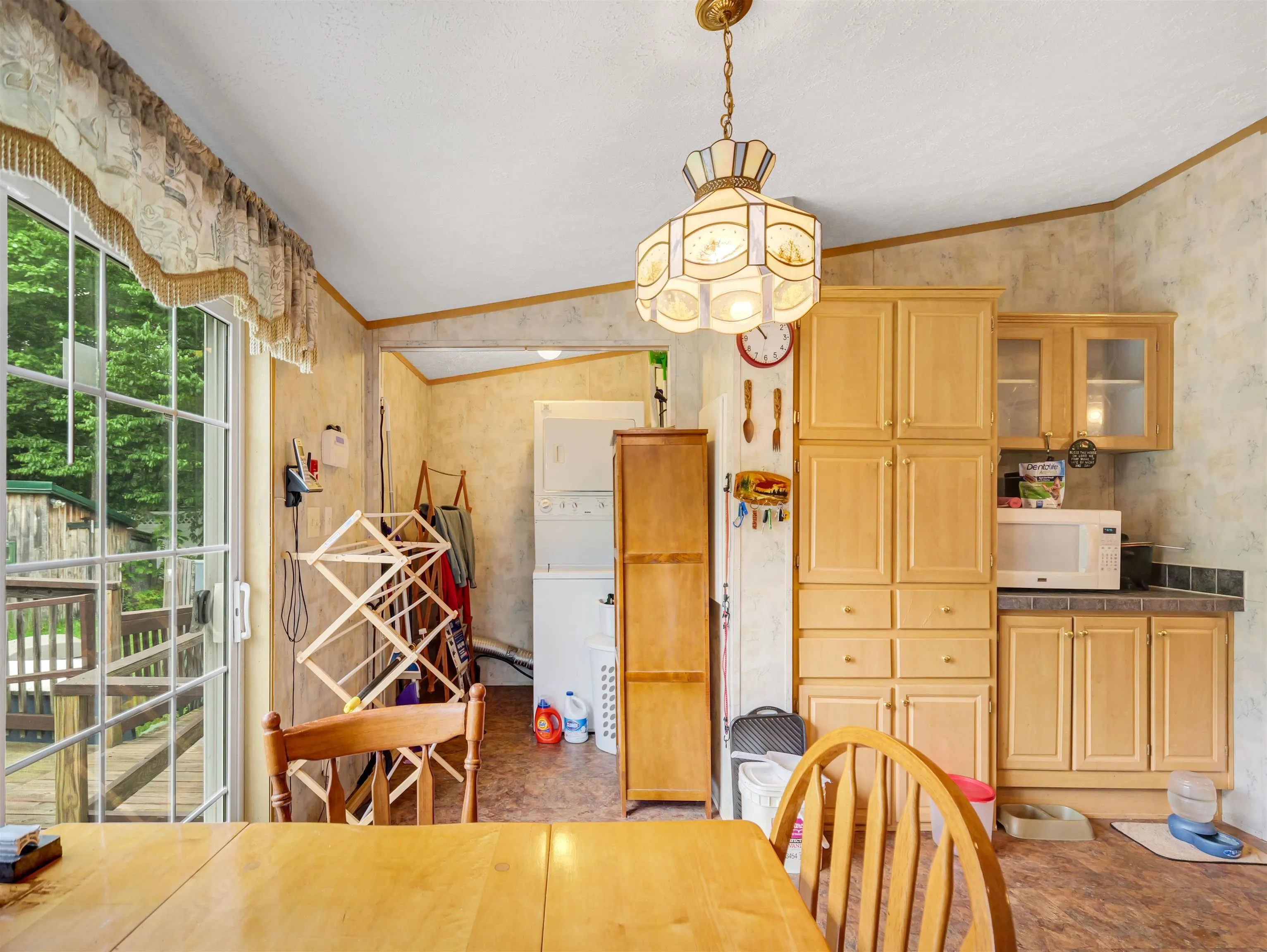 +"PublicRemarks": "Discover this beautifully maintained double-wide home nestled on just over an acre of scenic surroundings. Located on a peaceful private road, this property offers a perfect retreat with many desirable features. Enjoy the tranquil setting with East Creek flowing behind the property, complemented by a large, level front yard ideal for outdoor activities and gardening. The home features a convenient carport for parking and easy access. Enter into an inviting open-concept living room and kitchen, perfect for modern living and entertaining. The layout creates a warm, welcoming atmosphere, enhanced by updated kitchen flooring. Relax or entertain on the front and back decks, ideal for outdoor gatherings or simply soaking in the serene surroundings. The fenced-in area on one side provides a secure space. Additional amenities include a shed for storage, an on-demand generator that has recently been serviced for peace of mind, and a new roof installed five years ago. Inside, the primary bathroom has been updated, adding a modern touch to this already charming home. Don't miss the opportunity to own this move-in-ready property that combines comfort, privacy, and natural beauty. Schedule your viewing today!"