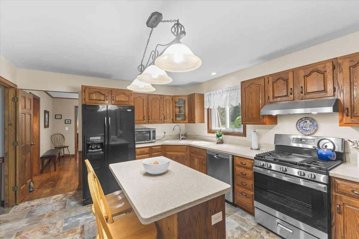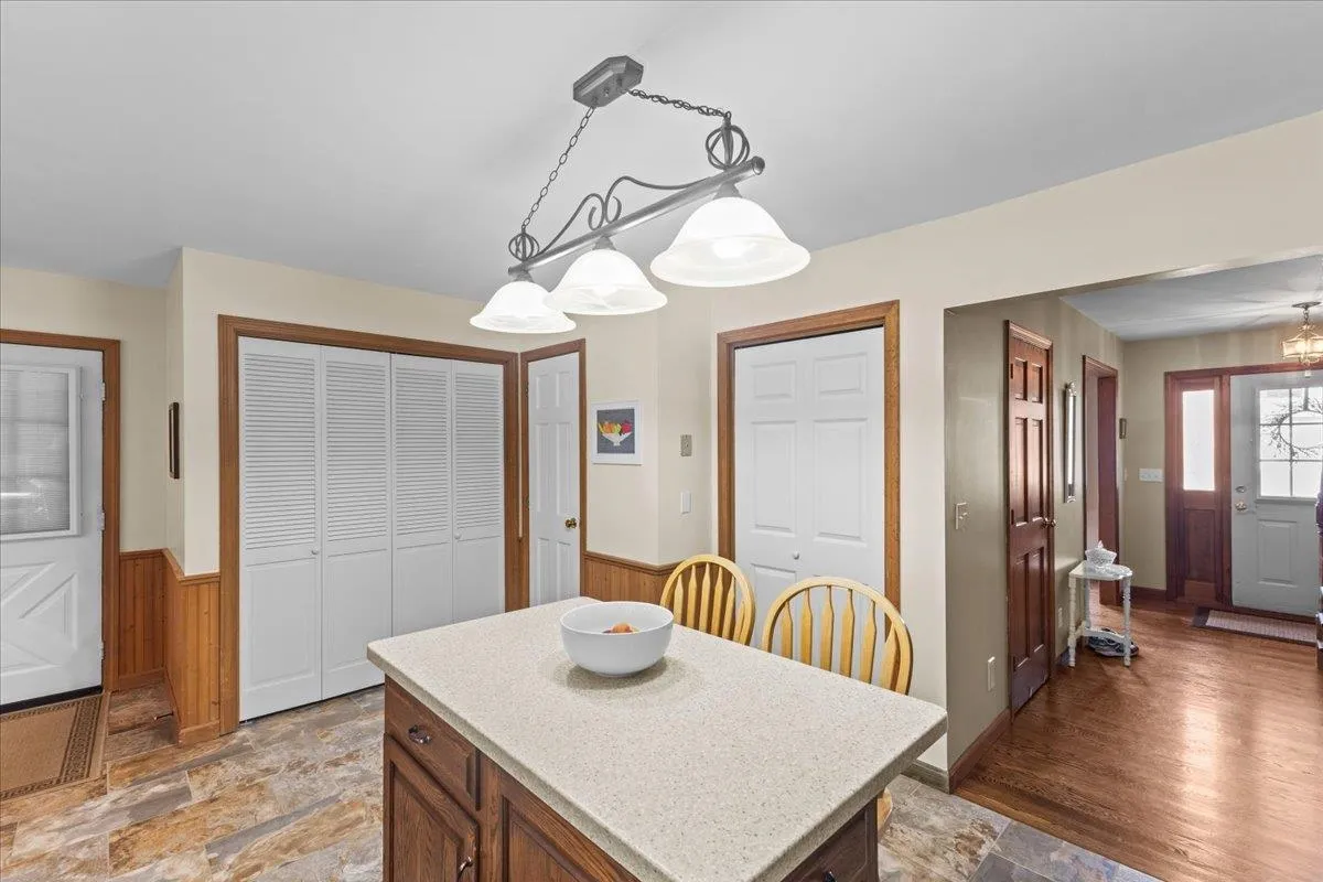+"PublicRemarks": "Welcome to 110 Field Green Drive — a picture-perfect 4-bedroom, 3-bath Cape in one of Colchester’s most coveted neighborhoods! From the moment you arrive, the curb appeal charms you — and it only gets better inside. The standout first-floor primary bedroom is a true retreat, with soaring ceilings, skylights, a huge front window, walk-in closet, and spa-like glass block shower. The main level is warm and inviting, featuring rich cherry oak hardwood floors, a cozy wood-burning fireplace, and a beautifully updated kitchen with a center island, gas range, and stainless appliances. A sun-soaked four-season room opens to a sprawling back deck and lush backyard—perfect for grilling, gathering, or unwinding in total privacy. Upstairs, three spacious bedrooms offer flexibility for guests, office space, or play. The partially finished basement is built for fun with a custom bar, media zone, and plenty of room to spread out. Major updates include a new roof (2023), septic (2019), flooring (2016), siding and skylights (2015), and Lenox AC/furnace (2011). With a 2-car garage, storage shed, and a prime location close to schools, parks, and everything Colchester has to offer—this one checks all the boxes and then some!"