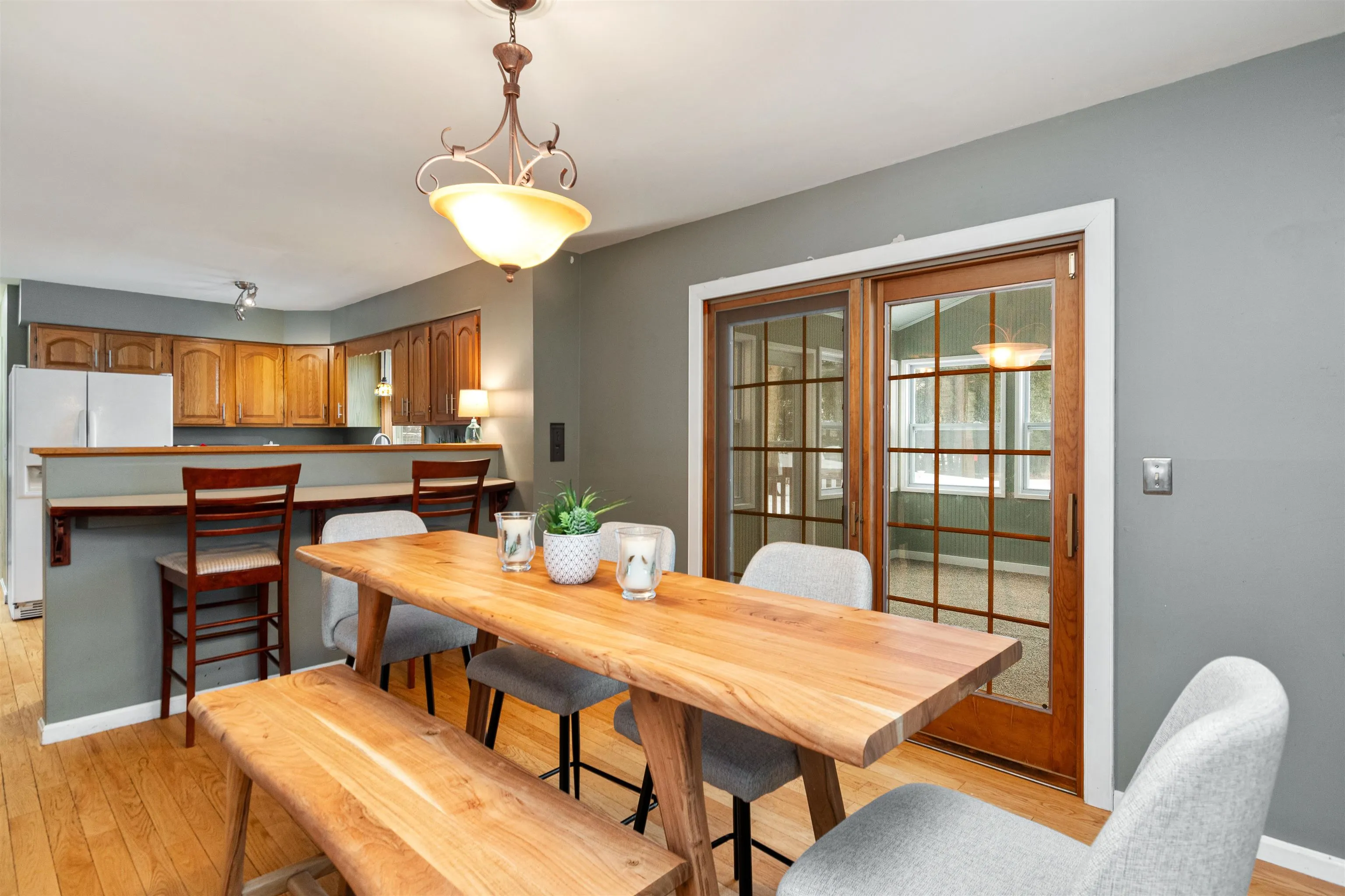 +"PublicRemarks": "Charming 3-bedroom, 2-bathroom Cape in a desirable Colchester neighborhood! Adorable curb appeal and a spacious corner lot welcome you home. Step inside to a cozy living room with hardwood floors and abundant natural light, opening to a versatile dining area—perfect for entertaining. The kitchen offers excellent flow to the living and dining spaces, featuring ample cabinet and countertop space, a pantry, and a window overlooking the backyard. A formal dining room sits just off the kitchen, while a convenient ¾ bath with a beautiful clawfoot tub and a massive tiled mudroom with access to the back deck, driveway, and attached two-car garage add wonderful functionality. Enjoy the stunning three-season enclosed porch with walls of windows- an ideal spot to relax and take in Vermont’s beauty year-round. Upstairs, you’ll find a spacious primary bedroom, two additional bedrooms, and a full bathroom. The partially finished basement provides a great recreation area, plus laundry and storage space. Outside, the fully fenced backyard offers a huge deck, mature trees, and a storage shed. Located in a lovely neighborhood with sidewalks, an association pool, and tennis courts, and just minutes from local favorites like The Village Scoop, The Spanked Puppy, and Burnham Memorial Library. Less than 10 minutes to I-89 for easy commuting- this Colchester gem truly has it all!"