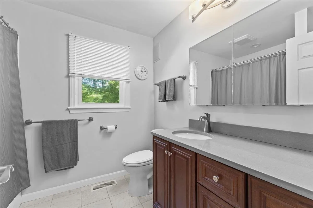 +"PublicRemarks": "This charming 3 bed, 2 bath Sunderland Woods home is situated on a private lot and almost every room of the home has been upgraded making it feel like a much newer home than most in the neighborhood. As you enter the center hall entry the open kitchen and dining area is to your right and the large living room is to your left. The kitchen upgrades include hardwood floors, walk-in pantry, custom cabinets and sleek black appliances including gas range. The kitchen looks out to the stylish dining area with hardwood floors and great natural light from the wall of windows in the room. On the other side of the home is the living room with hardwood floors which leads to the home's stunning three season sun porch. The first floor also has a den with wood stove providing a more intimate setting. The first floor also has the home's laundry and a full bath. The second floor of the home features three spacious bedrooms all with gorgeous hardwood floors. The second floor full bath features an upgraded vanity, flooring and built-in Bluetooth speakers. The lower level has been partially finished making it a great gym or game room and has additional unfinished space for storage. The home's 3-car garage has direct basement accessThe sunroom leads to the deck overlooking the large private backyard. The home's front yard has been beautifully landscaped as well. The home also has central air conditioning. Sunderland Woods features a pool, basketball, pickleball & tennis."