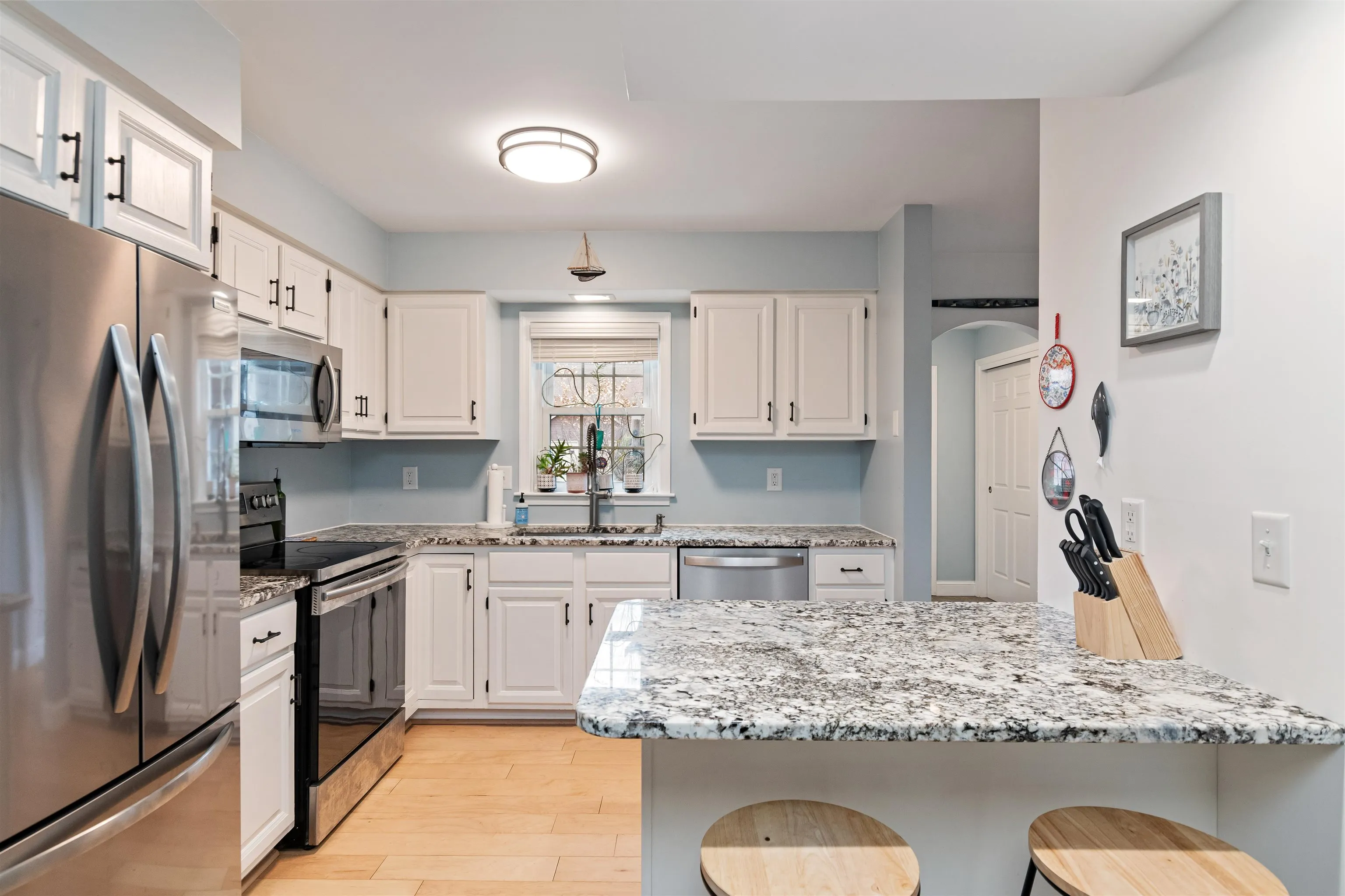 +"PublicRemarks": "Move-in ready 2-bed, 1.5 bath townhome in the heart of Malletts Bay! Offering the perfect blend of modern living and comfort, this spacious home features tasteful finishes throughout. An updated kitchen anchors the open-concept living area, boasting granite countertops, an island, and stainless steel appliances, including a new Frigidaire fridge installed April 2024. The adjacent living/dining room is flooded with natural light, with a sliding glass door leading to your private back patio and shared backyard. The 1st floor also includes a convenient ½ bath, tiled mudroom, and direct access to the attached 1-car garage with overhead storage. Engineered hardwood floors run throughout this level, creating a cohesive and elegant feel. Upstairs, find 2 bright bedrooms with ample closet space and a renovated full bath that features heated tile floors and a granite-topped vanity. Unfinished basement includes plenty of room for storage as well as a laundry area. Enjoy being part of an HOA that handles plowing, landscaping, trash/recycling, and has a welcoming pet policy. Located in a picturesque neighborhood, this home is just moments from Bayside Park, Airport Park, Colchester Causeway, and Thayer Beach for outdoor enjoyment, with downtown Burlington only 12 minutes away. Nearby local favorites include Rozzi's Tavern and Broadacres Creamee Stand. Don't miss the opportunity to own this Colchester oasis!"