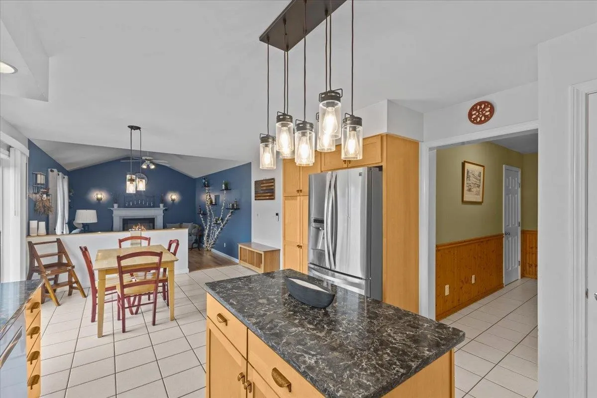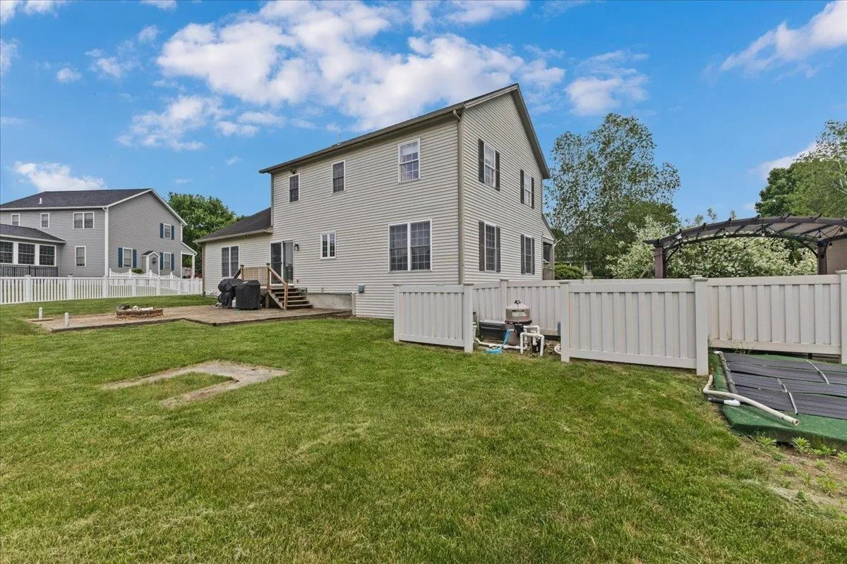+"PublicRemarks": "Welcome to Country Meadows Colchester! This modern haven with thoughtful design and bright, open living spaces. The chef’s kitchen, featuring a generous island, stainless steel appliances featuring gas range, and gorgeous quartz countertops, seamlessly flows into an eat in area bathed in natural light from the sliding glass door. Vaulted ceilings, hardwood floors, and a cozy gas fireplace define the expansive living room, while a formal dining room and quiet den provide ideal settings for entertaining or unwinding. A convenient mudroom with laundry and powder room on the main level adds everyday functionality. Upstairs, the primary suite offers bathroom and a grand walk in closet, complemented by two additional bedrooms and a shared full bath. The fully finished lower level extends your living space further—with options for a media area, home gym, or office—while abundant storage and direct access to the two car garage ensure practicality. Outside, discover an inviting patio with firepit, a spacious yard with shed, and a private, solar heated inground pool—alongside a lawn irrigation system that keeps the grounds lush. With central air conditioning throughout, this serene yet sophisticated residence creates an ideal retreat for both everyday living and memorable gatherings. Schedule your private tour today."