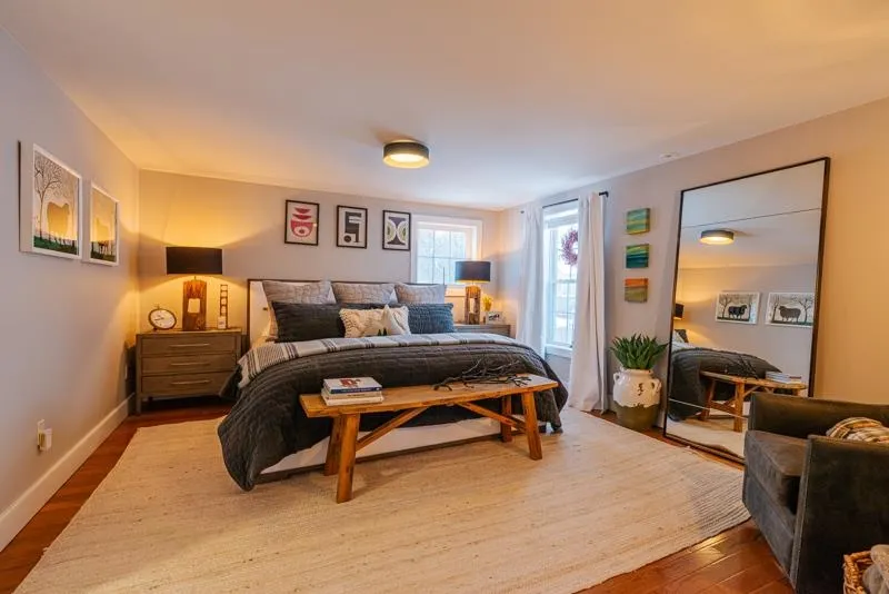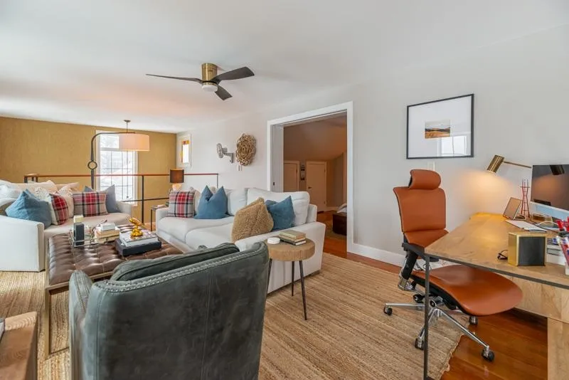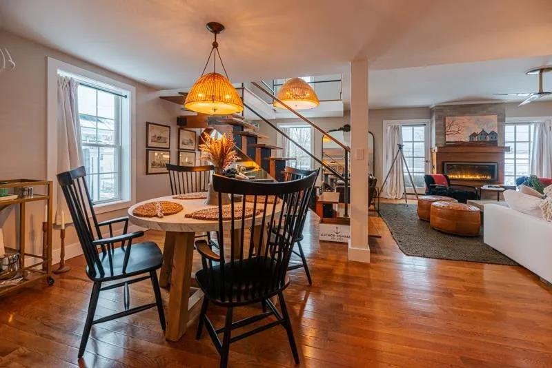 +"PublicRemarks": "Don’t miss this beautifully updated home where comfort meets modern style! A welcoming sun porch greets you at the entrance, perfect for kicking off your shoes and easing into the inviting interior. Inside, the bright living room features a striking wooden slat accent wall and a cozy, efficient wood-burning stove, creating a warm and stylish gathering space. Two bedrooms are conveniently located off the hallway just beyond the living room. The updated kitchen is both functional and on-trend, showcasing butcher block countertops, open shelving, and sleek stainless steel appliances. An eat-in dining area adds charm and practicality, with direct access to the front porch for easy indoor-outdoor living. The main level also includes a full bathroom thoughtfully equipped with a stackable washer and dryer. A sunny den or home office provides additional flexible space and leads directly to the back deck and fully fenced yard that’s ideal for relaxing or entertaining. Upstairs, the spacious primary bedroom offers a peaceful retreat, complete with two walk-in closets just outside the door, additional storage, and plenty of room for a king-sized bed and cozy sitting area. Enjoy evenings around the backyard firepit, or take advantage of nearby right-of-ways that provide easy bike access to Saxon Hill Trails. Ideally located in Essex, this home is close to schools, recreation, Sand Hill Park and town pool, as well as shopping, dining, and more!"