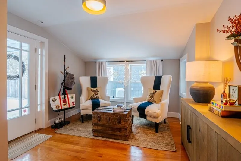 +"Remarks-Public": "Don’t miss this beautifully updated home where comfort meets modern style! A welcoming sun porch greets you at the entrance, perfect for kicking off your shoes and easing into the inviting interior. Inside, the bright living room features a striking wooden slat accent wall and a cozy, efficient wood-burning stove, creating a warm and stylish gathering space. Two bedrooms are conveniently located off the hallway just beyond the living room. The updated kitchen is both functional and on-trend, showcasing butcher block countertops, open shelving, and sleek stainless steel appliances. An eat-in dining area adds charm and practicality, with direct access to the front porch for easy indoor-outdoor living. The main level also includes a full bathroom thoughtfully equipped with a stackable washer and dryer. A sunny den or home office provides additional flexible space and leads directly to the back deck and fully fenced yard that’s ideal for relaxing or entertaining. Upstairs, the spacious primary bedroom offers a peaceful retreat, complete with two walk-in closets just outside the door, additional storage, and plenty of room for a king-sized bed and cozy sitting area. Enjoy evenings around the backyard firepit, or take advantage of nearby right-of-ways that provide easy bike access to Saxon Hill Trails. Ideally located in Essex, this home is close to schools, recreation, Sand Hill Park and town pool, as well as shopping, dining, and more!"