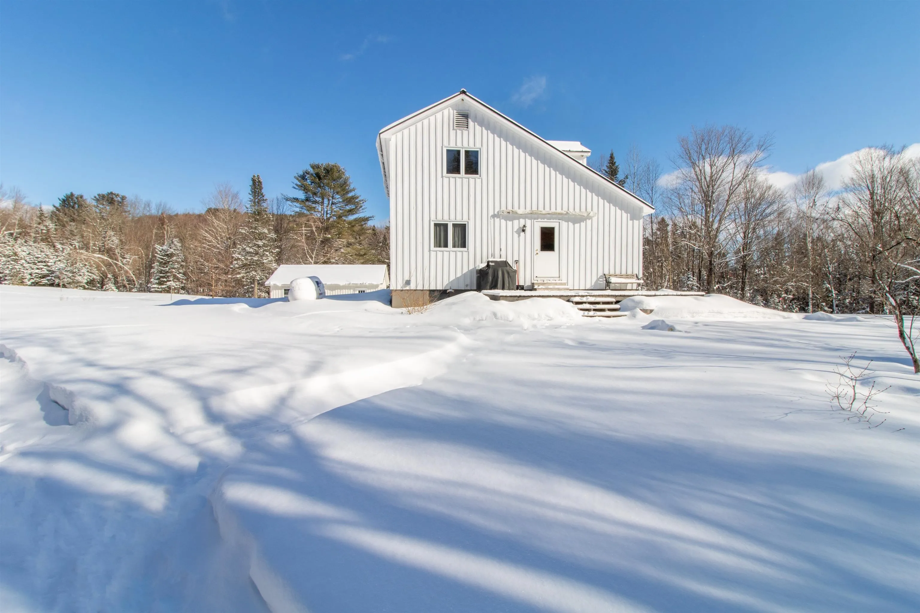 +"PublicRemarks": "This well maintained three bedroom home, nestled on 28.6 acres of level lot and forest, sits just outside of Danville Village. The south facing home fills the large living and dining room with warmth and light. The open layout includes a kitchen with bar seating, ample storage and the sunroom off the kitchen provides a cozy spot to enjoy your morning coffee. The upstairs includes two large bedrooms, with an adjoining Jack and Jill bath. The third bedroom, located on the first floor, includes a nearby 3/4 bath and the partially finished basement, with a Vermont Castings wood stove, provides additional space to relax. Recent updates include a new high efficiency pellet boiler, and a spacious two car detached garage with room for your cars and storage. Relax outside on the back porch, out in the open yard, or walk along the many paths and trails throughout the property. Easy access to Route 2, Interstates 91 and 93. Don't miss this Danville Gem!"