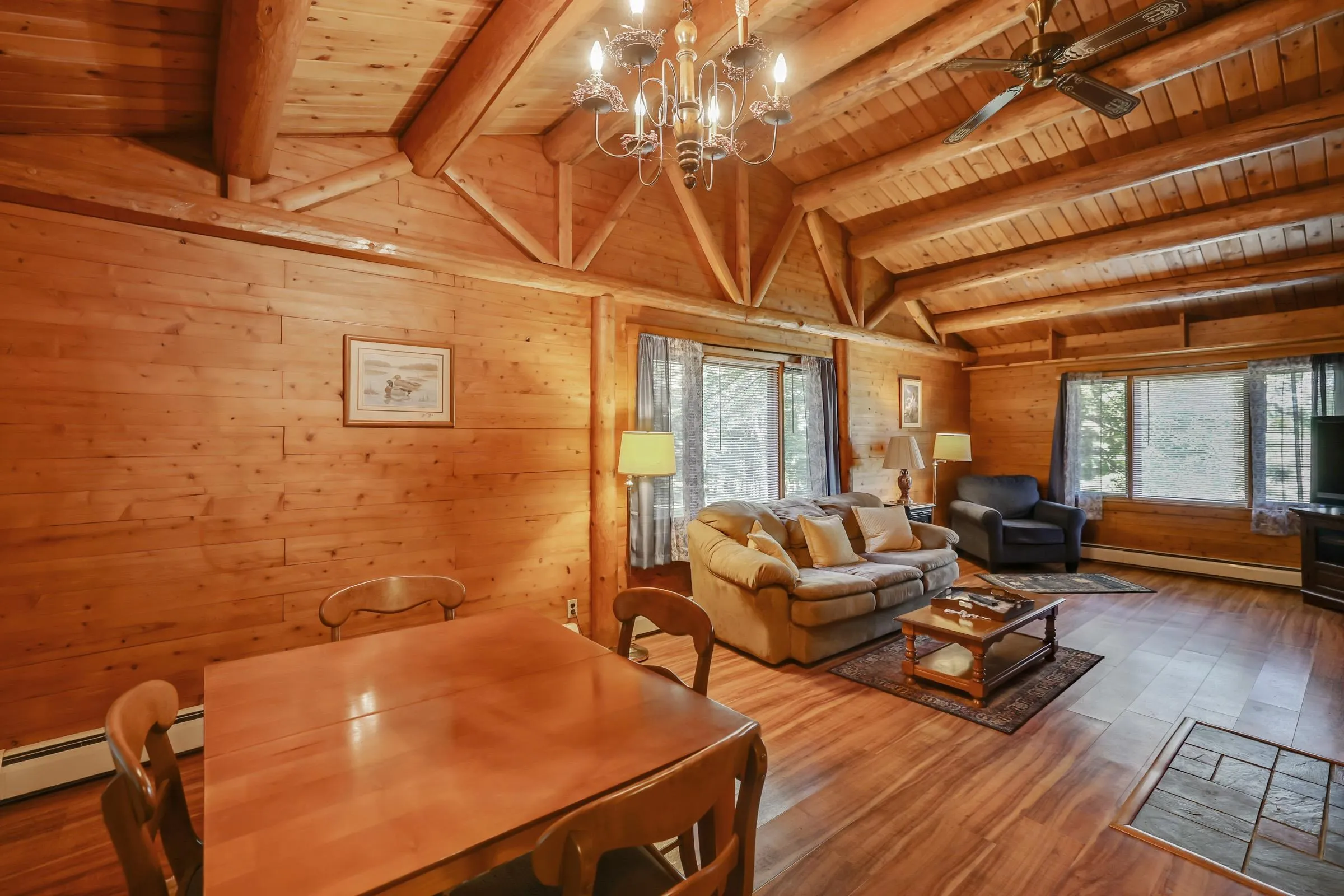 +"PublicRemarks": "Nestled in a peaceful and private setting, this inviting 3 bedroom, 1.5 bath home offers the ideal blend of rustic charm and everyday comfort. Set on 2.6 beautifully landscaped acres in a welcoming neighborhood, this property is perfect as a year-round residence or a tranquil getaway. Step inside to discover soaring cathedral ceilings, a warm and welcoming interior, and a finished basement that’s perfect for entertaining or relaxing. Enjoy seasonal views of the nearby lake while mature hardwoods and lush lawns create a truly idyllic backdrop. Built with quality in mind, the home features a durable standing seam metal roof, a spacious two-car garage, and an attached workshop ideal for hobbies or additional storage. Located close to premier skiing, hiking and biking trails, and multiple lakes. Don't miss the opportunity to own this peaceful retreat where privacy, charm, and convenience come together seamlessly."