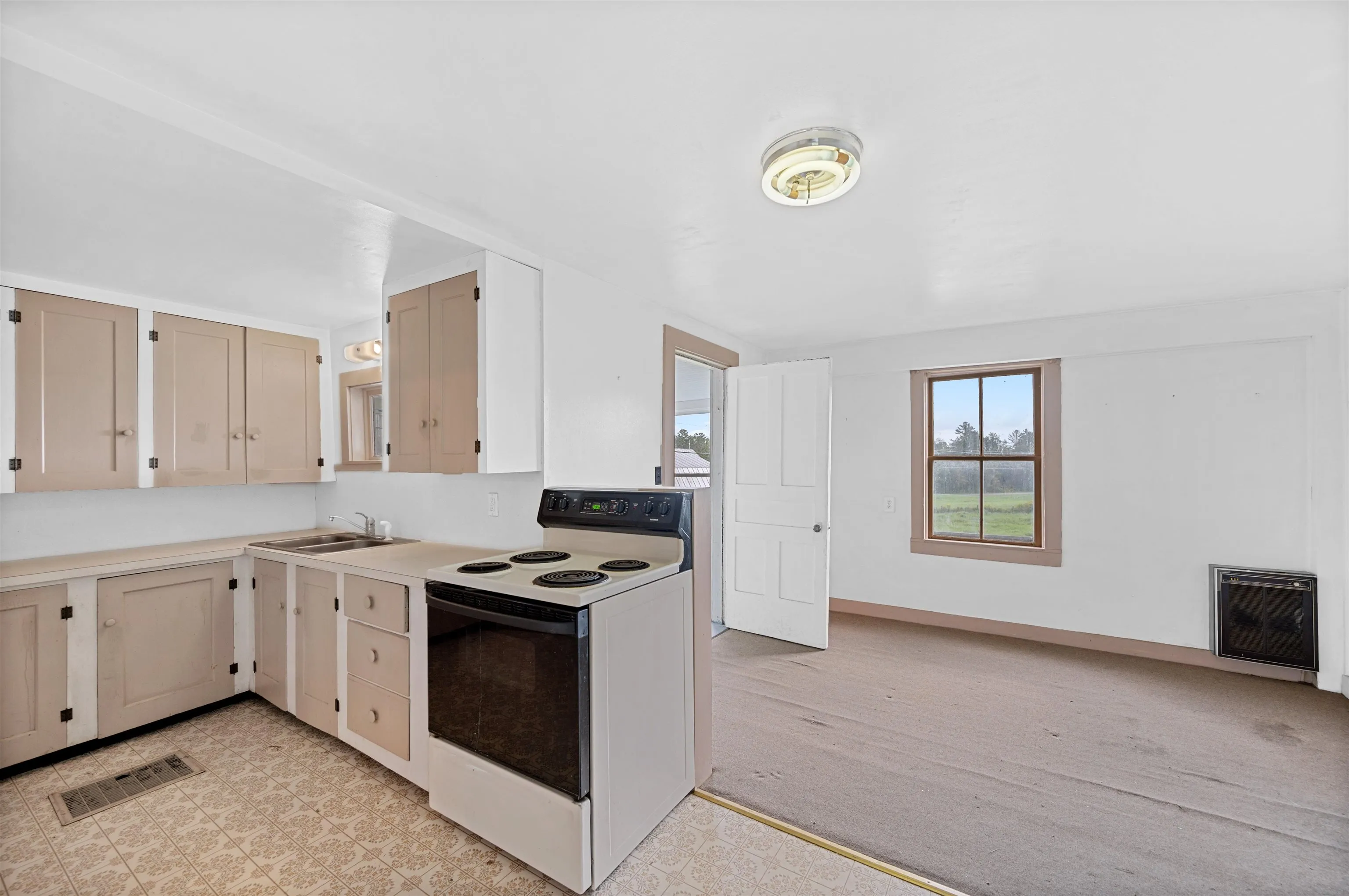 +"Remarks-Public": "Here's a well cared for old bungalow sytle farmhouse on a roomy 3.1 acre lot in a great rural location that is an easy commute to St. Johnsbury or Littleton. The eat in kitchen features modern wood cabinets and a vinyl floor. The range and refrigerator are included. The spacious dining room and lving room offer plenty of living space as well room to entertain guests. The large bedroom offers the laundry area as well as closet space. There is a walk up attic for extra storage space. The full basement has plenty of head room and most of the original stone foundation has been redone with poured concrete. There are an oil forced hot air furnace as well as an electric water heater. The oversized 2 car garage is accessed by a covered breezeway. An open stairway leads to the 2nd floor with lots of storage space. You have a drilled well and a septic system. The open yard offers plenty or room for a garden, a chicken coop, yard games, and more. Call for your personal viewing. Delayed showings start on Friday, April 24."