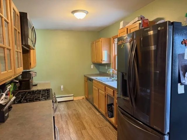 +"Remarks-Public": "Welcome to this brand new 3-bedroom, 3-bathroom townhome featuring an oversized 2-car garage and stylish finishes throughout. The ground level offers a direct-entry garage, ample storage, and a large mudroom area—perfect for all Vermont seasons. The main level is ideal for easy living and entertaining, featuring a bright, open living space. The main floor also includes a half bath and laundry hookups. Upstairs, you’ll find three nicely sized bedrooms and two full bathrooms. The primary suite includes an ensuite bathroom with double sinks. Durable vinyl plank flooring runs throughout the home, offering a modern look with easy maintenance and long-lasting performance. Thoughtfully designed with comfort in mind and ideally located close to all amenities. Come take a look for yourself and make this beautiful home yours. The listing agent is related to the seller."