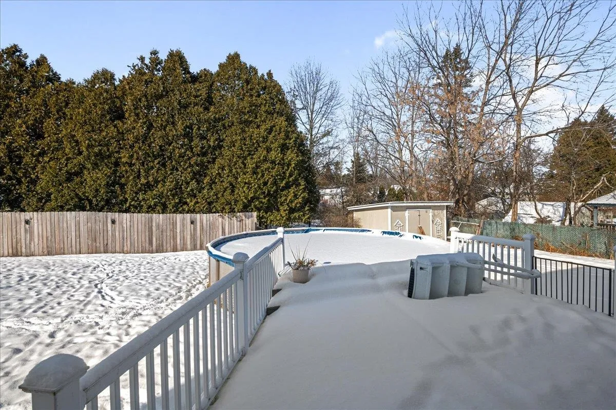 +"Remarks - Public": "Beautifully renovated cape-style home, nestled on a peaceful dead-end street! Featuring 3 bedrooms and a charming layout, this home has been thoughtfully updated for modern living. The bright and airy kitchen features white shaker cabinetry, sleek granite countertops and stainless steel appliances. A center island with counter seating offers the perfect spot for casual meals on busy days. The kitchen has exterior access to your sunny back deck and the above-ground pool, perfect for summertime grilling and entertaining. The above-ground pool liner was recently replaced for added peace of mind. Just off the kitchen, you'll find a separate dining room with sunny front-facing windows. The inviting living room boasts built-in cabinetry flanking the fireplace, creating a warm and welcoming space for relaxation. A playroom and a half bathroom round out the main level, offering flexibility and convenience. Upstairs, you'll find 3 comfortable bedrooms and a full bathroom. The basement provides ample storage space, along with laundry. Outside, enjoy your good-sized fenced-in yard, complete with perennial gardens, two decks for outdoor enjoyment, and a shed for extra storage. Great location, close to schools, shopping, dining, recreation and more!"