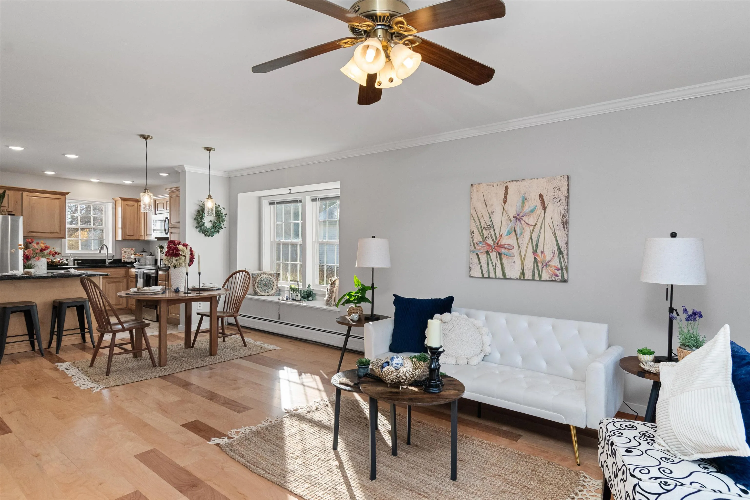 +"PublicRemarks": "Welcome to this beautifully remodeled two-level townhome, ideally situated in the sought-after Saybrook area, nestled in a tranquil setting near the woods. The owner's attention to detail is evident in the updated kitchen, featuring modern cabinetry, granite countertops, and stainless steel appliances. Enjoy your morning coffee at the breakfast bar, or opt for a meal at the dining table by the garden window. The dining room seamlessly flows into a spacious living room that overlooks the patio, allowing you to appreciate the surrounding nature. As you ascend to the upper level, you’ll notice the elegant hardwood floors, generously sized bedrooms with ample closet space, and a remodeled bathroom equipped with a luxurious Jacuzzi tub and dual rain shower features, complemented by a tiled floor. Step outside to relish the well-established gardens, complete with rhubarb plants, or take a leisurely stroll to the vibrant Essex experience, where you can indulge in a variety of exceptional restaurants and shopping options. In the summer, enjoy the convenience of walking to the nearby executive golf course. This is truly a special place—don't miss out on this opportunity!"