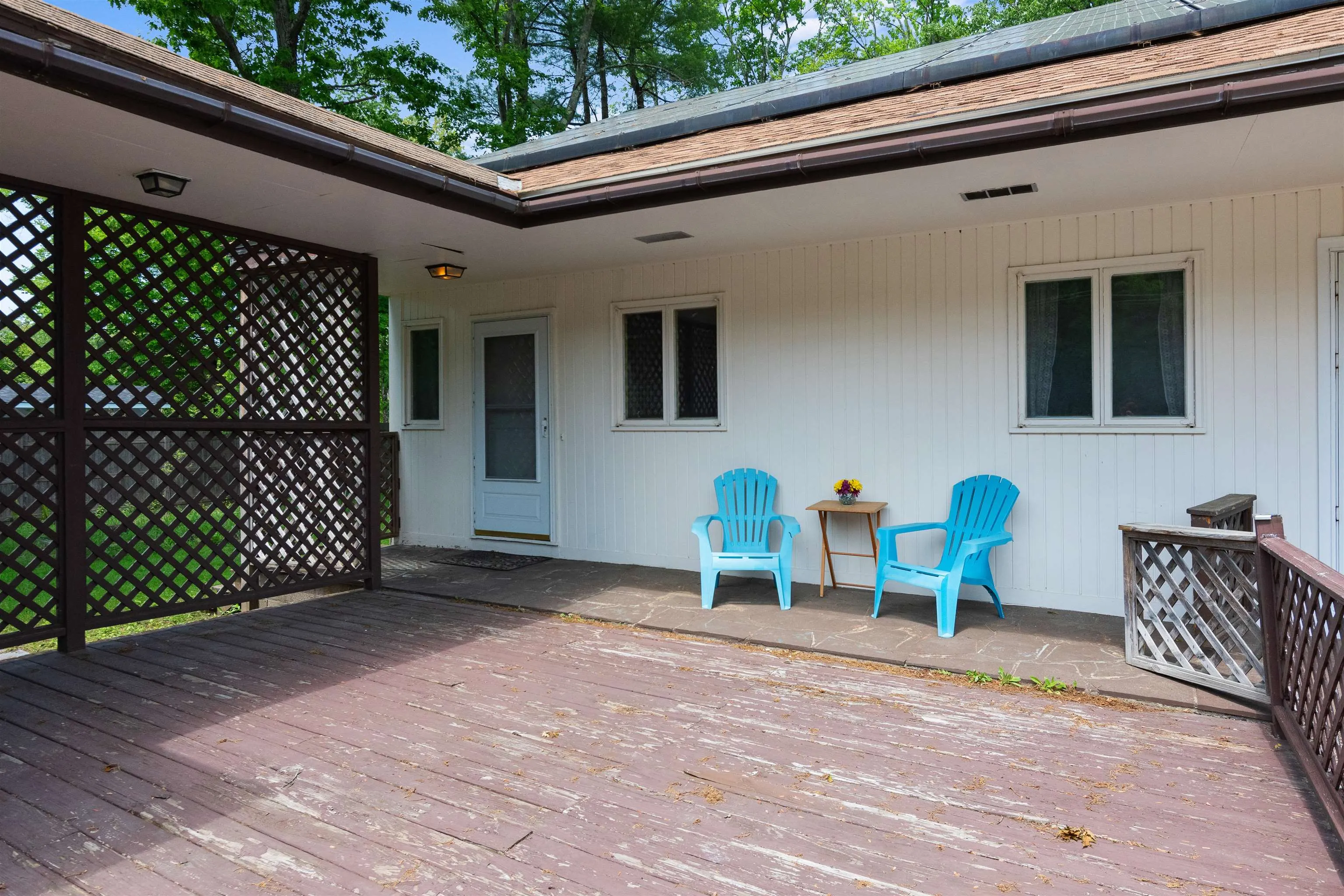 +"PublicRemarks": "Spacious 3 bed, 2 bath Essex home with loads of potential in a prime location! Step into the open dining and kitchen area, offering generous cabinet and counter space, plus charming Dutch doors leading to a sunny front deck. Beyond the kitchen, a massive living room boasts floor-to-ceiling windows, a brick fireplace, and access to the private backyard and patio through another Dutch door. Beautiful hardwood floors lead to the primary suite with a ¾ bath and views of Mt. Mansfield. Two additional bedrooms with hardwood floors and a full bathroom complete the main level. Upstairs, discover two bonus rooms and an unfinished space already plumbed for a bathroom, offering endless potential for another bedroom, future ADU, or another vision you may have (pending town approval). The basement features a large finished rec room, another finished bonus room, and two large storage areas with shelving and laundry. Outside, a detached oversized two-car garage provides plenty of space extra for vehicles and equipment, while the private backyard is perfect for relaxing with a flat lawn and natural shade. Enjoy the convenience of being just minutes from Essex amenities and close to Jericho, Underhill, and area ski resorts. Recent improvements include brand new stainless steel appliances, fresh paint and new vinyl flooring in the dining and living rooms. Not to mention solar panels help reduce utility costs!"