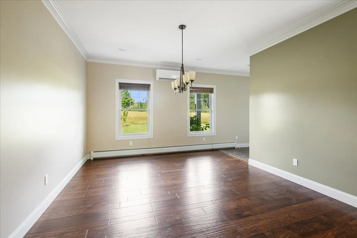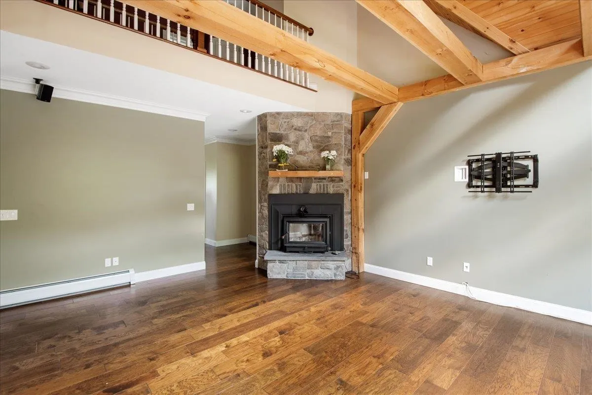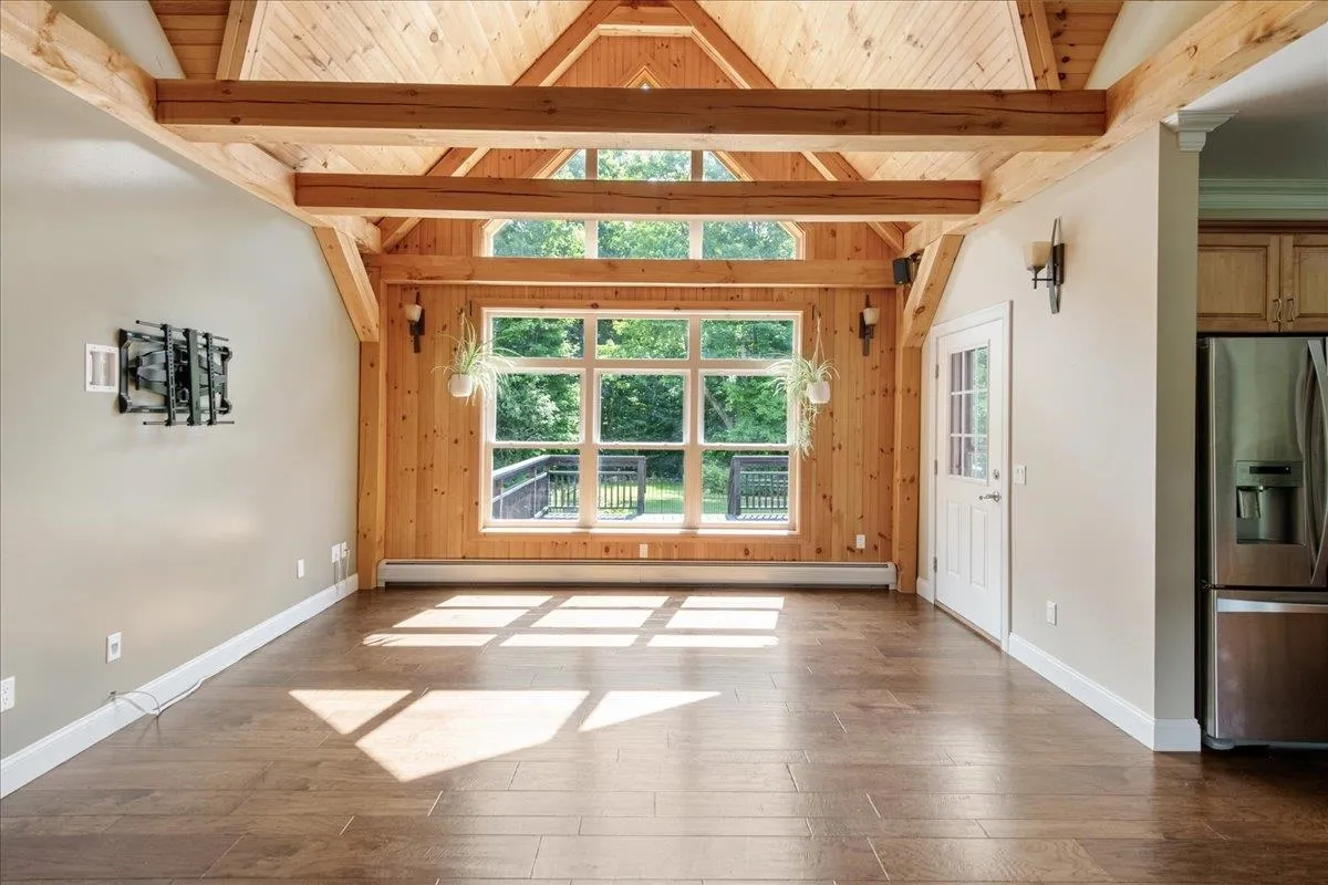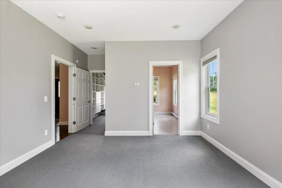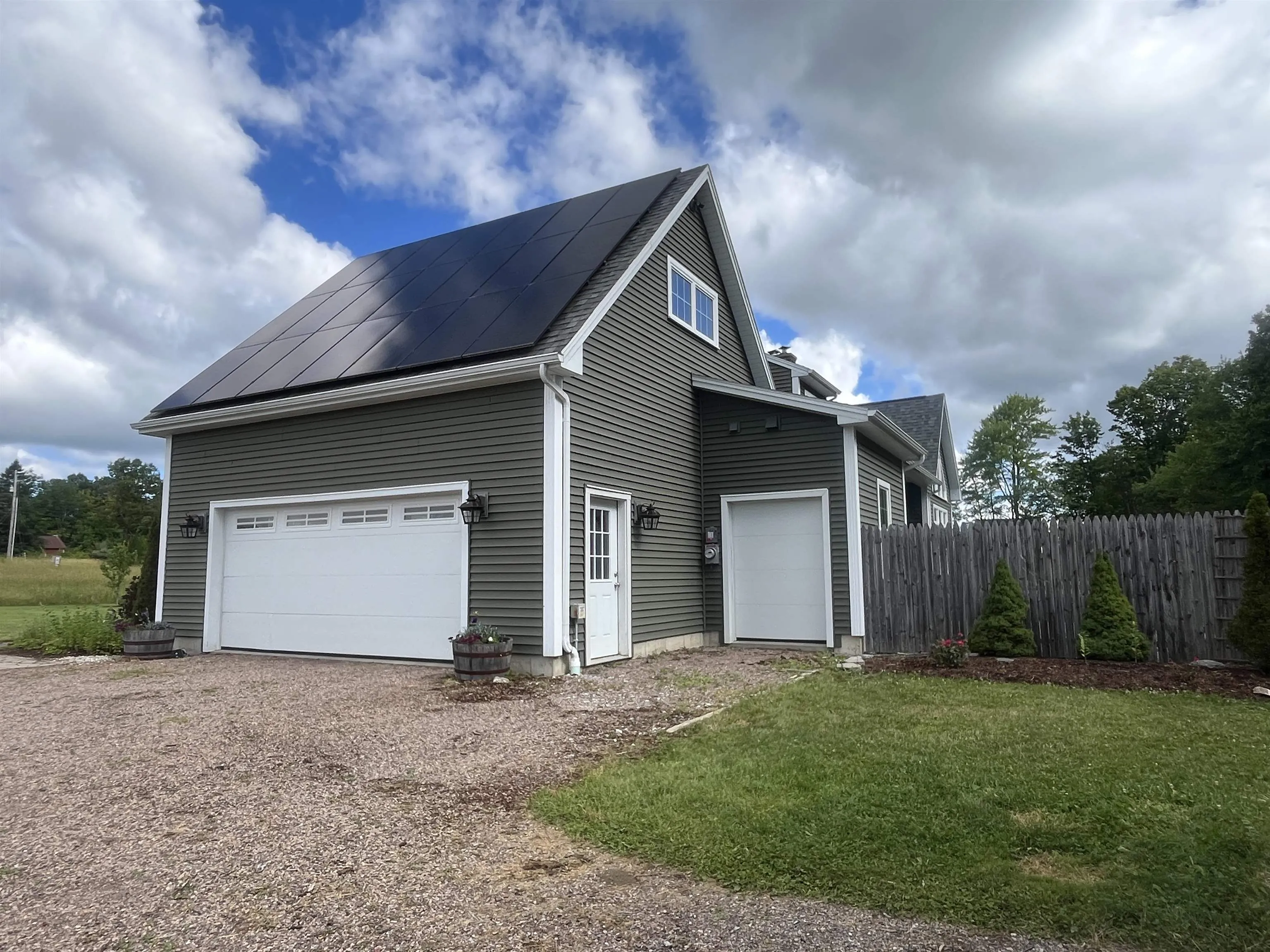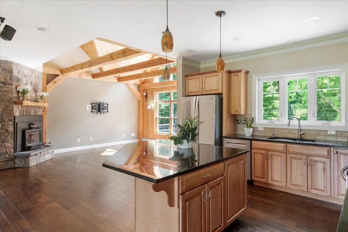 +"PublicRemarks": "Custom built 3 bedroom 3 bath contemporary cape on 5.64 acres. A rare opportunity to find both high quality custom construction and acreage in this sought after Essex location. This home has a smart and efficient open layout and a 1st floor primary suite with a walk in\u{A0}shower. The kitchen boasts custom cabinetry, a large center island and granite countertops. Stainless appliances include a Bosch 39 decibel dishwasher 2024, induction range 2022, and microwave 2023.\u{A0} Great room has a soaring\u{A0}vaulted pine ceiling and wooden beams, and a slate and fieldstone fireplace with a wood stove insert.\u{A0}The first floor kitchen, dining\u{A0}and foyer have 9 foot ceilings and crown molding.\u{A0}Hardwood floors in the great room, kitchen and dining. Tile in bathrooms, foyer and mudroom. The need for storage and efficiency went into the thoughtful design of the mudroom and utility areas of this home. There is a walk-in pantry, builtin shelves in the mudroom and a walk-in closet with floor to ceiling shelving. The 2nd floor offers 2 spacious bedrooms, a full bath and a bonus room.\u{A0}Recent updates include 2 mini splits, 30 solar panels, 2 Tesla Power walls,\u{A0}water softener and a\u{A0}car charger outlet in the garage. 14x22 workshop/shed 2023 insulated and partially sheetrocked. 1260 sqft of living space below grade.\u{A0}2 car garage has a 3rd utility bay 8x14. 325 sq ft of expansion potential over the garage.\u{A0}Large deck and slate patio overlooks the private backyard."