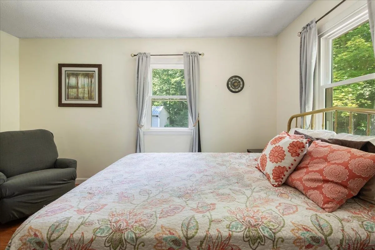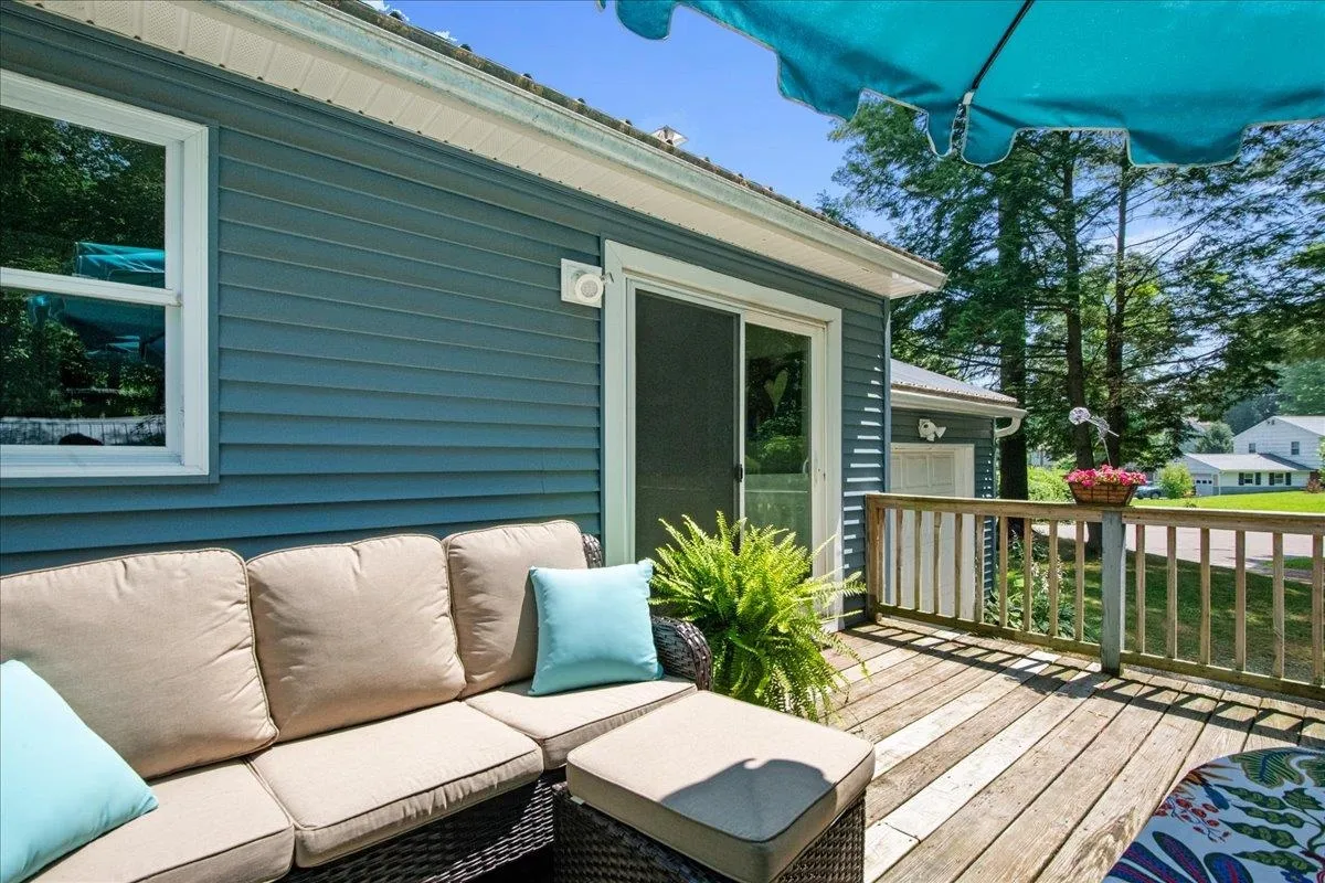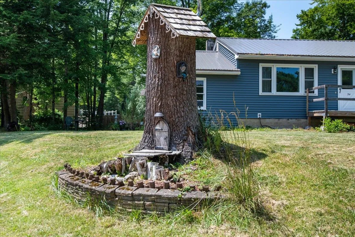 +"PublicRemarks": "Welcome to this cheerful Essex charmer, tucked on a spacious corner lot in one of the area’s most sought-after neighborhoods! With mature shade trees, blooming perennials, and even a whimsical outdoor gnome home, this property offers just the right blend of comfort, convenience and magic. Some updates include a brand new heat system, new quartz countertops, a newer standing seam metal roof and vinyl siding (2020), plus updated doors and windows, making for lovely, low-maintenance efficient living. Kick back on the sunny front deck or host summer evenings on the private back deck—there’s space for it all! Inside, the main level delights with a generous primary bedroom (formerly two rooms and easily converted back if desired) and a second roomy bedroom. Downstairs, the partially finished basement offers all kinds of possibility, including a large rec room, a generous space perfect for an office or den, and a separate laundry/utility area. An oversized shed adds tons of storage, while the attached garage and spacious driveway means plenty of parking for guests or room for hobbies. With fantastic neighborhood walking trails just steps away and top-rated schools, shops, and local favorites so close by, this enchanting home is ready to welcome you!"