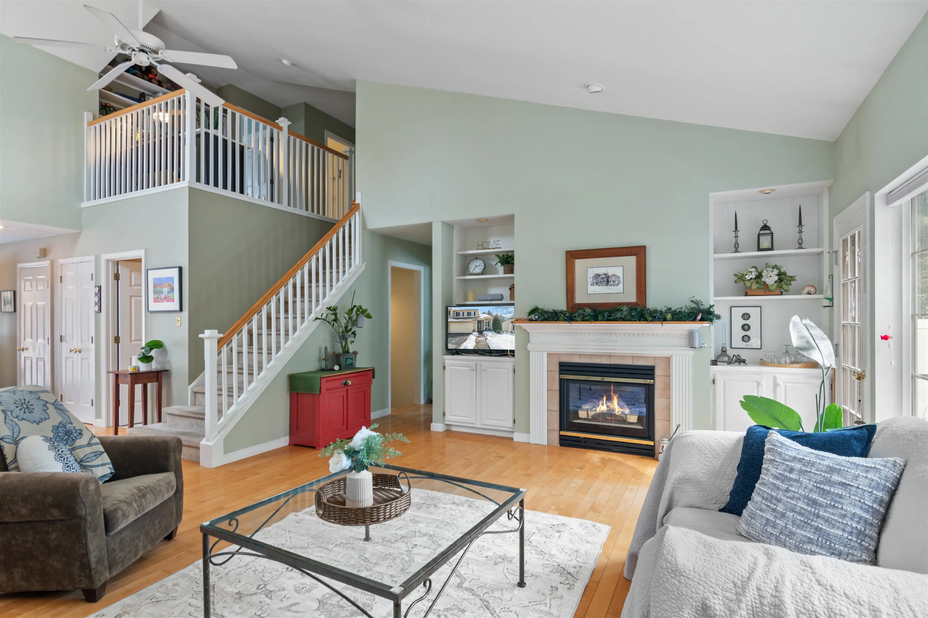 +"Features - Interior": "Blinds,Cathedral Ceiling,Ceiling Fan,Dining Area,Fireplace - Gas,Living/Dining,Primary BR w/ BA,Natural Light,Storage - Indoor,Walk-in Closet,Laundry - 1st Floor"