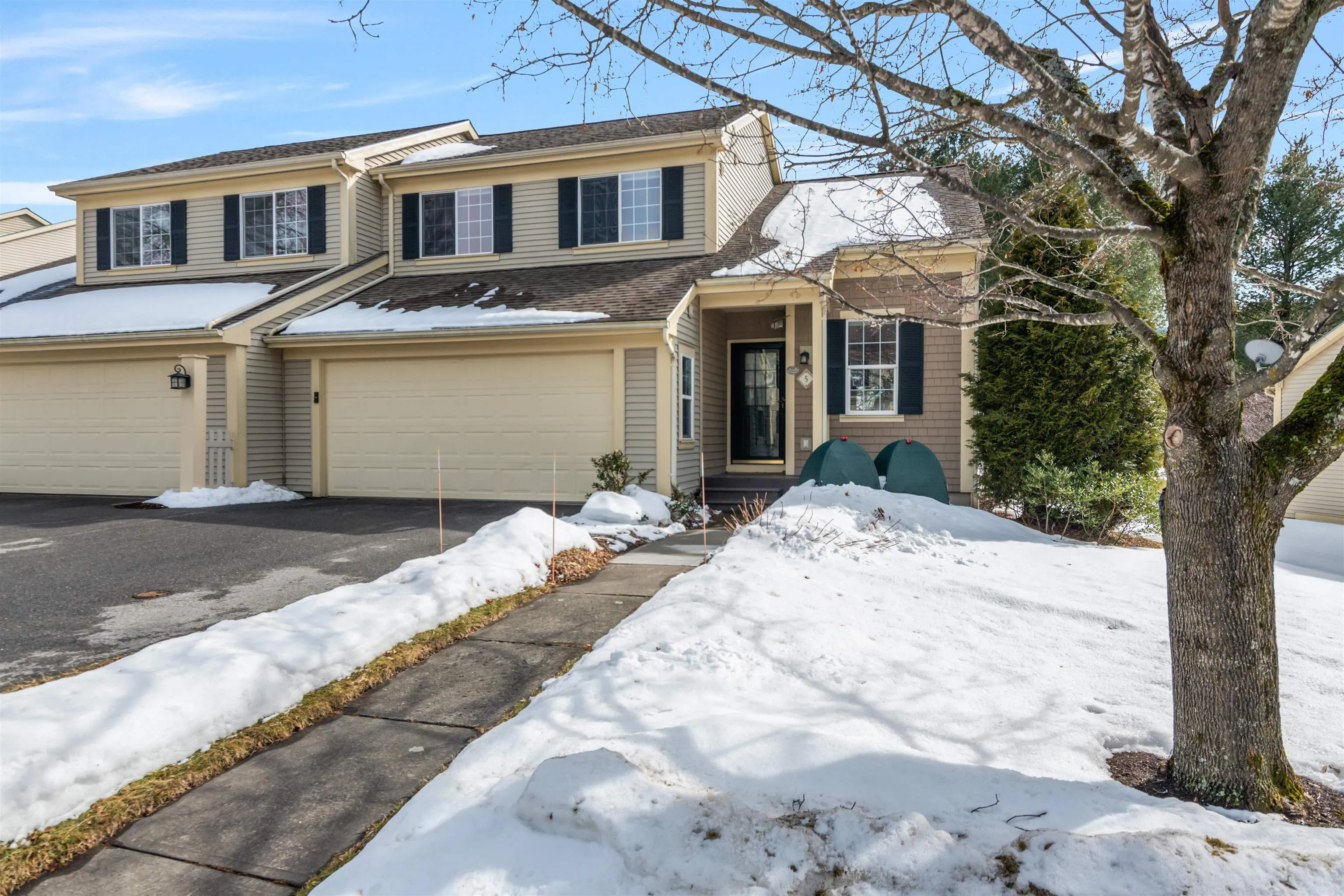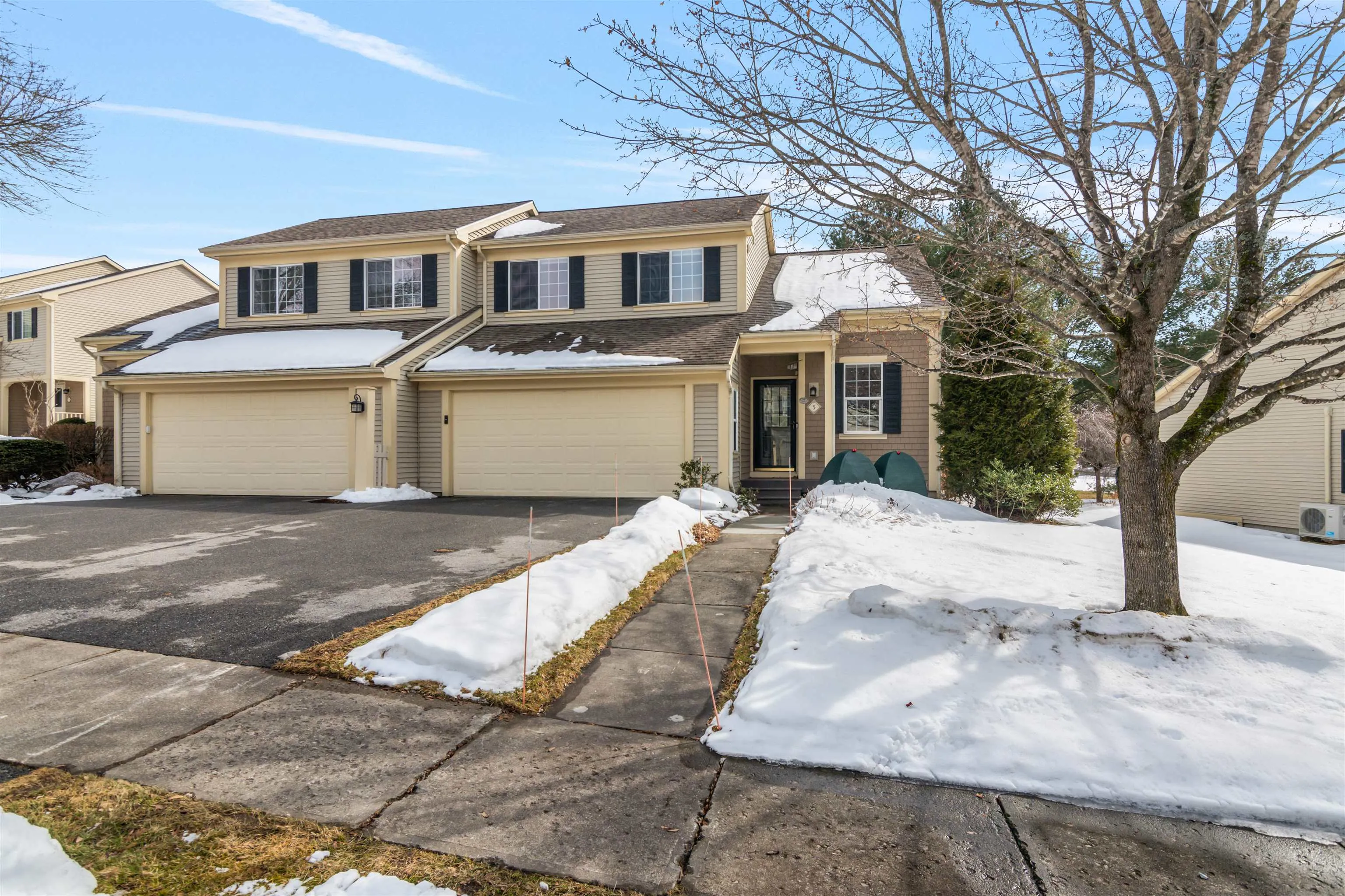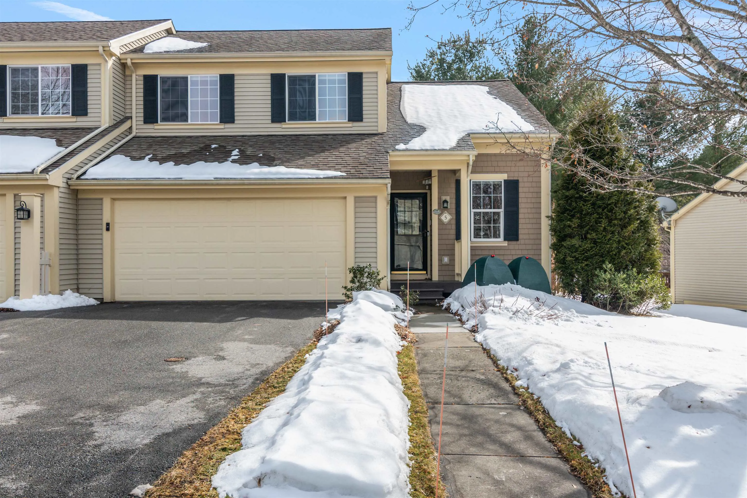 +"PublicRemarks": "Welcome to 5 Thrush Lane, a bright & airy 3-bed, 3-bath townhome in the desirable Steeplebush West Condos with an attached two car garage. The cathedral ceilings & large windows fill the open-concept living space w/natural light. The living room features a gas fireplace & built-ins, flowing into the dining area & functional kitchen. The first-floor primary suite offers a walk-in closet & private ensuite bath. Upstairs, find 2 spacious bedrooms, a flex loft space, & full bath. The finished basement w/large egress windows includes 2 bonus rooms & ample storage. Enjoy the ease of condo living w/outdoor space featuring beautifully landscaped perennial gardens. A prime location minutes from The Essex Experience & Essex Elementary School. Don’t miss this opportunity!"