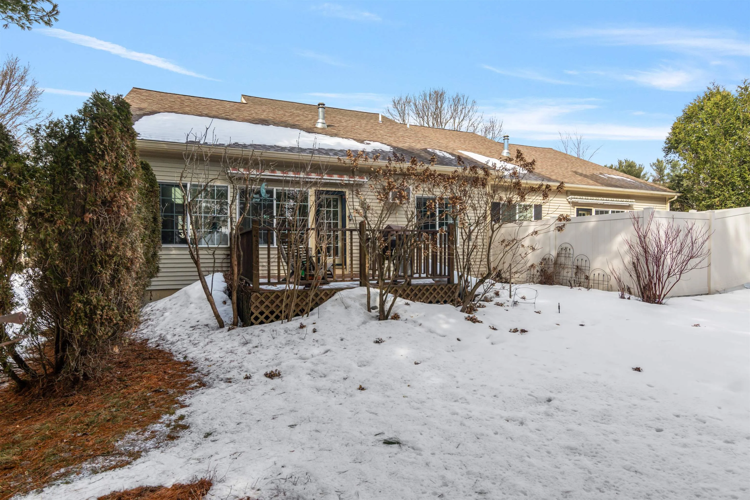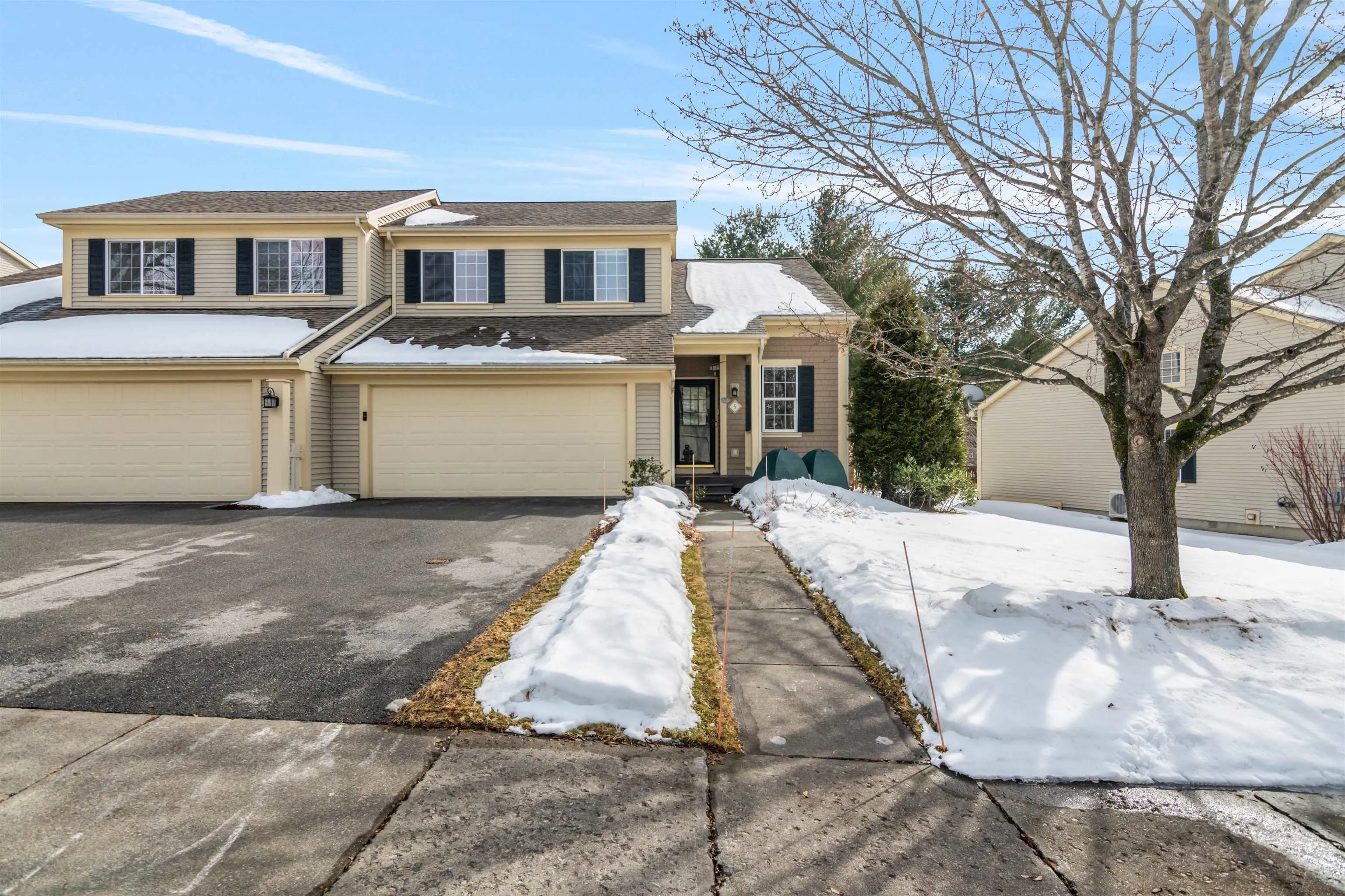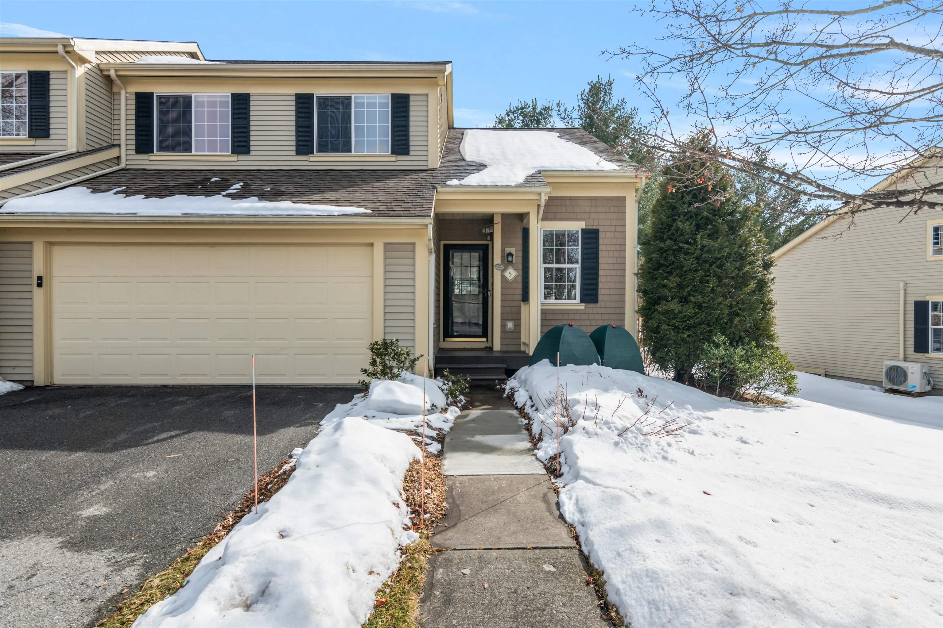 +"PublicRemarks": "Welcome to 5 Thrush Lane, a bright & airy 3-bed, 3-bath townhome in the desirable Steeplebush West Condos with an attached two car garage. The cathedral ceilings & large windows fill the open-concept living space w/natural light. The living room features a gas fireplace & built-ins, flowing into the dining area & functional kitchen. The first-floor primary suite offers a walk-in closet & private ensuite bath. Upstairs, find 2 spacious bedrooms, a flex loft space, & full bath. The finished basement w/large egress windows includes 2 bonus rooms & ample storage. Enjoy the ease of condo living w/outdoor space featuring beautifully landscaped perennial gardens. A prime location minutes from The Essex Experience & Essex Elementary School. Don’t miss this opportunity!"
