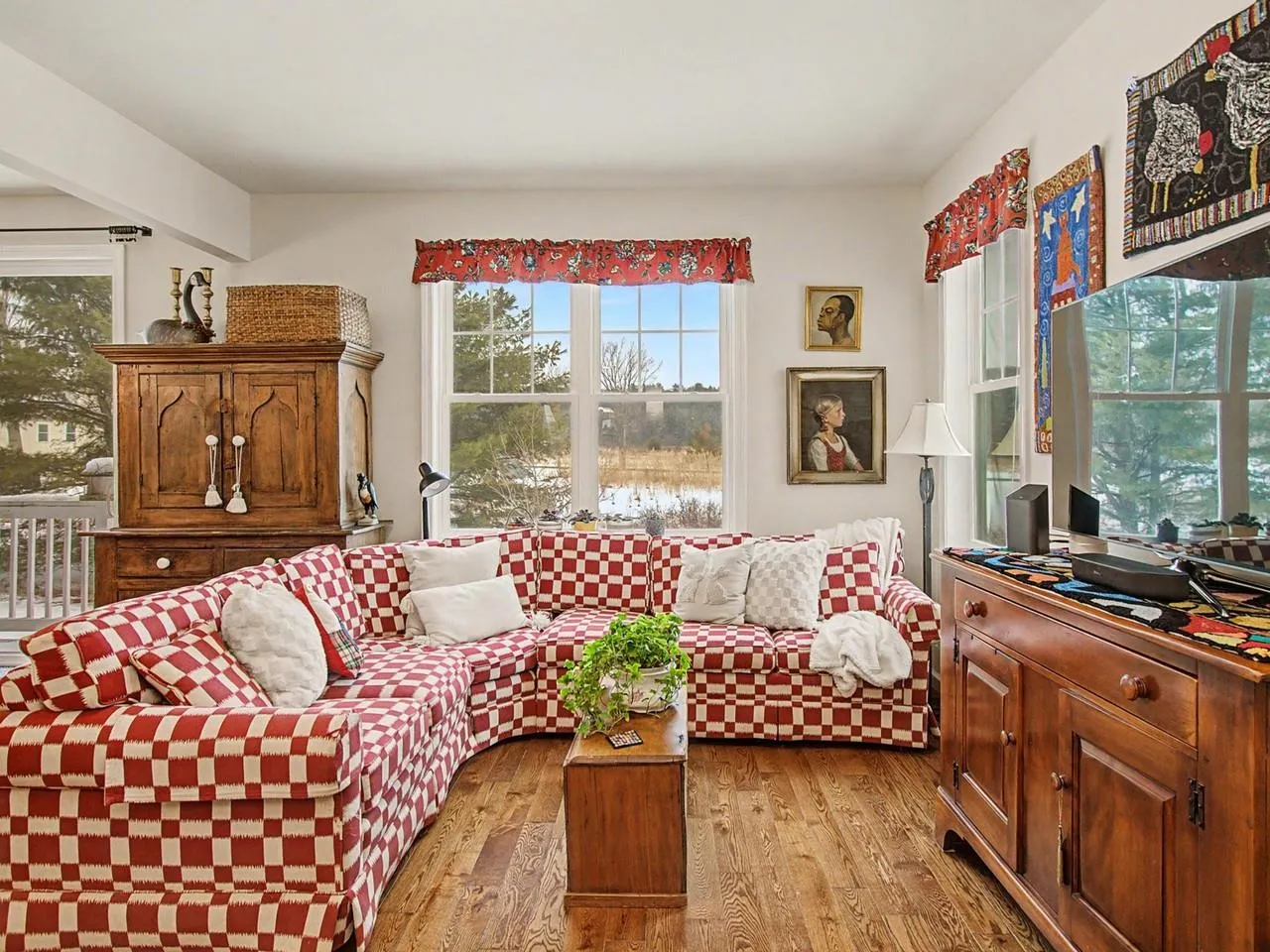 +"PublicRemarks": "This 2017 custom contemporary is perched ~150 feet above Bradford village, offering wonderful privacy and beautiful views of Mt. Moosilauke. The interior features a bright, open floor plan anchored by 8x14-inch steel I-beams, shiplap pine walls, and 18 southeast-facing windows that flood the home with natural light. The kitchen is a standout with maple and cherry butcher-block counters, a pot-filler above the gas range with double ovens, and a granite topped island. The layout currently offers two bedrooms, including a top-floor primary suite with a massive walk-in closet that can act as quite a versatile space (laundry, office, closet, primary bath). The finished walkout basement serves as a great guest suite, featuring a Vermont Castings wood stove and a custom bath with a stone-floor massage section. While currently configured as a two-bedroom, the engineered septic system is designed for three bedrooms, with the permit and design available for future expansion. Set on +-6.3 wooded acres with private trails, beautiful stone walls and space for a garden this energy-efficient home is a must to see. Recent upgrades include a tankless hot water heater, Rinnai propane heater for supplemental heat, carriage shed, and Starlink internet. Starlink equipment included for an easy transition. VA assumable loan at 3.75% for qualified buyers."