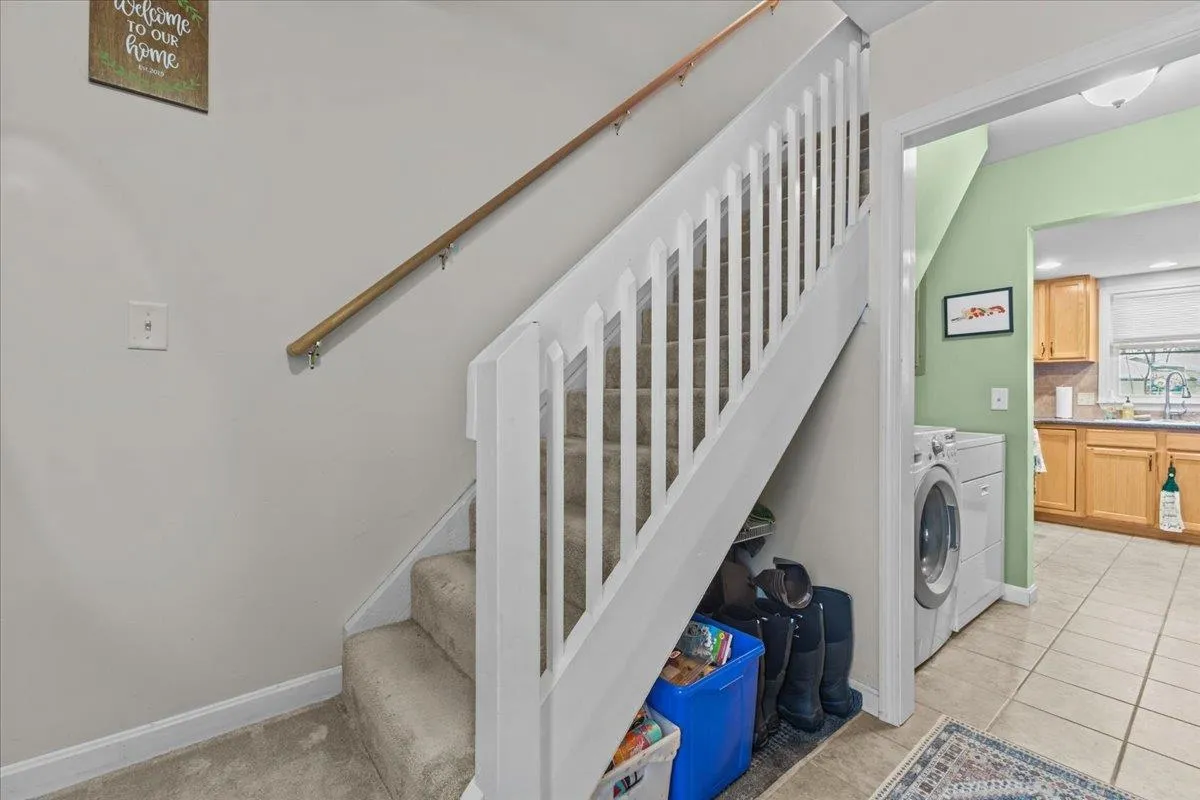 +"PublicRemarks": "Tucked away in a peaceful, wooded setting, this delightful 2-bedroom, 1-bath townhouse offers the perfect combination of privacy and convenience. Located in Essex, it provides easy access to shopping, dining, and local amenities while allowing you to enjoy the beauty of nature. The open-concept living area, with new luxury vinyl flooring, flows effortlessly into the kitchen creating a warm and inviting space ideal for both entertaining and everyday living. New wall unit was recently installed making life easier for heating the main level. The kitchen is equipped with modern stainless steel appliances, tile floors, ample cabinetry, and a breakfast bar for dining or prepping. Washer and Dryer stay with the unit conveniently located by the kitchen. Upstairs, both bedrooms have new carpet and closets for generous storage. Step outside to enjoy a large deck, gardening space, a storage shed, two allotted parking spots, and plenty of visitor parking. Minutes to the Essex Experience, shopping, Burlington and UVM you are close to it all! Come check it out!"
